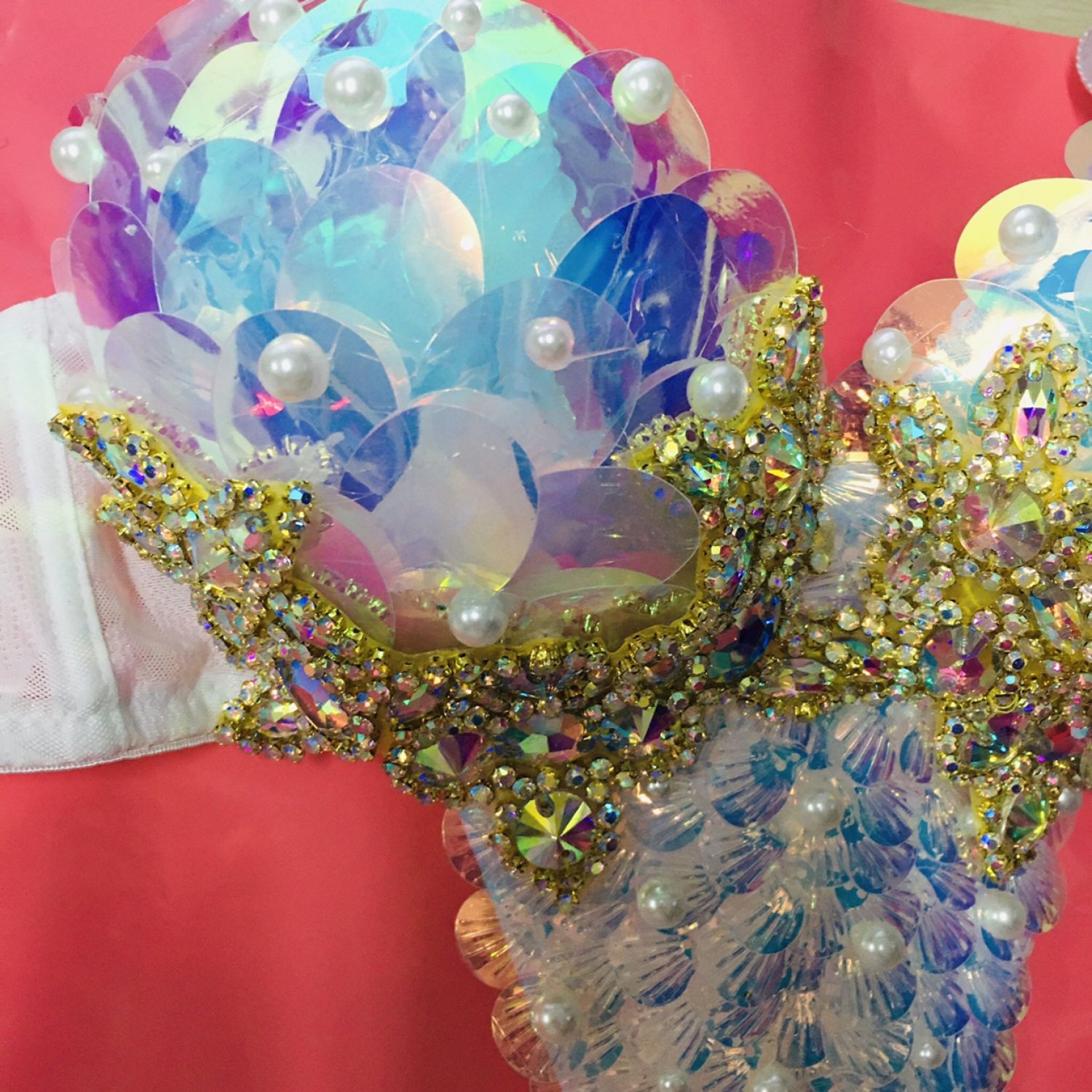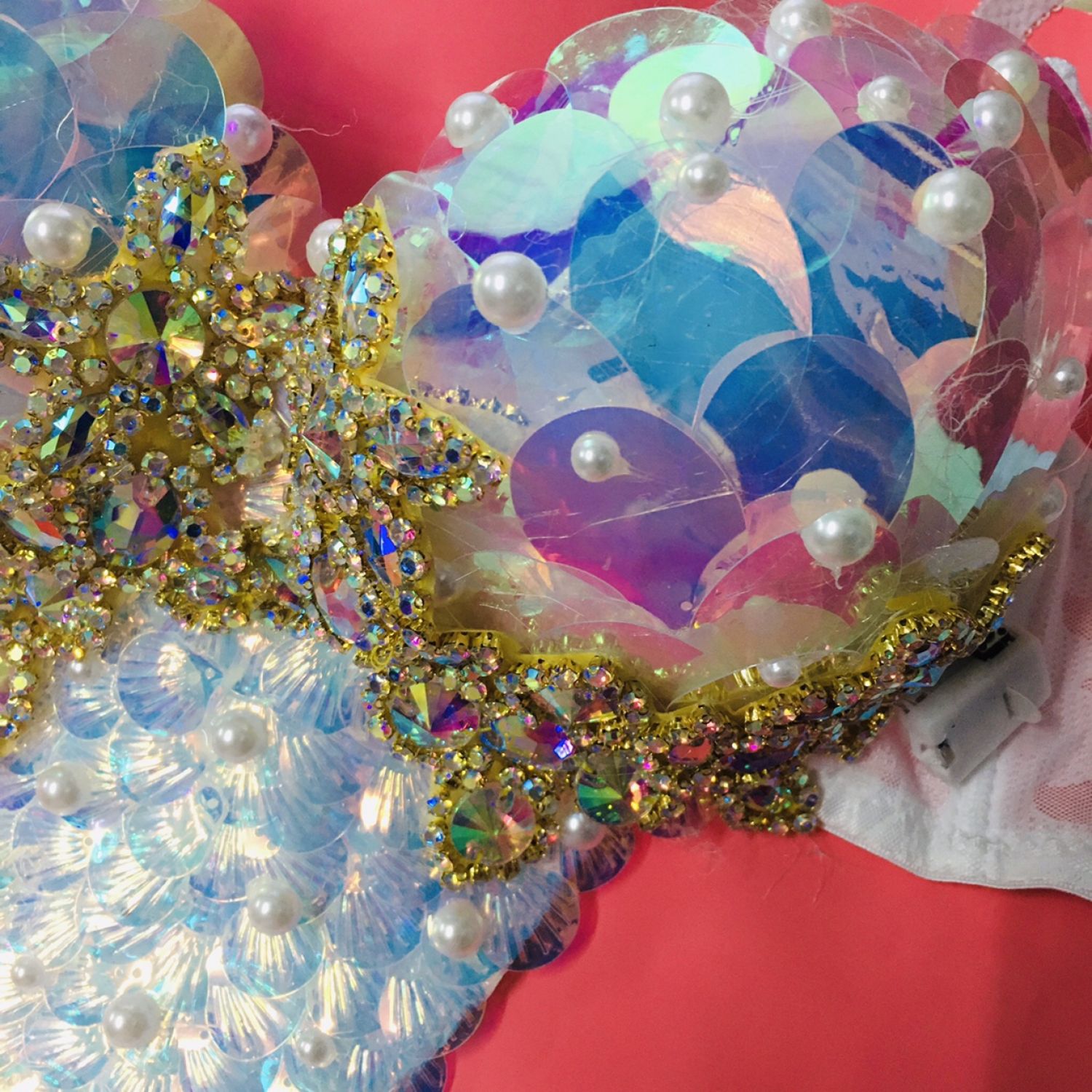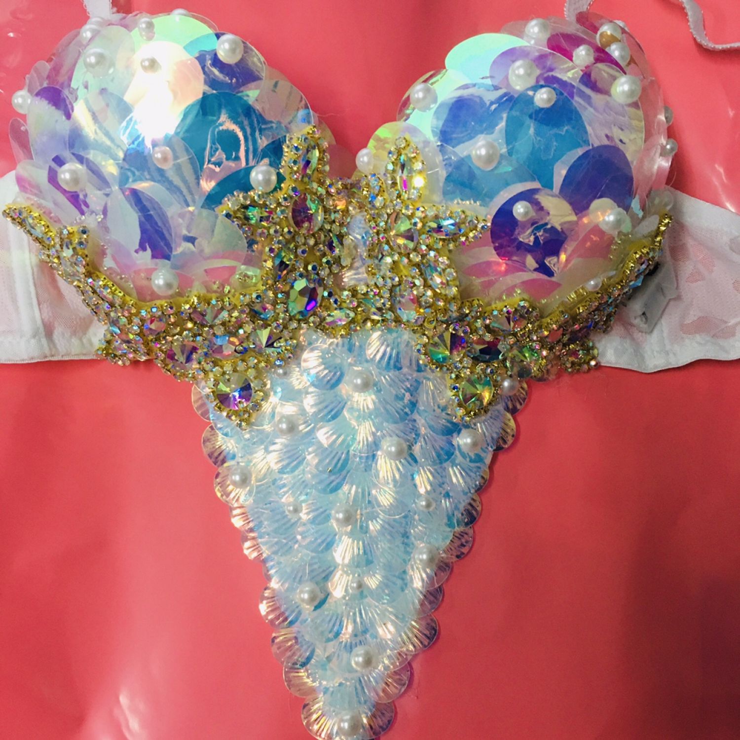 Mermaid Bra Diving Suit Fish Scale Sequins Silver S