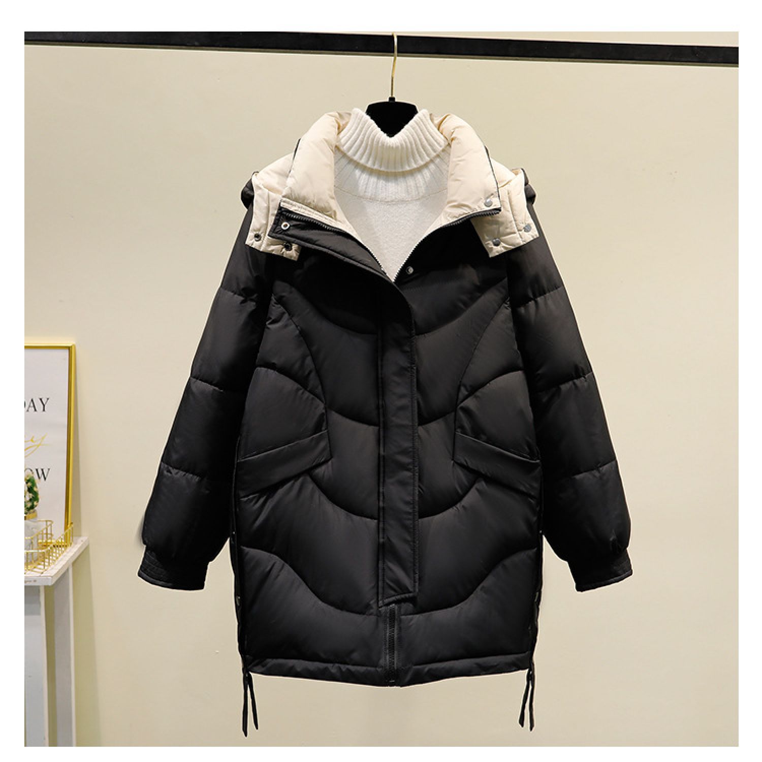 Popular elements: Contrasting color, hem side snap button rope design