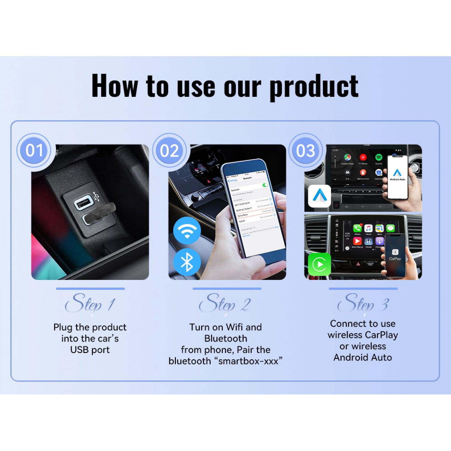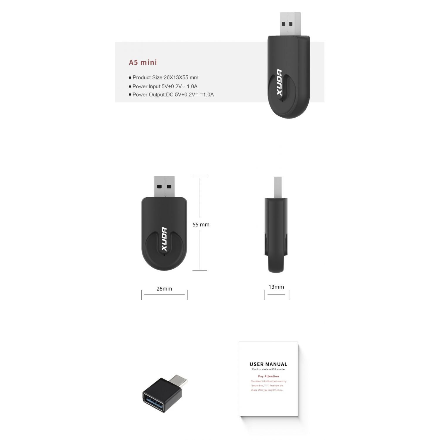 Mini 2-in-1CarplayUSB Interface Wireless Data Black