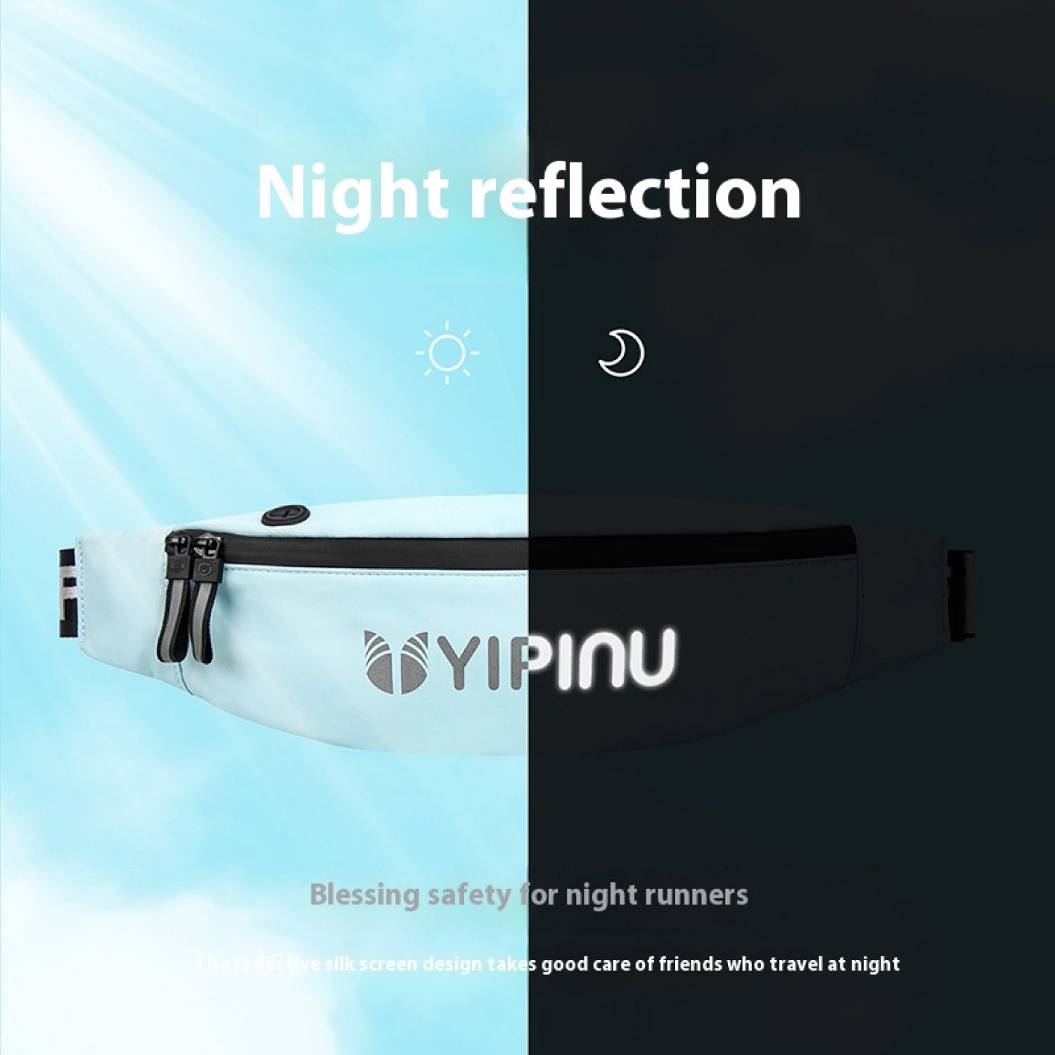 Outdoor Sports Waist Bag Waterproof Personal Reflective Crossbody Dark Blue