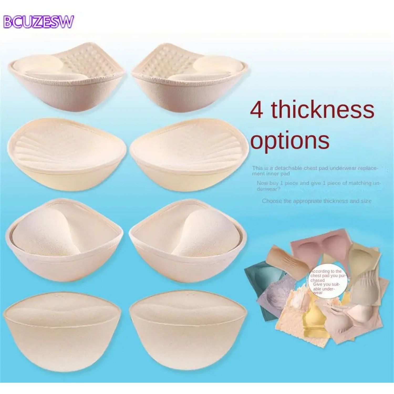 Style3:3cm inner cushion (1 pair) 1 piece of matching underwear,