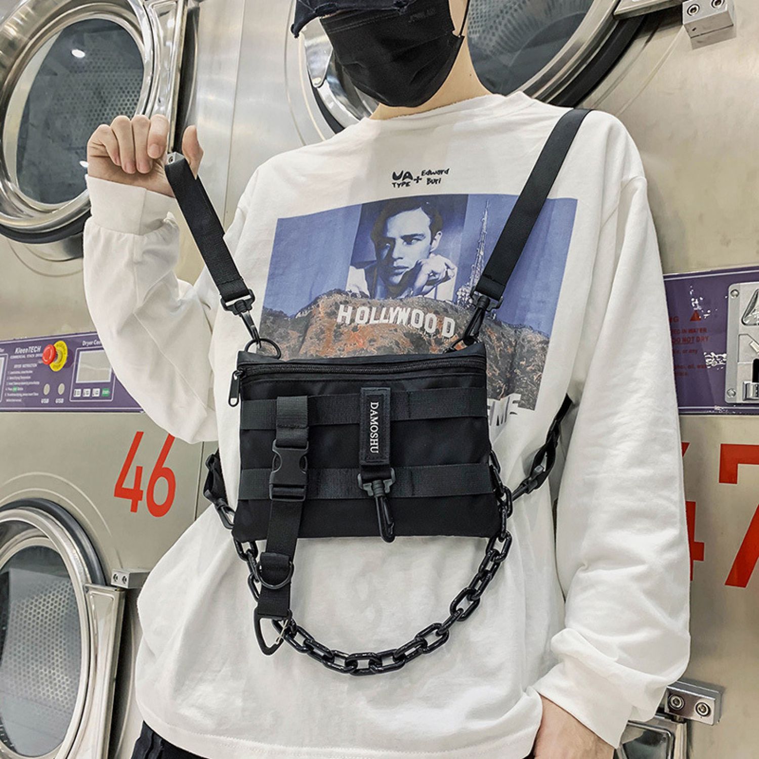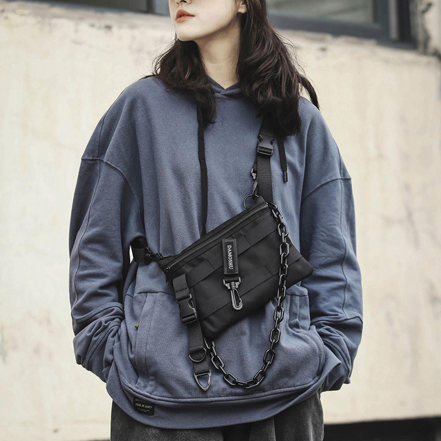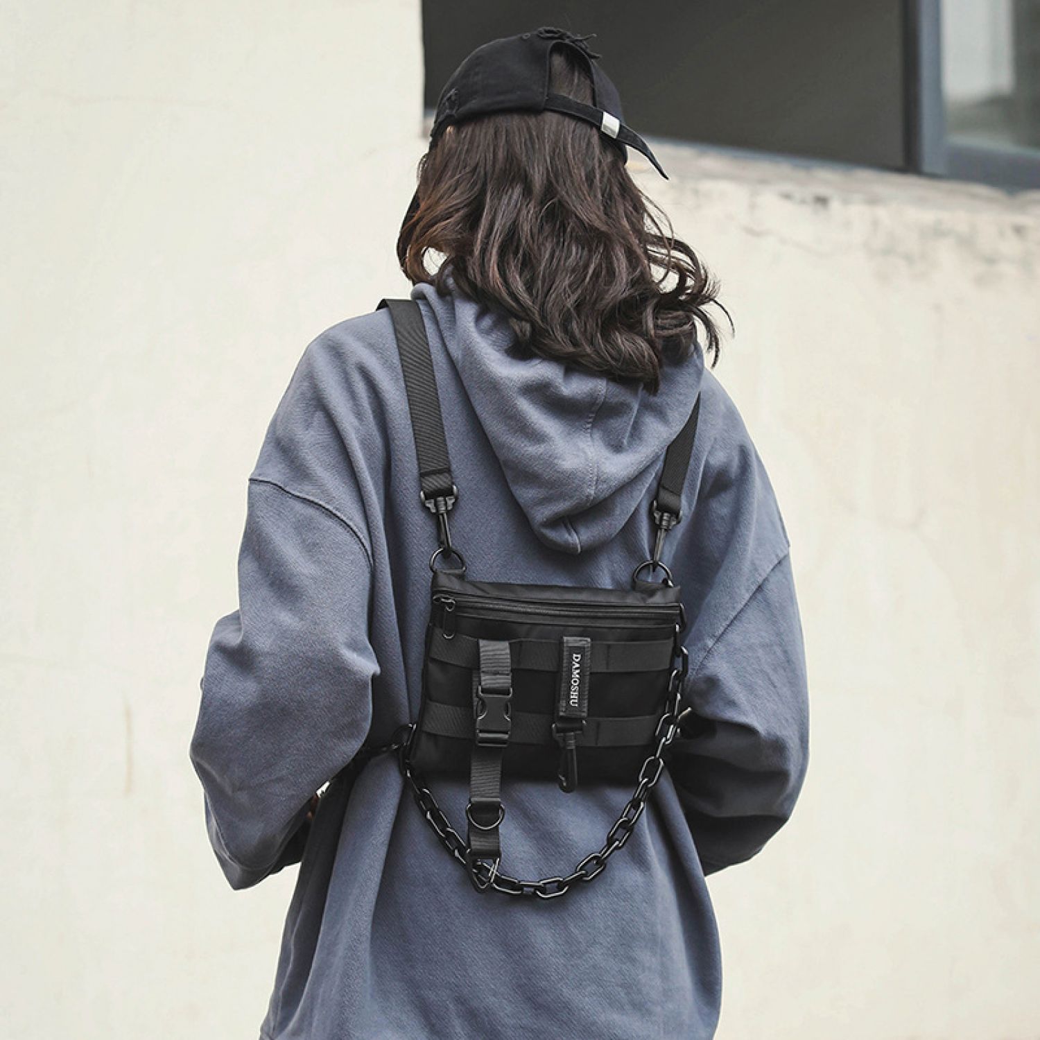 Personalized Hip-hop Shoulder Bag Multifunctional Dual-use Backpack Black