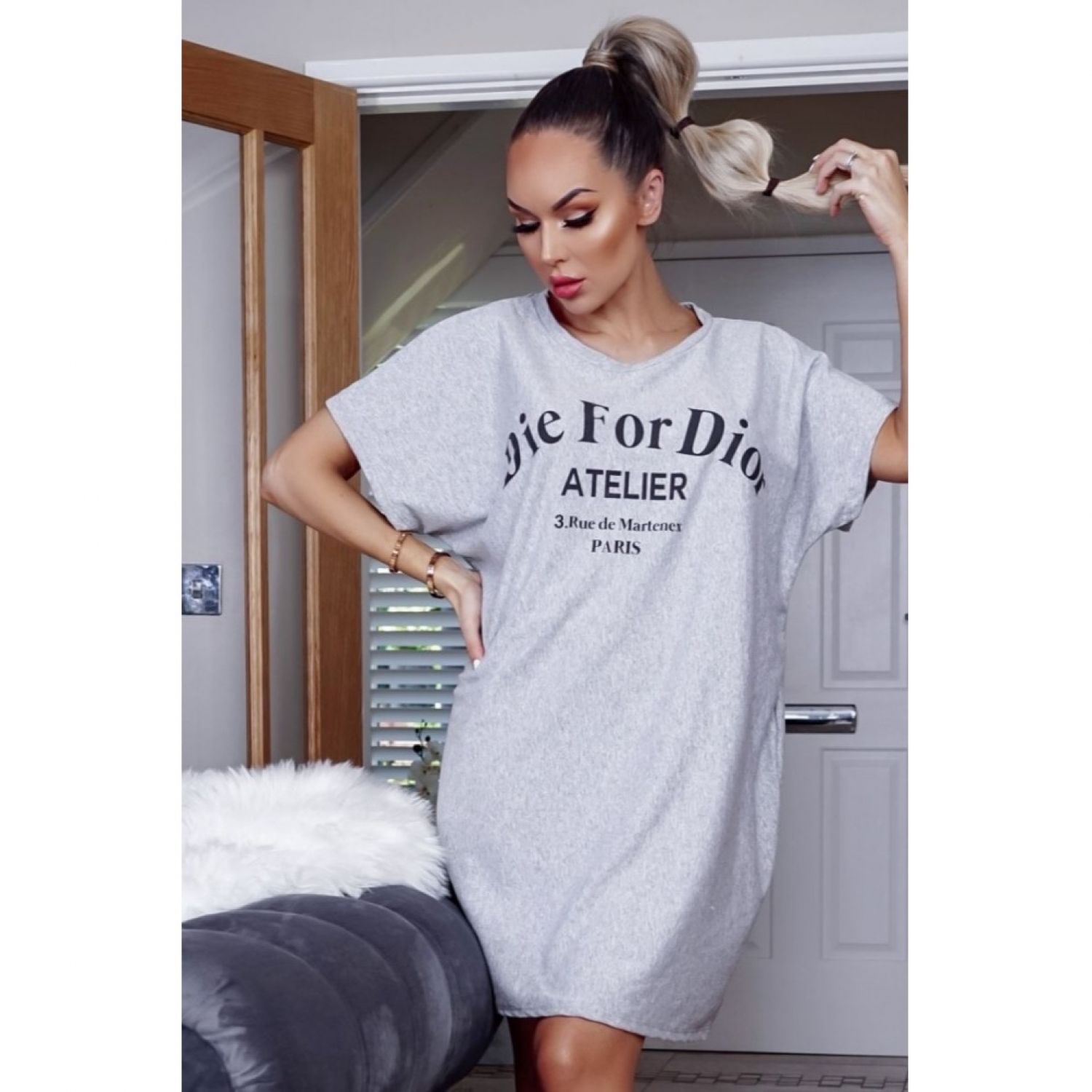 Grey Die For D'Or T Shirt Dress - One Size
