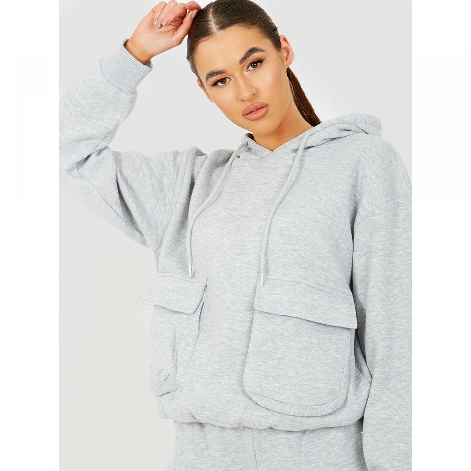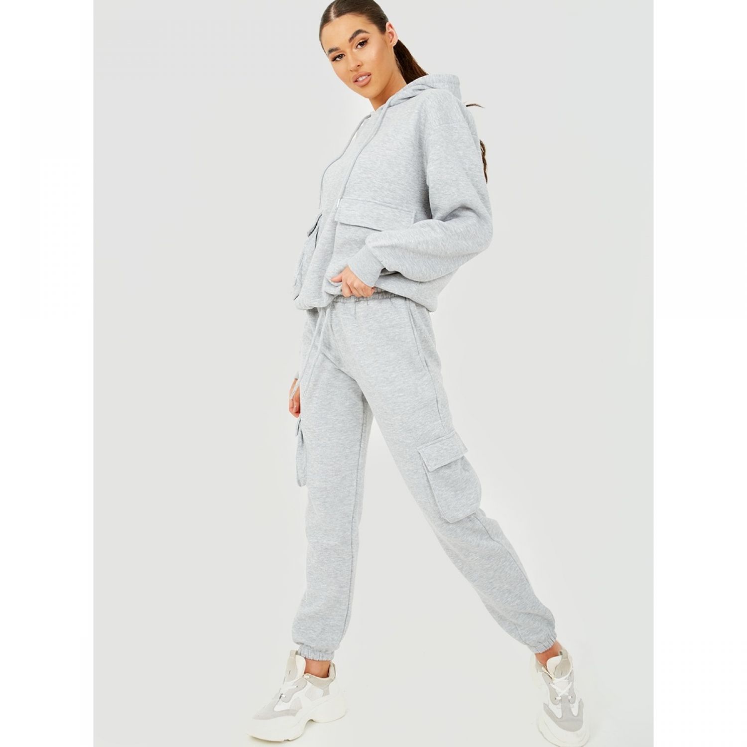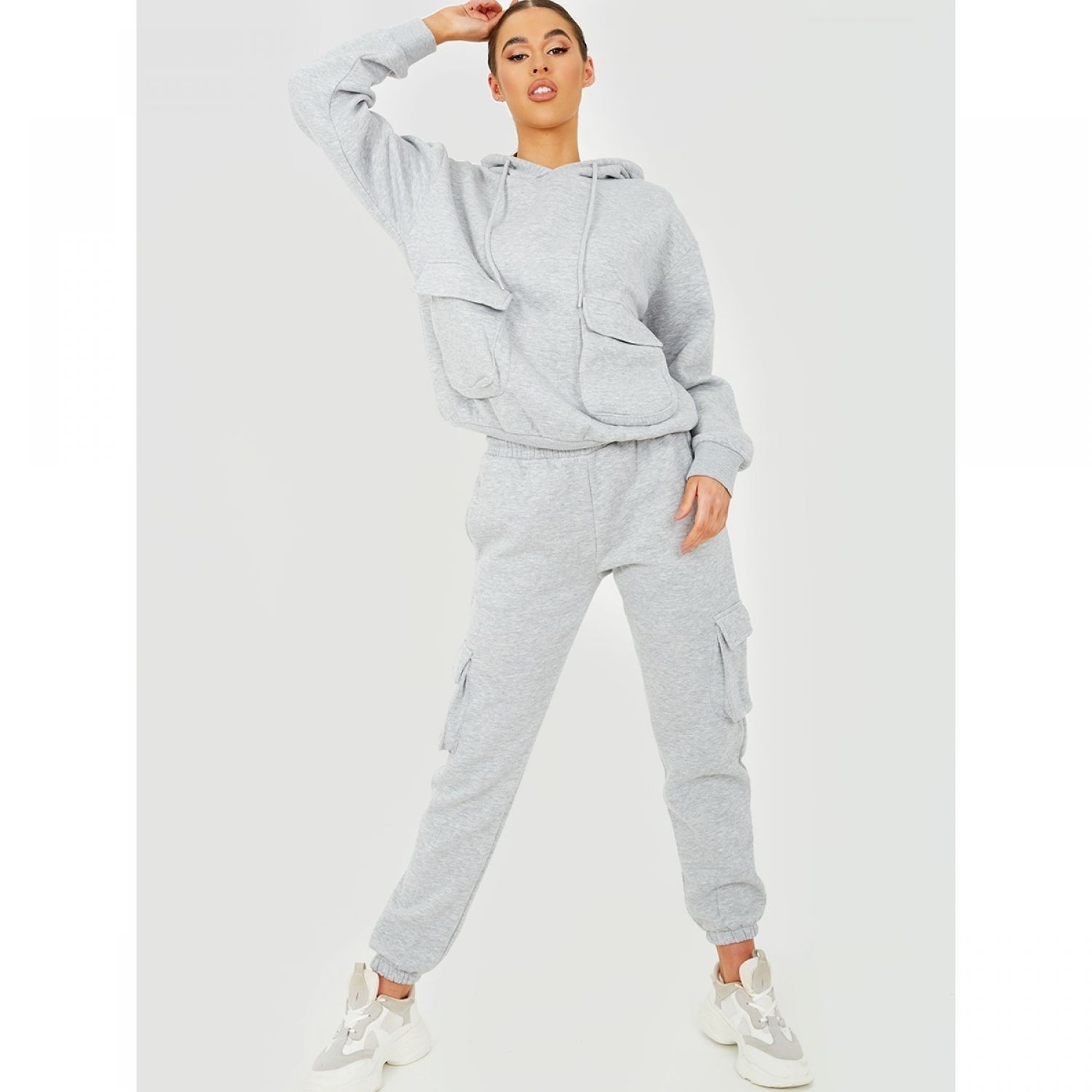 Utility Pocket Hooded Top & Trousers Fleece Co-Ord Grey