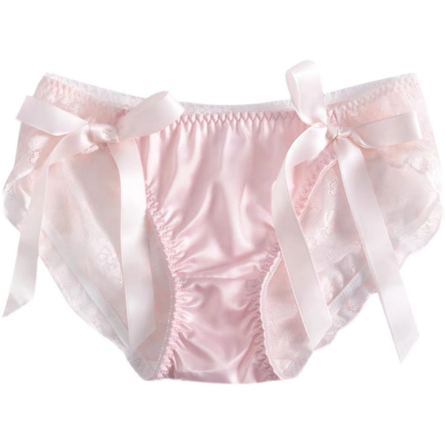 Pure Color Cotton Panties With Lace Back And Sweet Bow Pink M