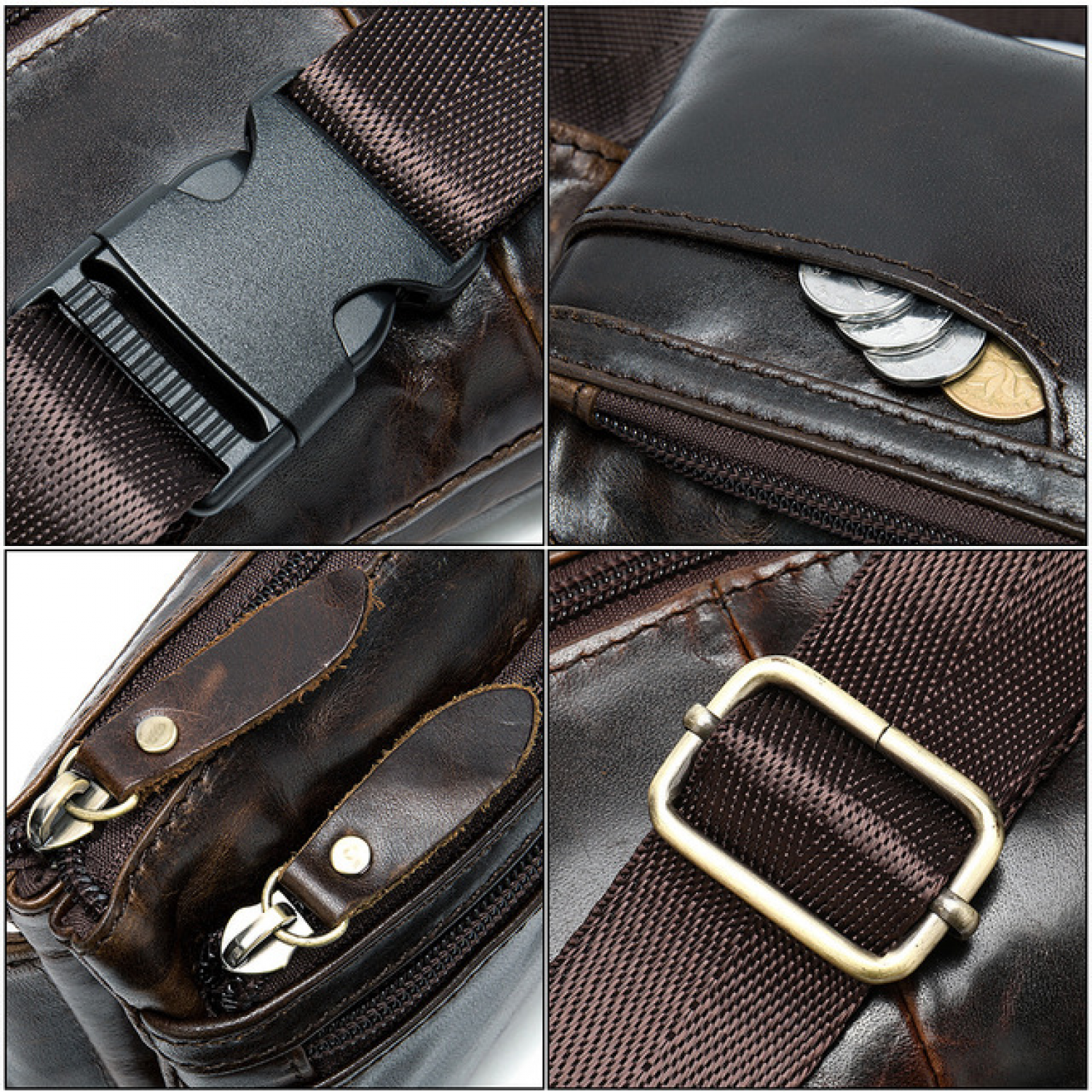 Retro Leather Men's Waist Bag Messenger Bag Black