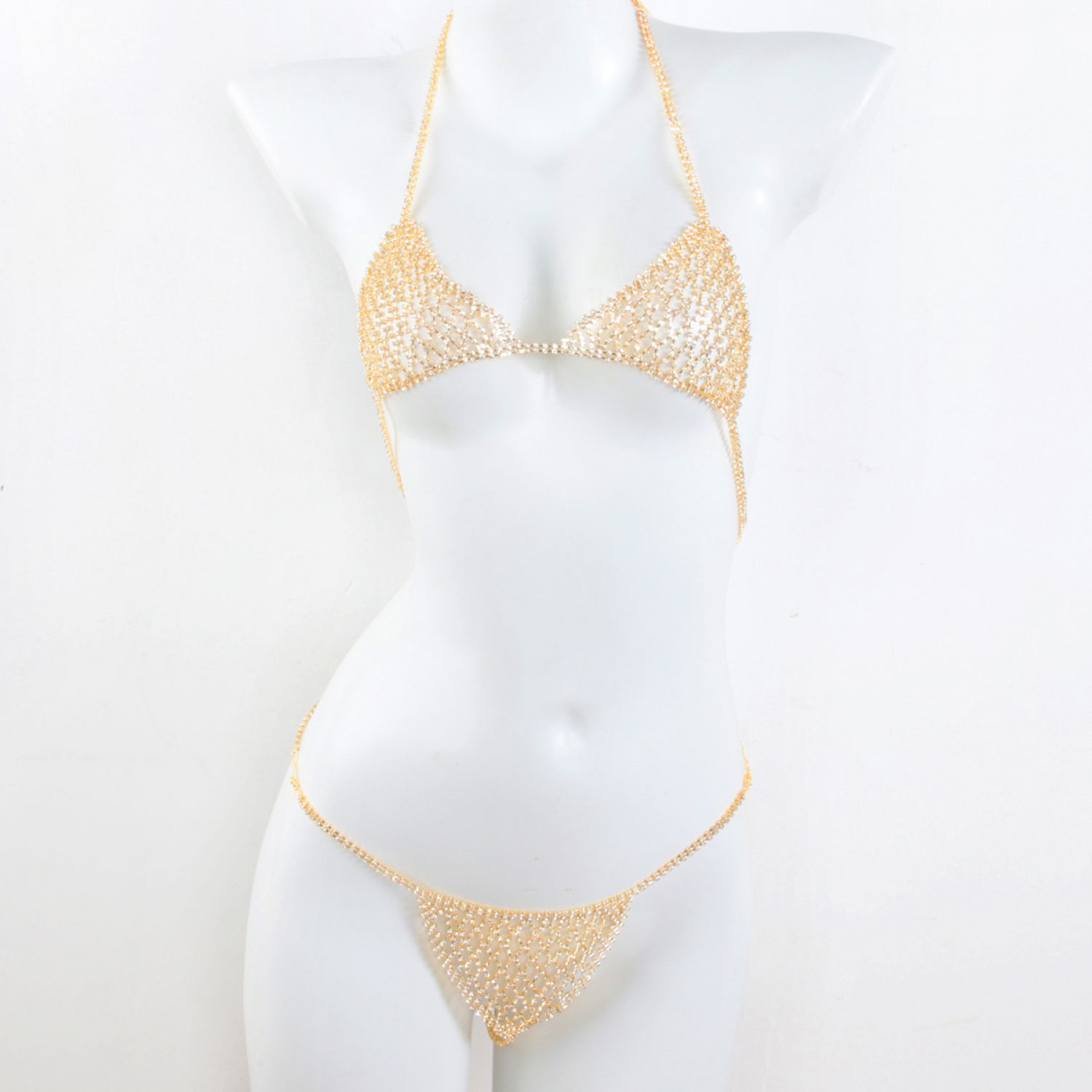 Rhinestone Underwear Body Chains Suit Underwear Gold