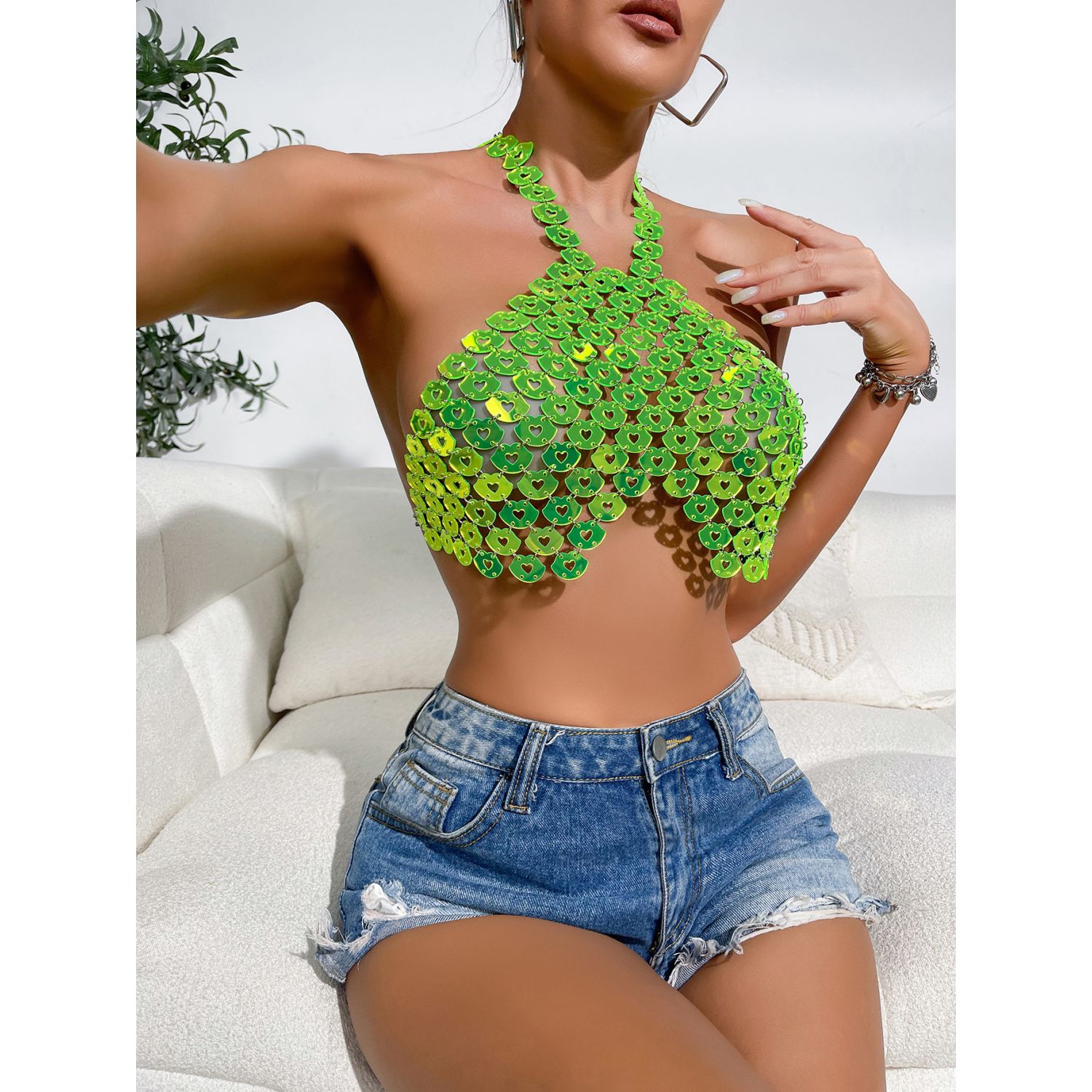 Sexy Backless Halter Love Vest Fluorescent Green Free Size
