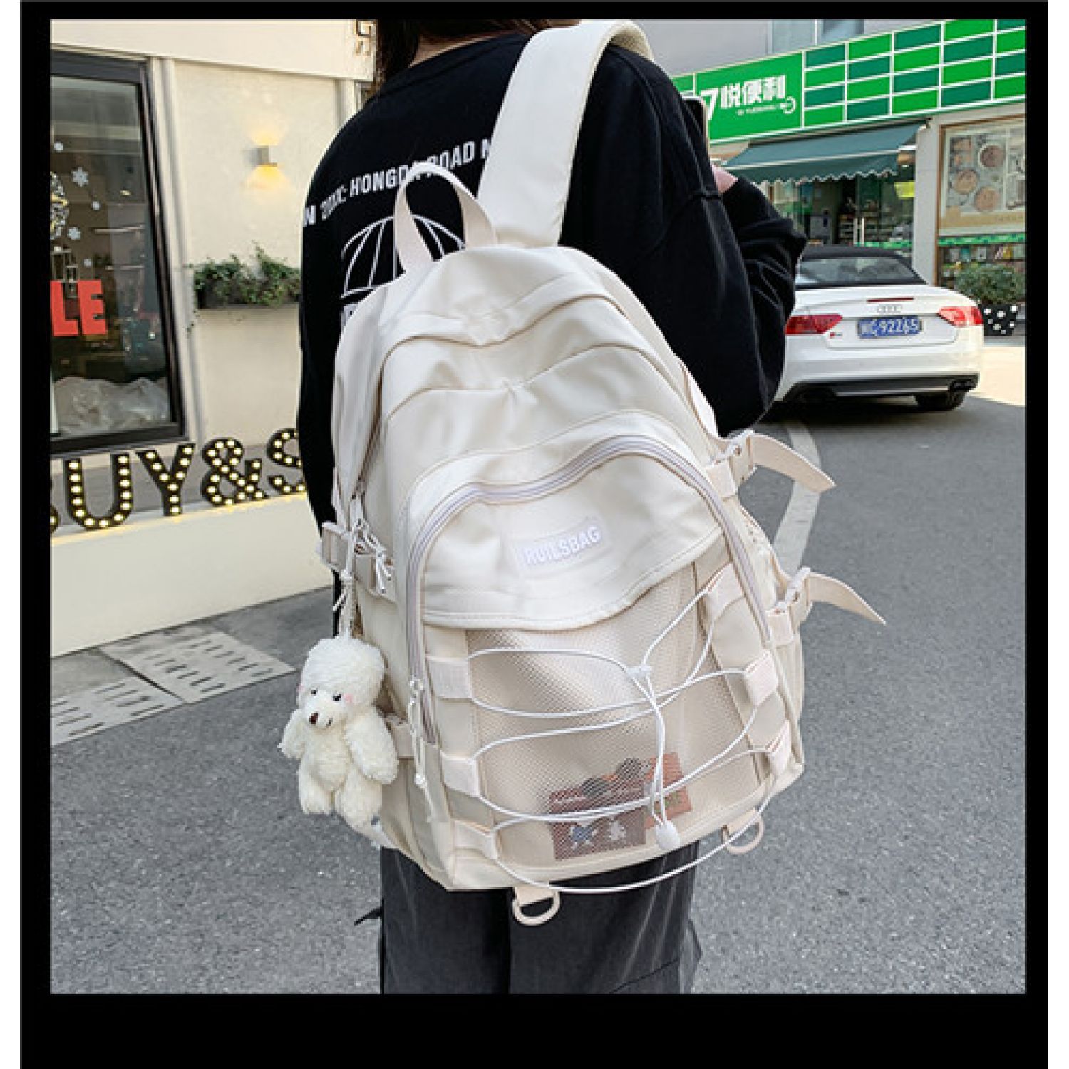 Simple Junior And Middle School Students Large Capacity Backpack White Free Size
