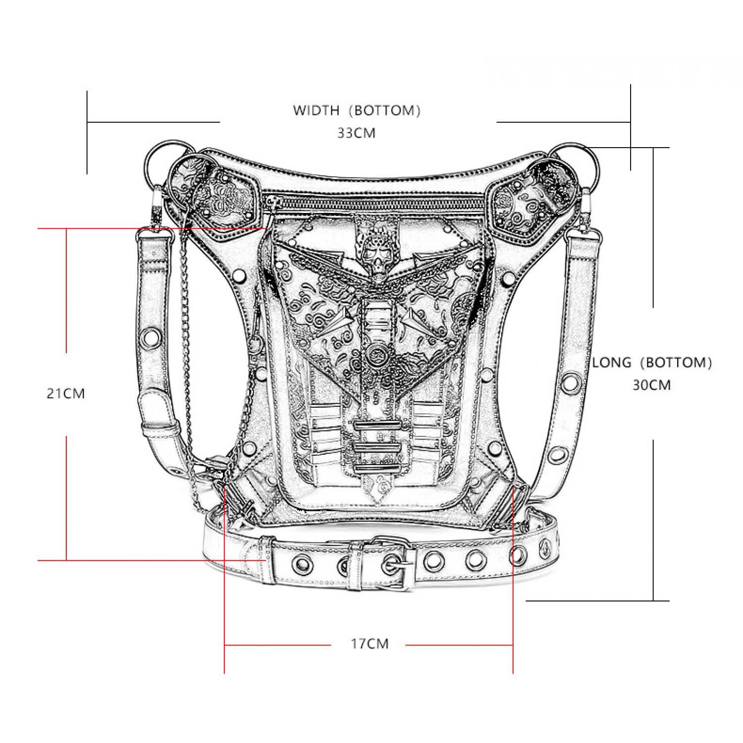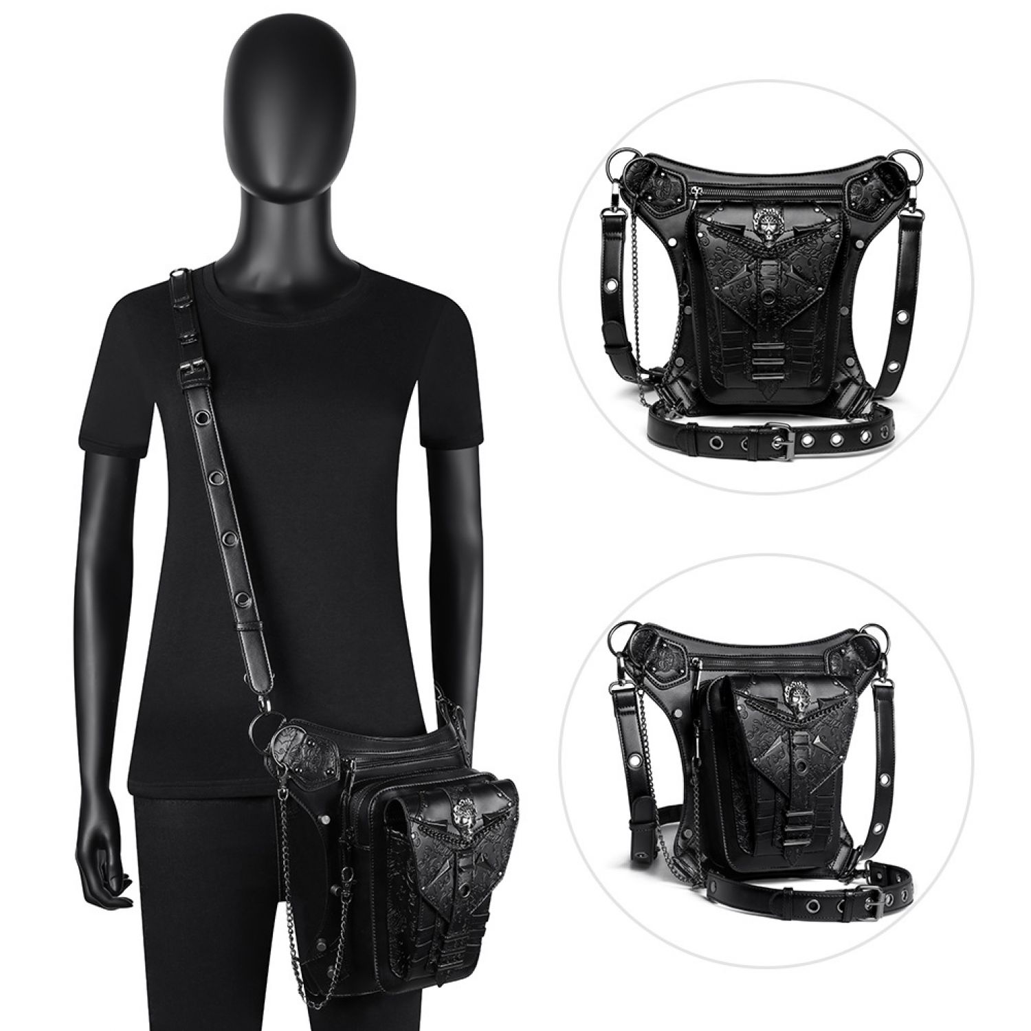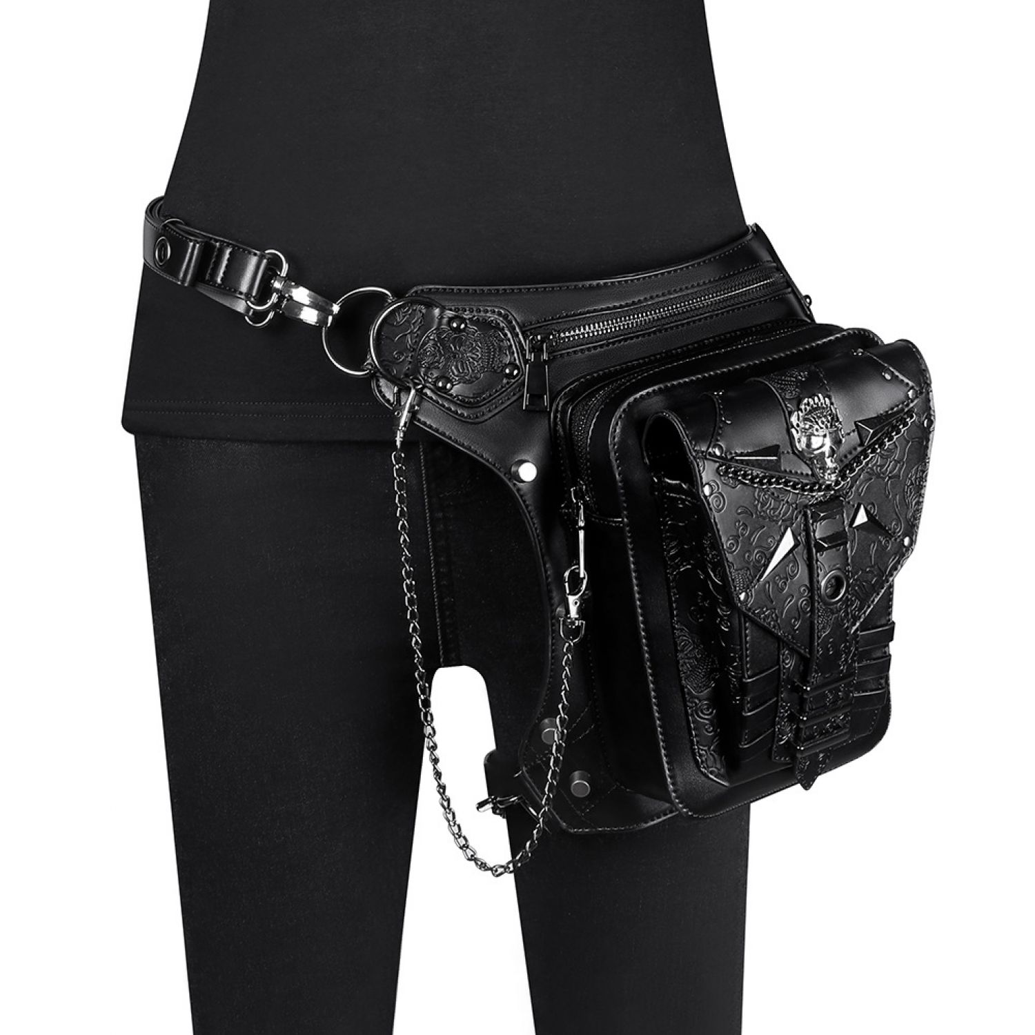 Skull Chain Bag Outdoor Motorcycle Belt Bag Black