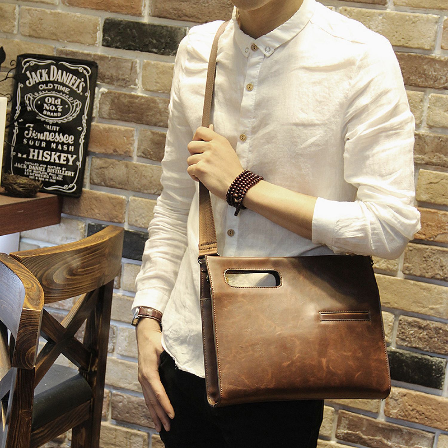 Soft side horizontal square shoulder bag Brown