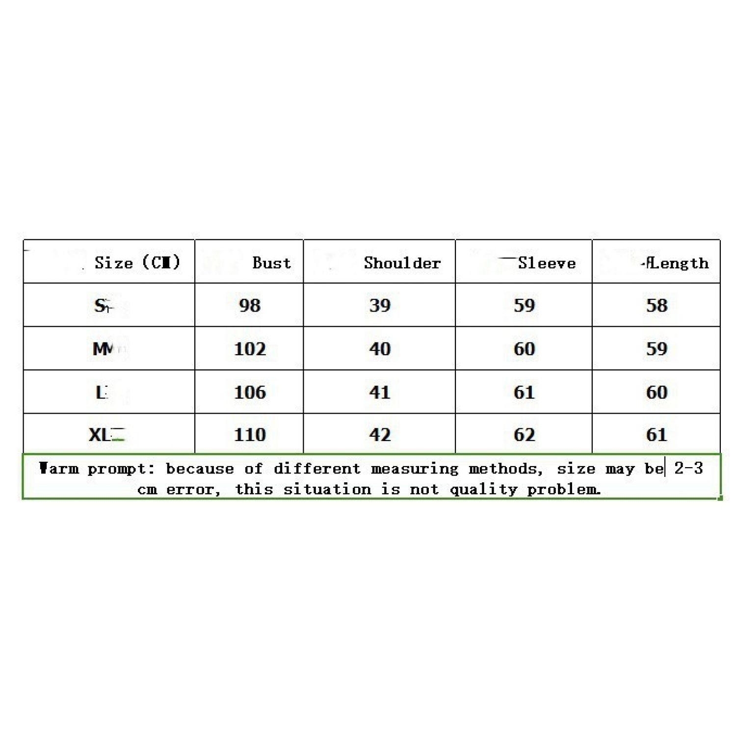 1. Asian sizes are 1 to 2 sizes smaller than European and American people. Choose the larger size if your size between two sizes. Please allow 2-3cm differences due to manual measurement. 2. Please check the size chart carefully before you buy the item, if you don't know how to choose size, please contact our customer service. 3.As you know, the different computers display colors differently, the color of the actual item may vary slightly from the following images.