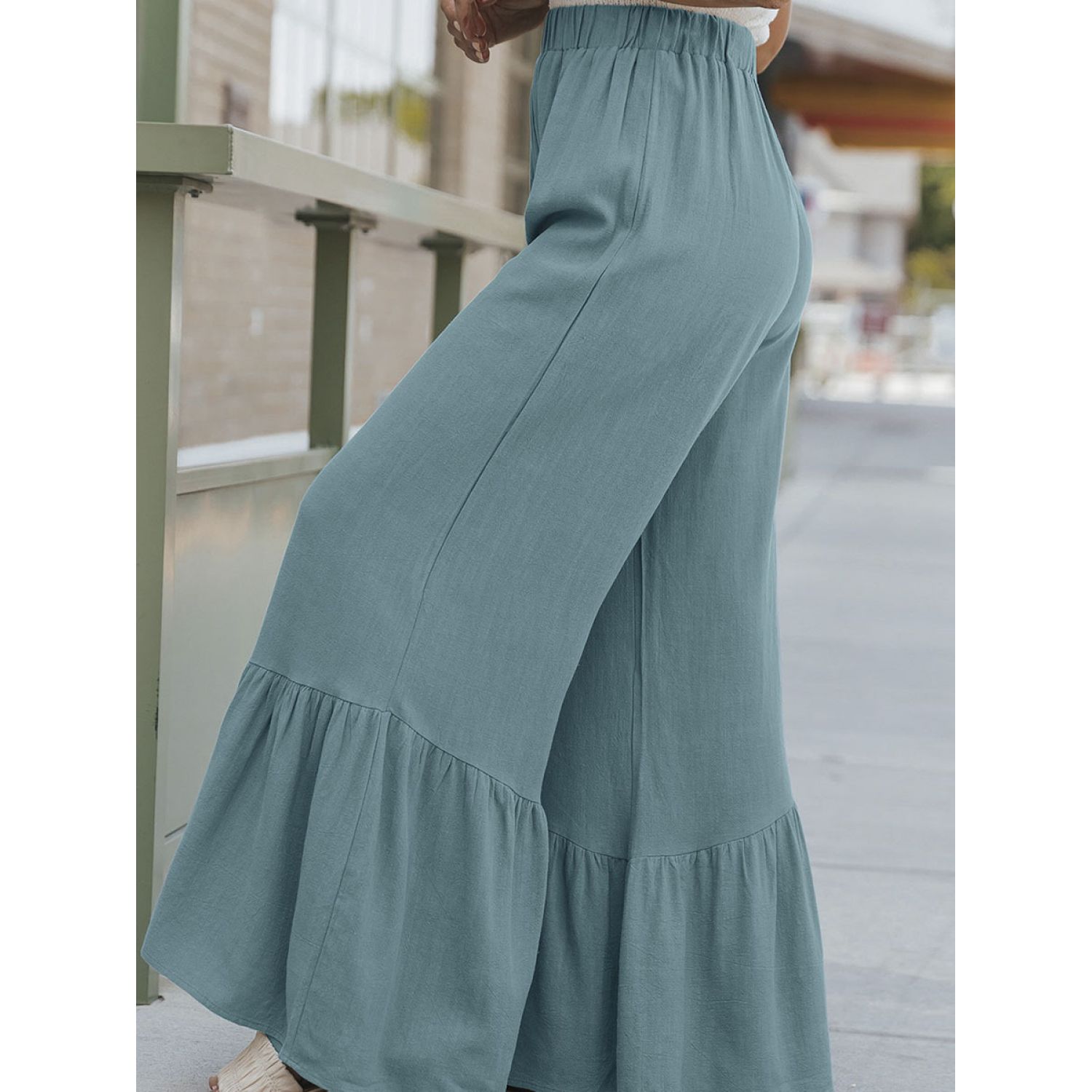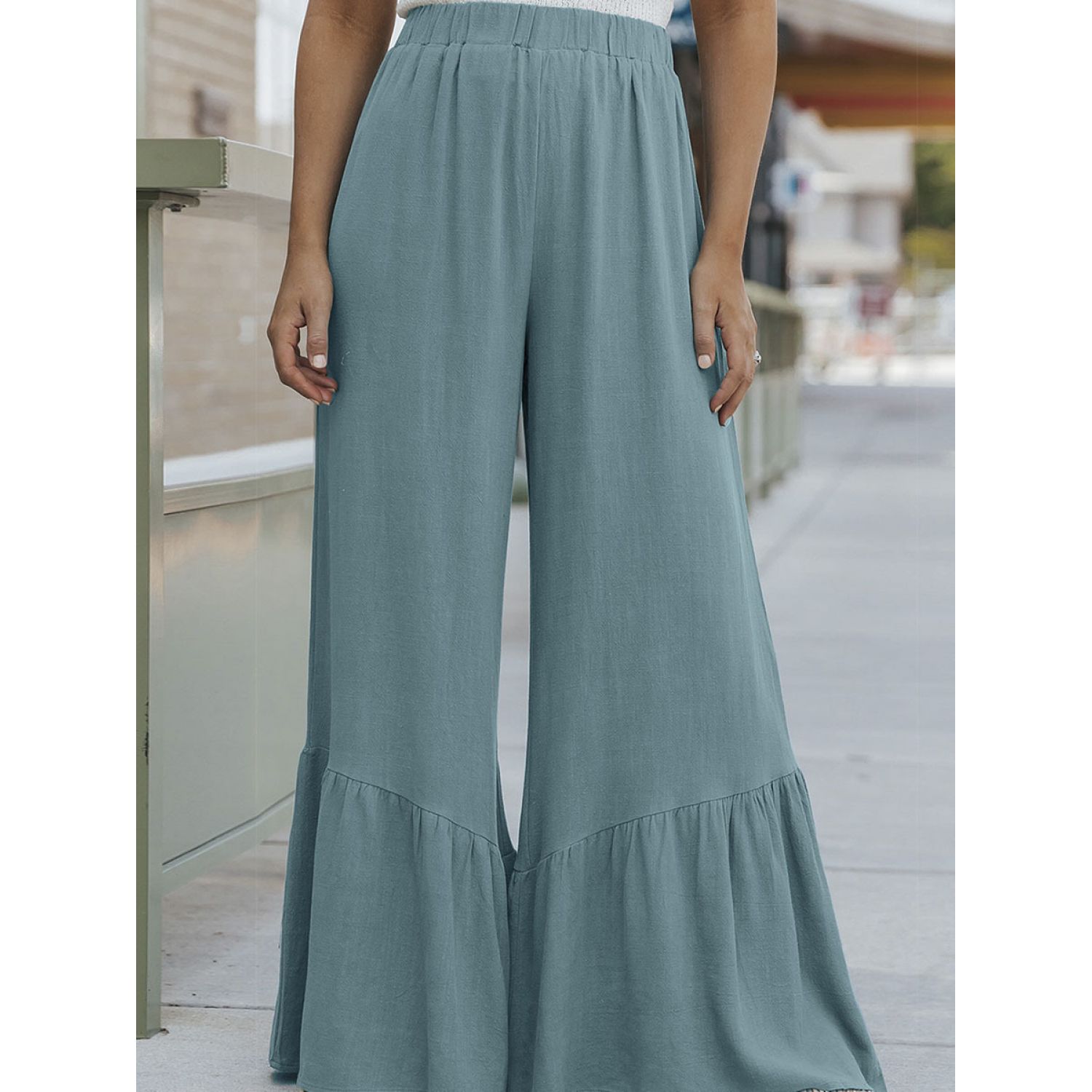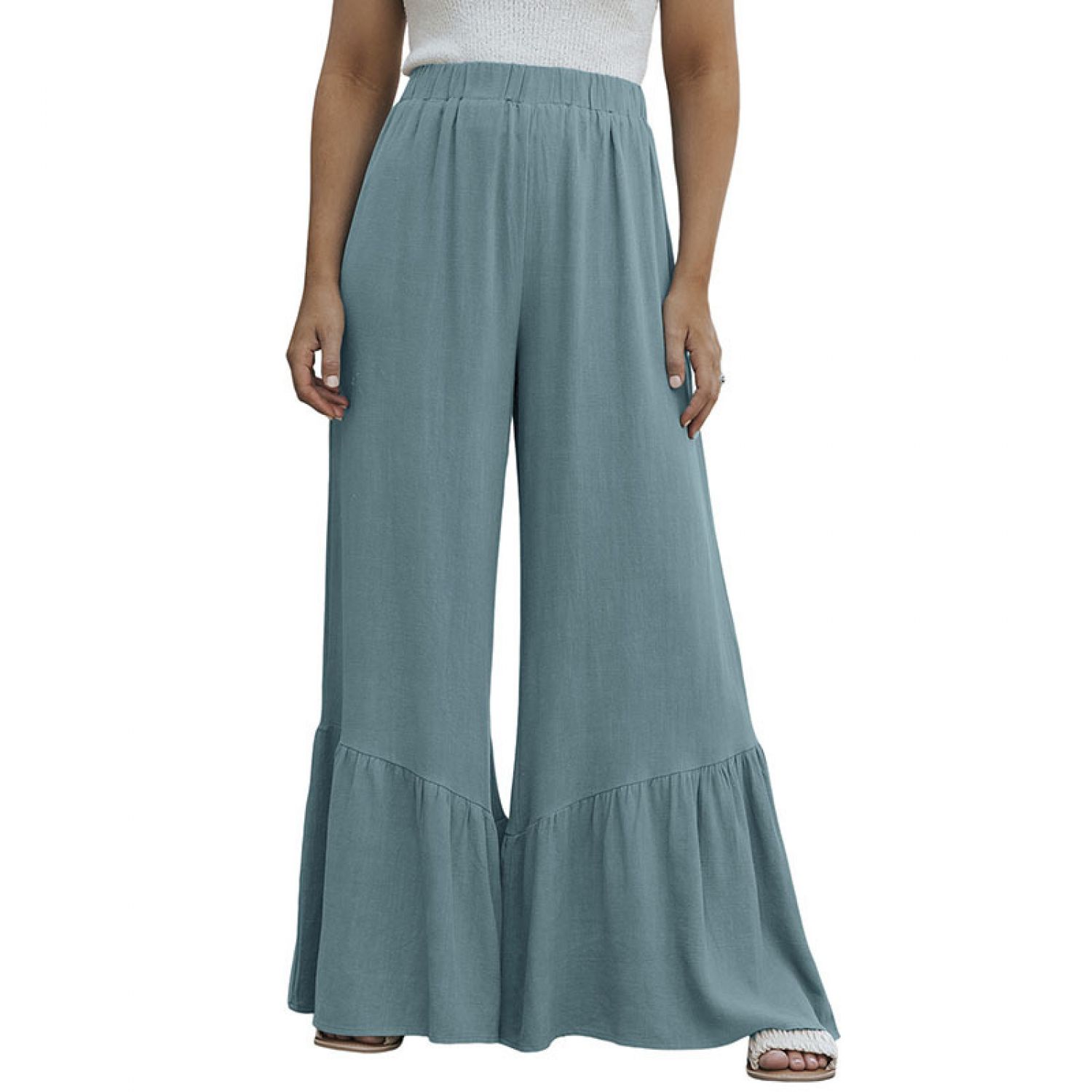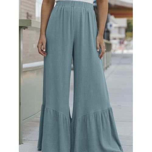 Solid Color Loose Mop Wide Leg Pants Women's High Waist Ruffles Blue S
