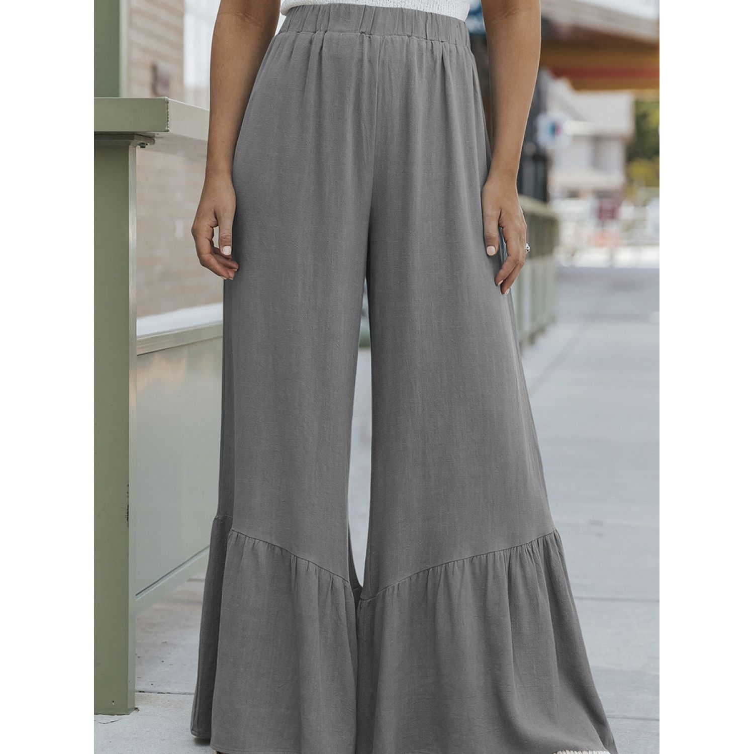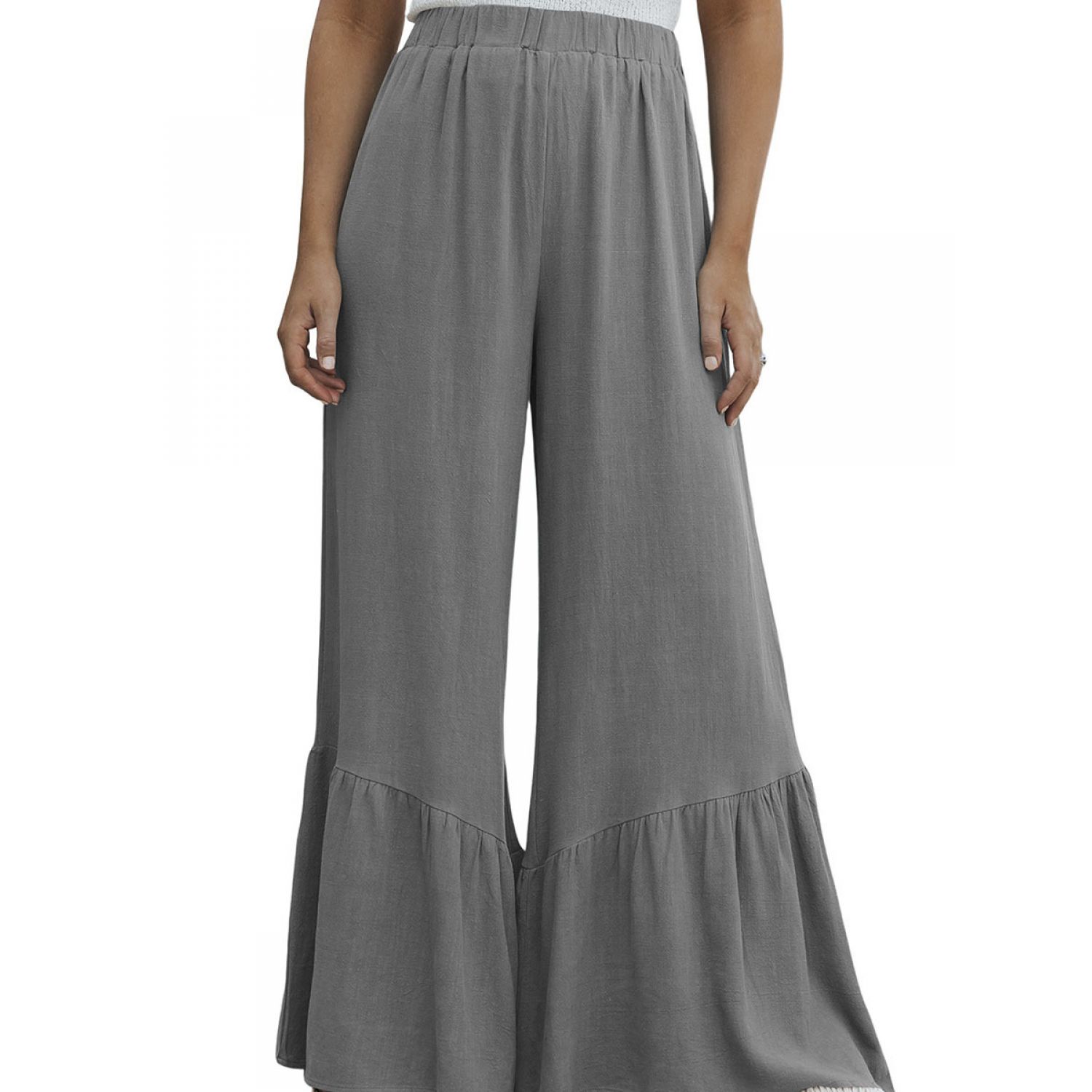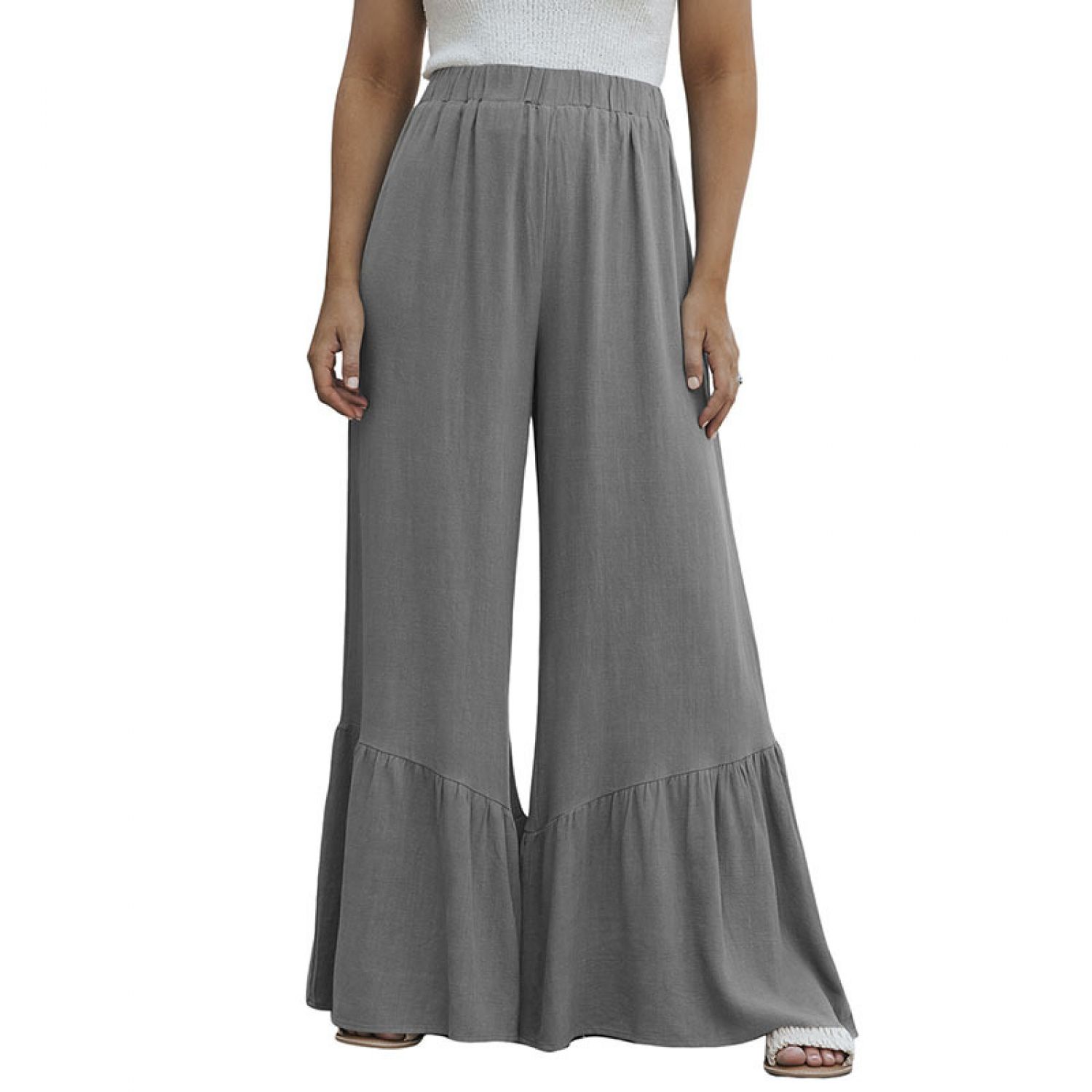 Solid Color Loose Mop Wide Leg Pants Women's High Waist Ruffles Blue S