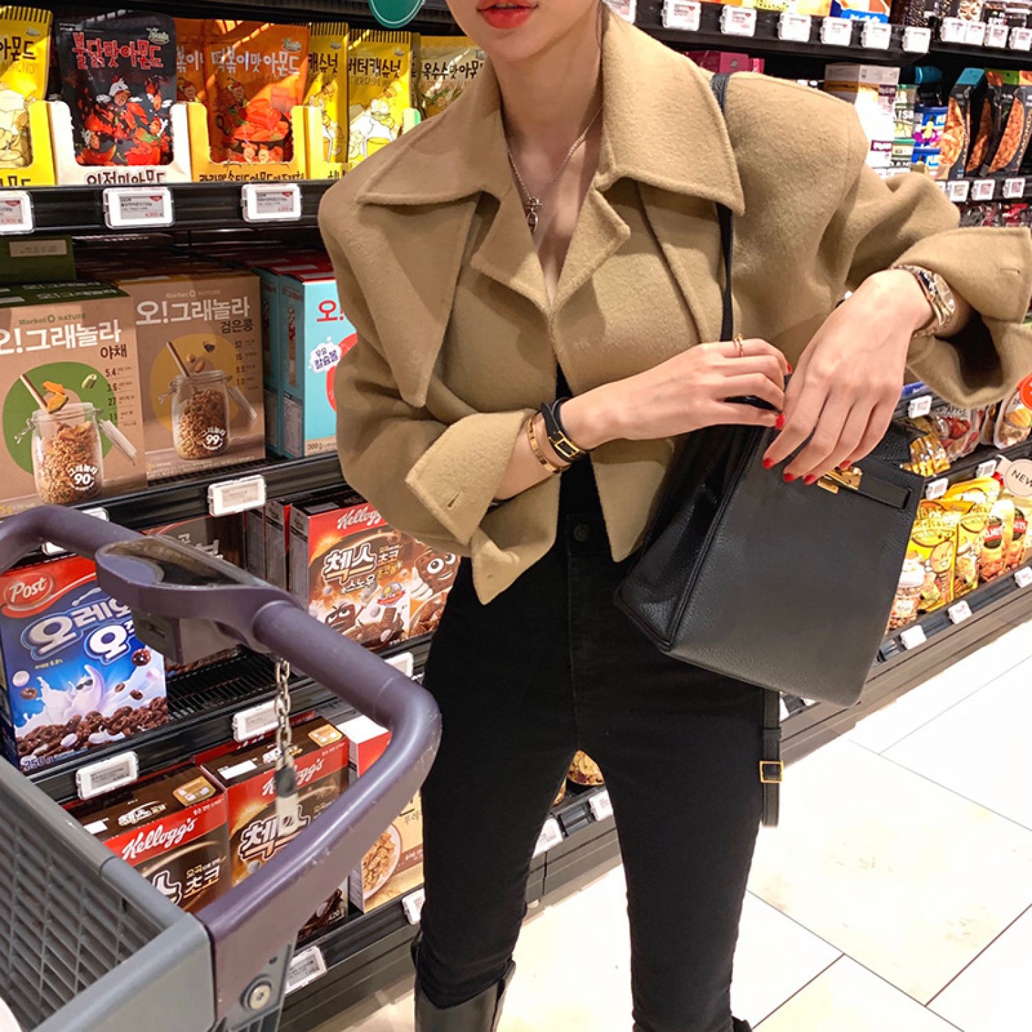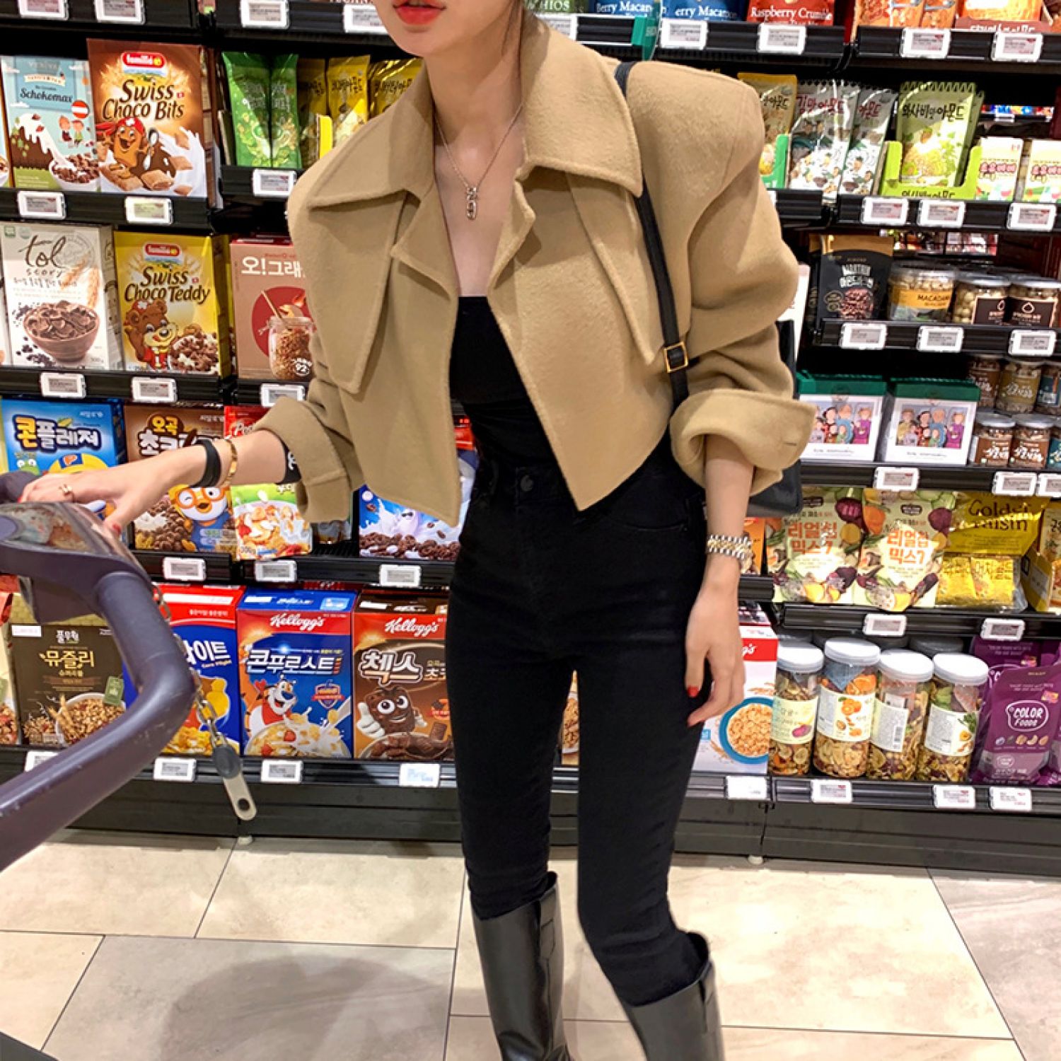 South Korea East Gate fall winter 2020 temperament Lapel woolen coat womens short woolen coat Khaki OneSize