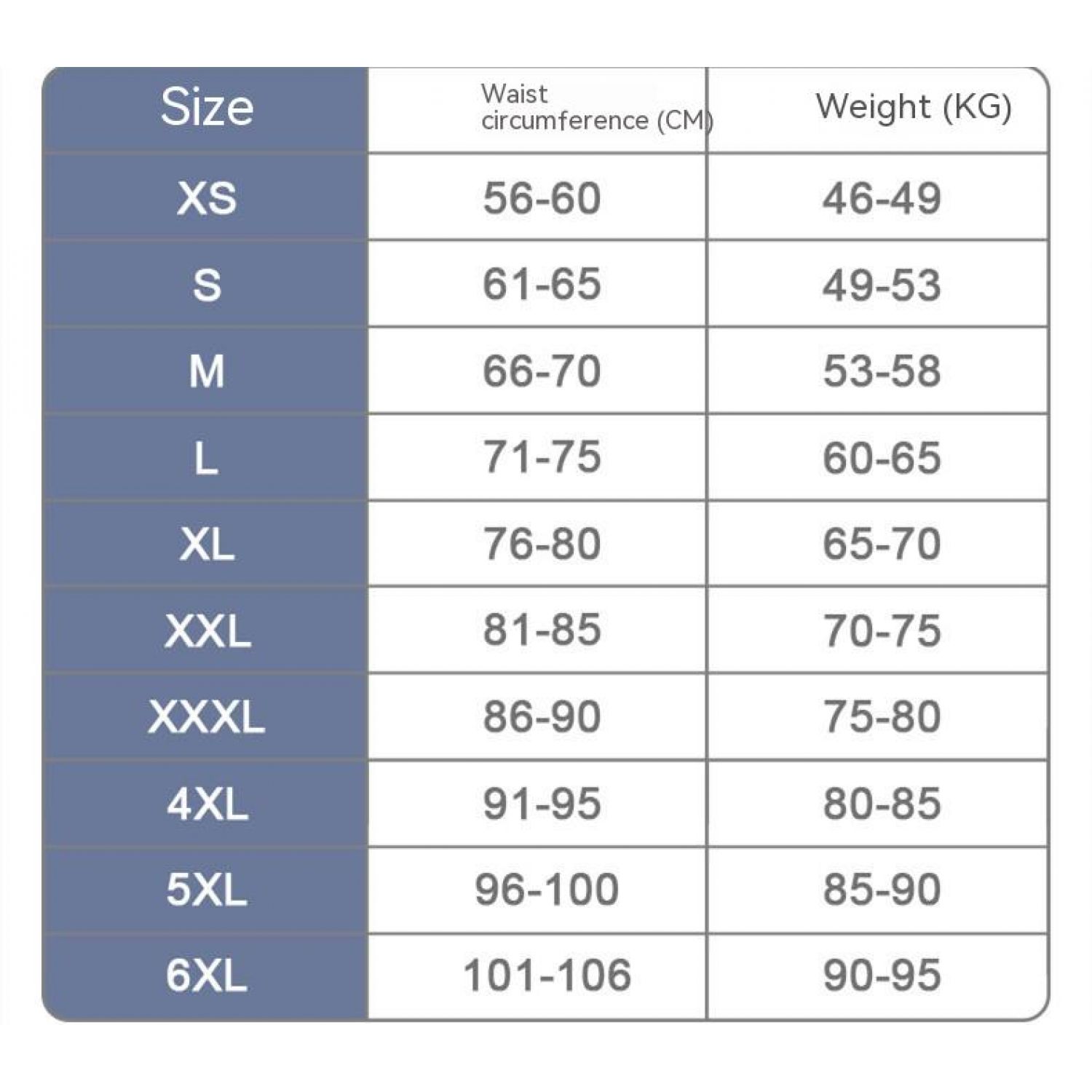 Size: XS, S, M, L, XL, XXL, 3XL, 4XL, 5XL, 6XL
