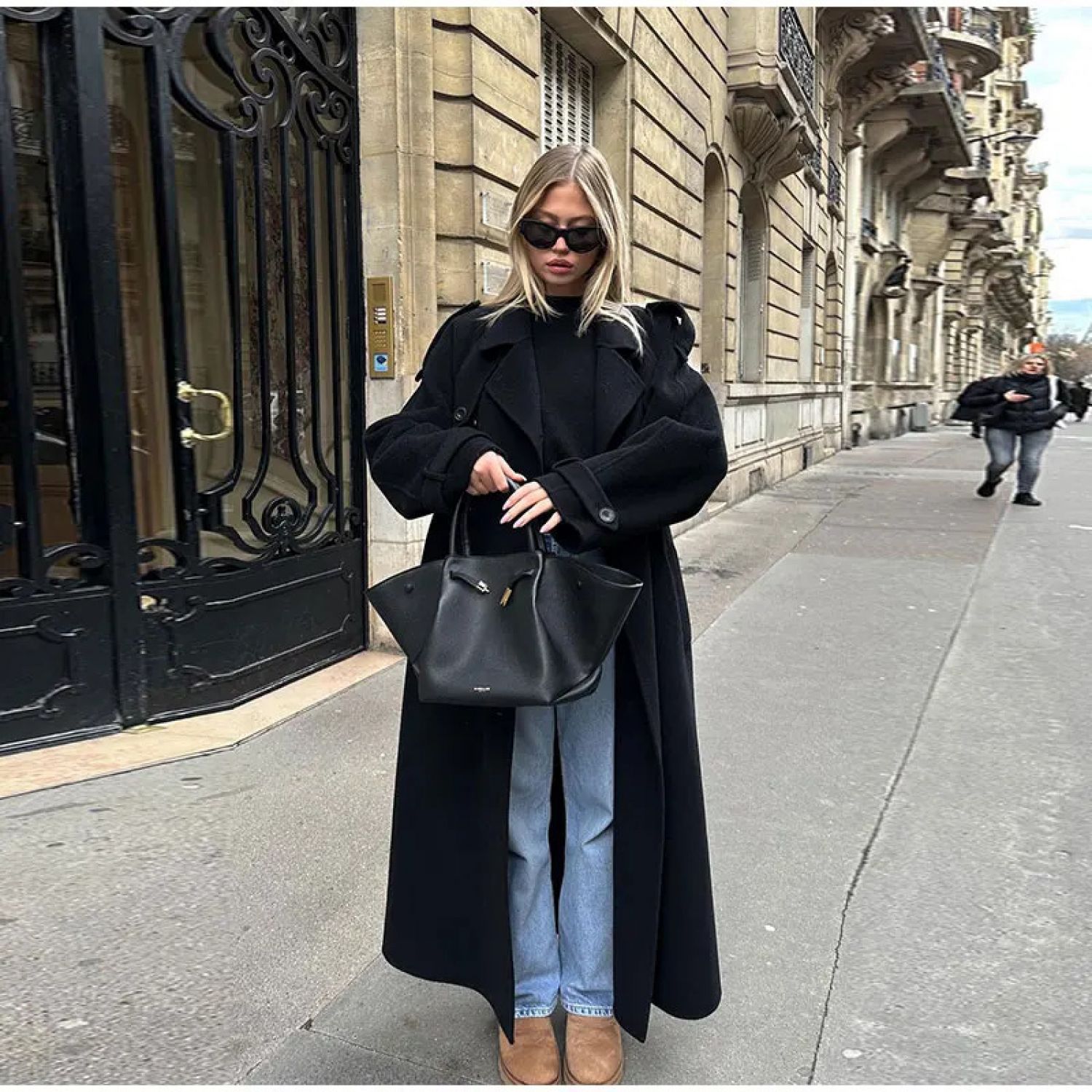 Spring Women's Trench Elegant Lapel Large Coat Black S