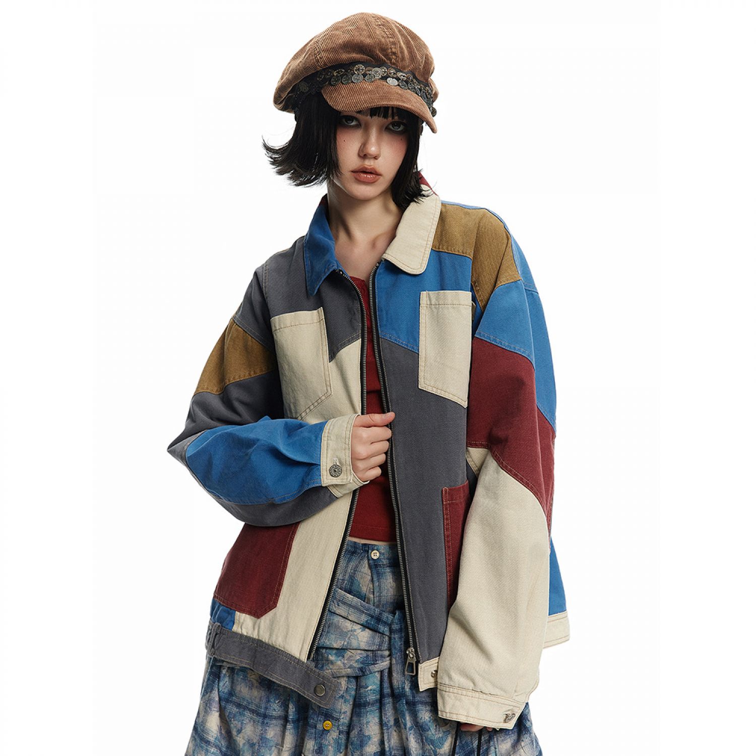 Product information: Pattern: color matching Pocket Style: top stitching bags Color: Color matching Suitable for people: Youth Size: M,L,XL,XXL Fabric name: denim Applicable scenarios: Leisure Main fabric composition: Cotton