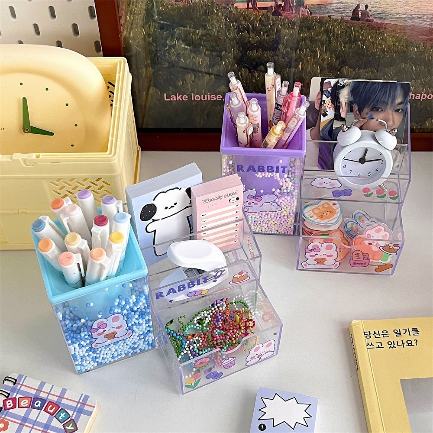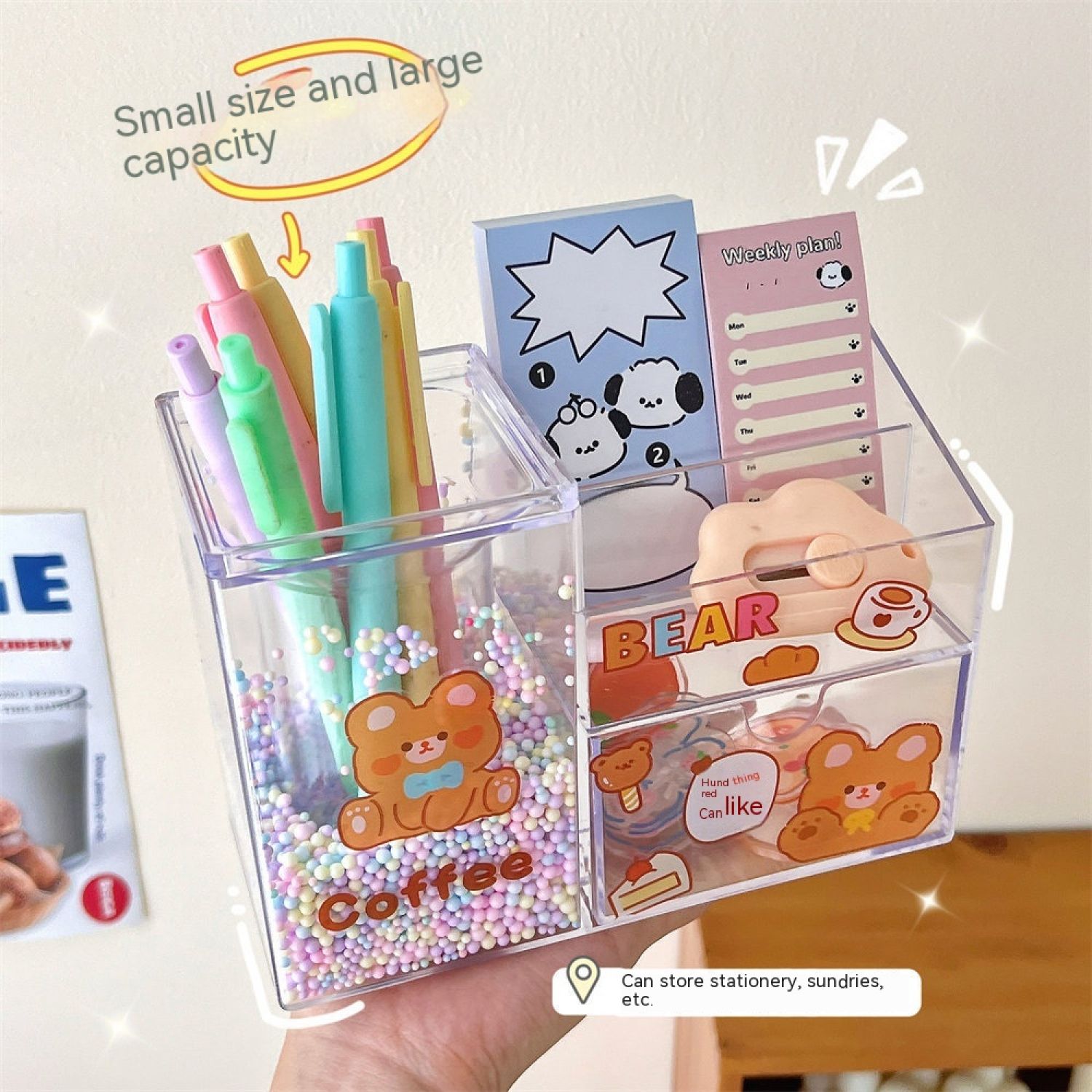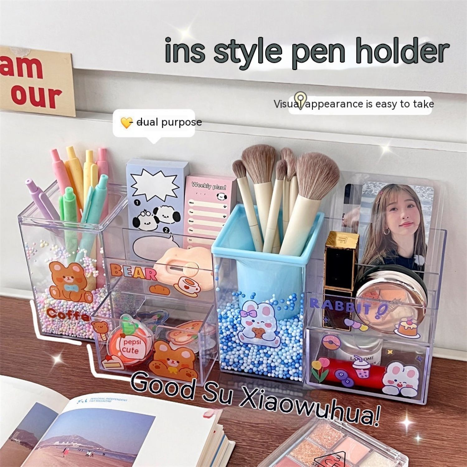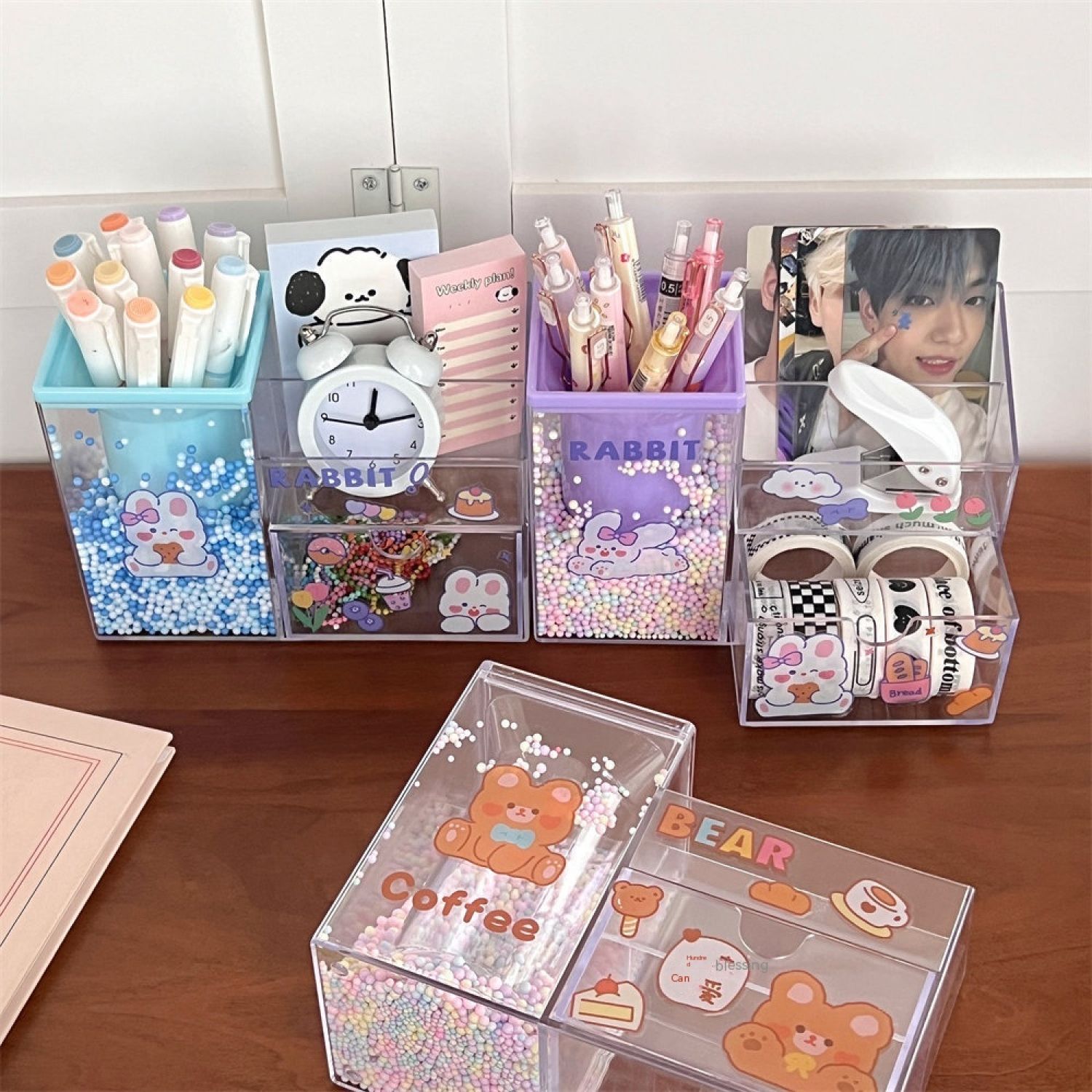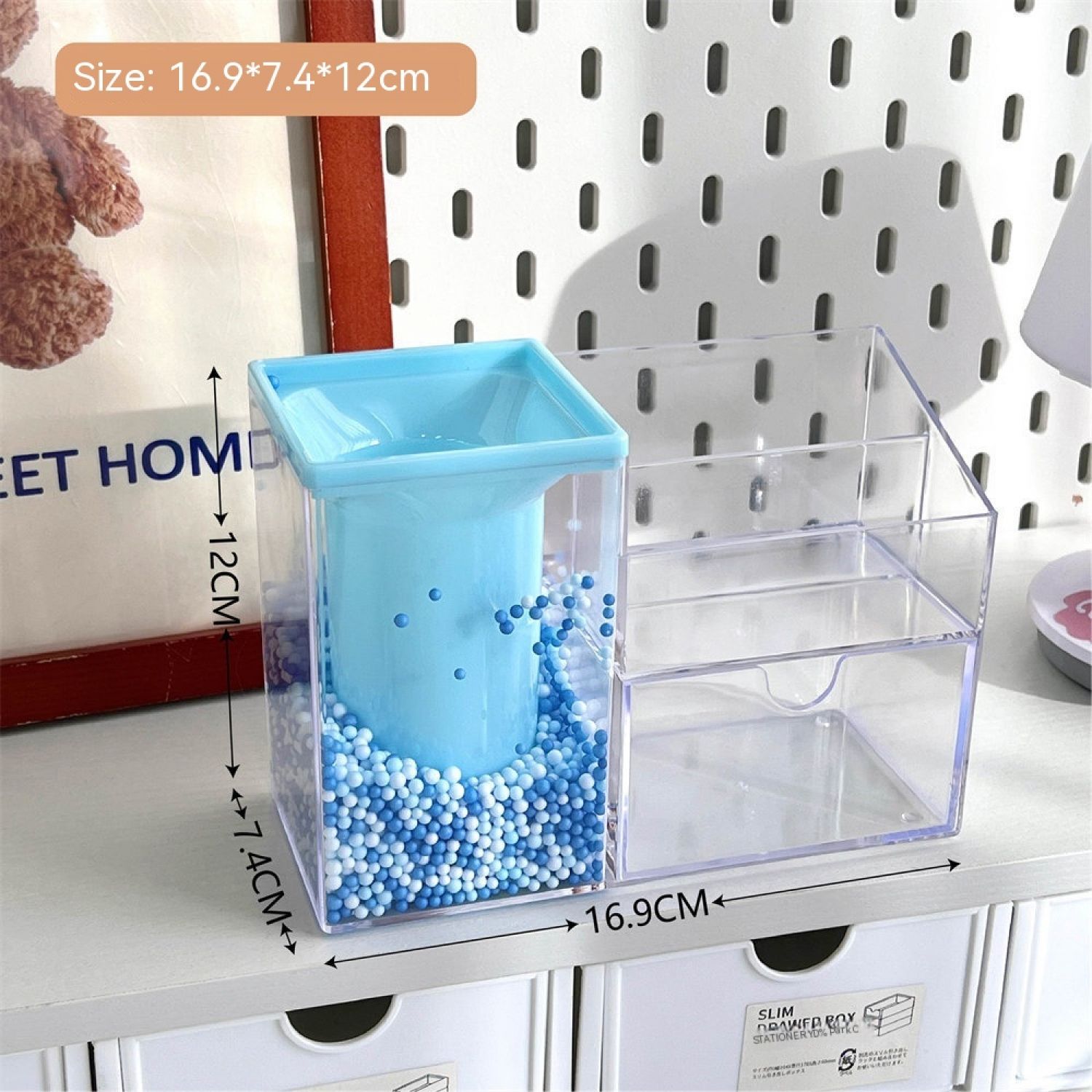 Student Large Capacity Desk Stationery Cute Girl Makeup Brush Holder Blue