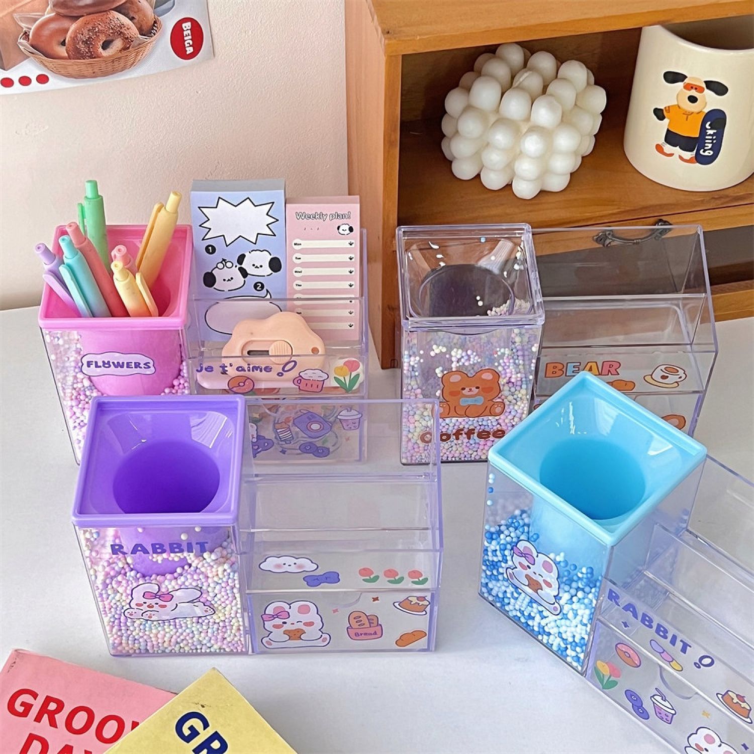Specifications: 1# blue storage box, 2# pink storage box, 3# transparent storage box, 4# purple storage box, 5# blue storage box [free stickers]], 6# pink storage box [free stickers] 7# transparent color storage box storage box [free stickers] 8# purple storage box [free stickers]]