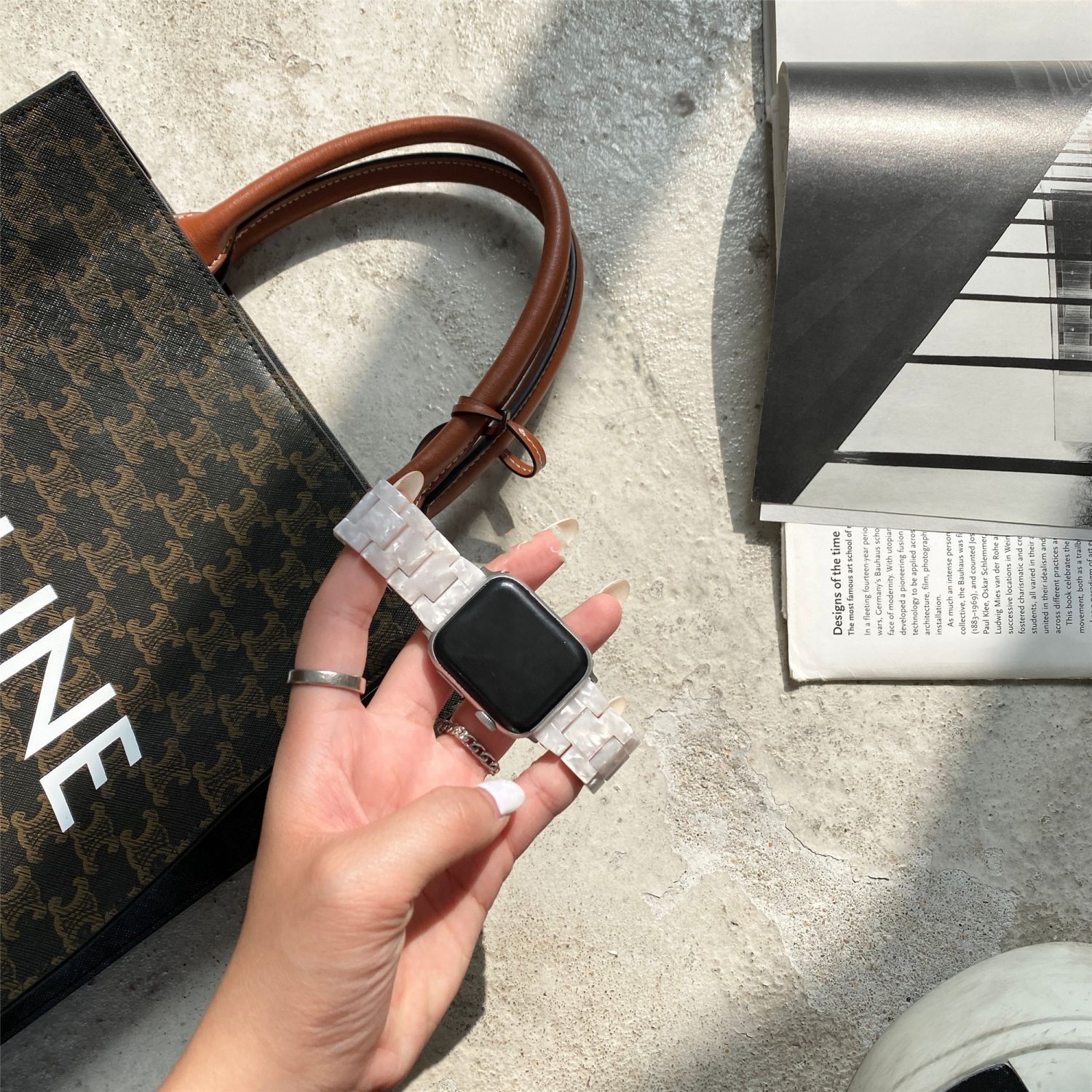 Suitable For Applewatch White Gray Shell Pattern Environmentally Friendly Lightweight Resin Apple Strap White