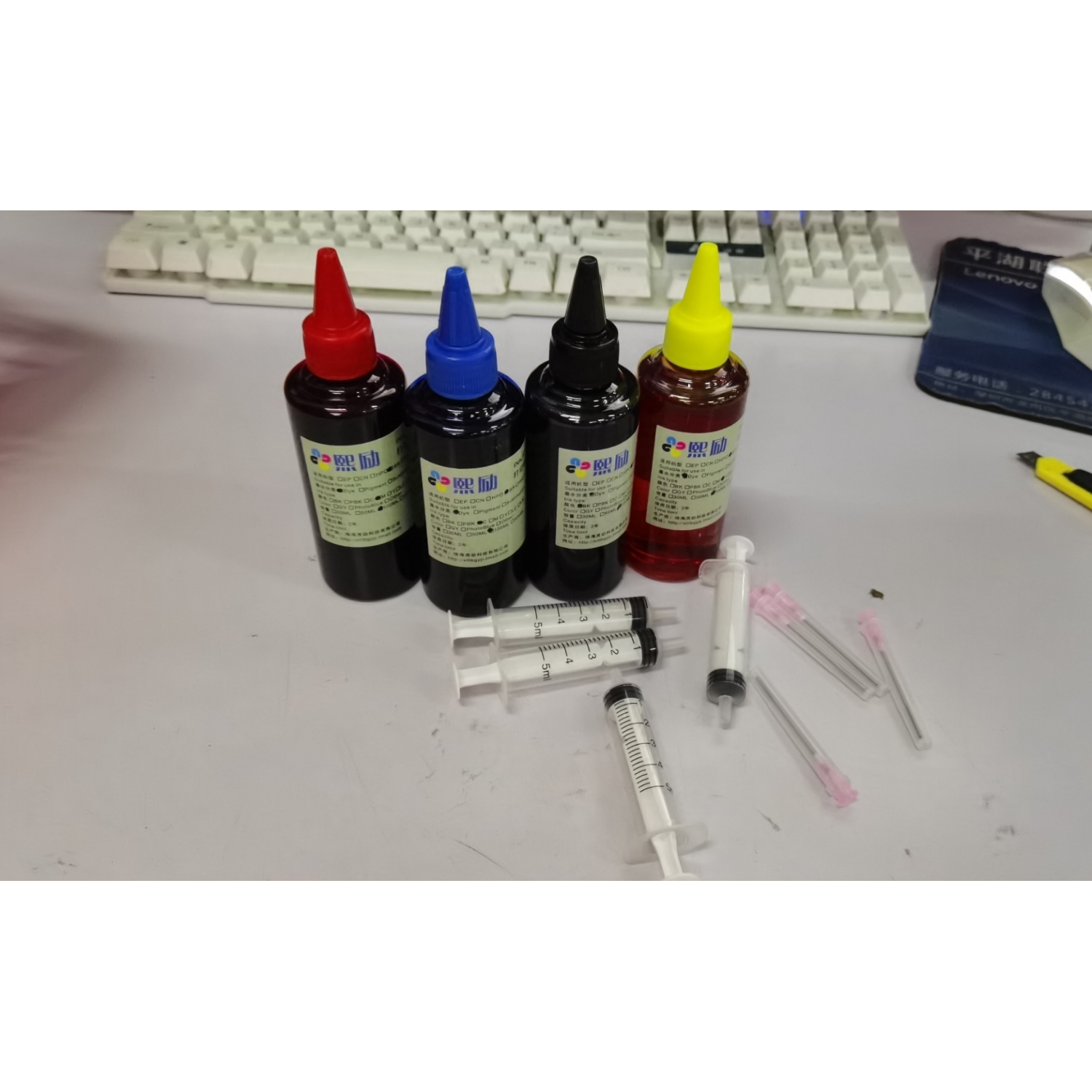 Color: A black (empty box), B blue (empty box), C red (empty box), D yellow (empty box), E black (full ink), F blue (full ink), G red (full Ink), H yellow (full ink), I special ink 100ML (any color), please note the color