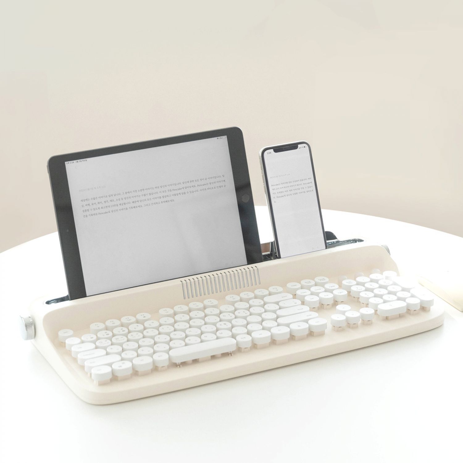 Tablet Phone Wireless Bluetooth External Keyboard Retro Typewriter White
