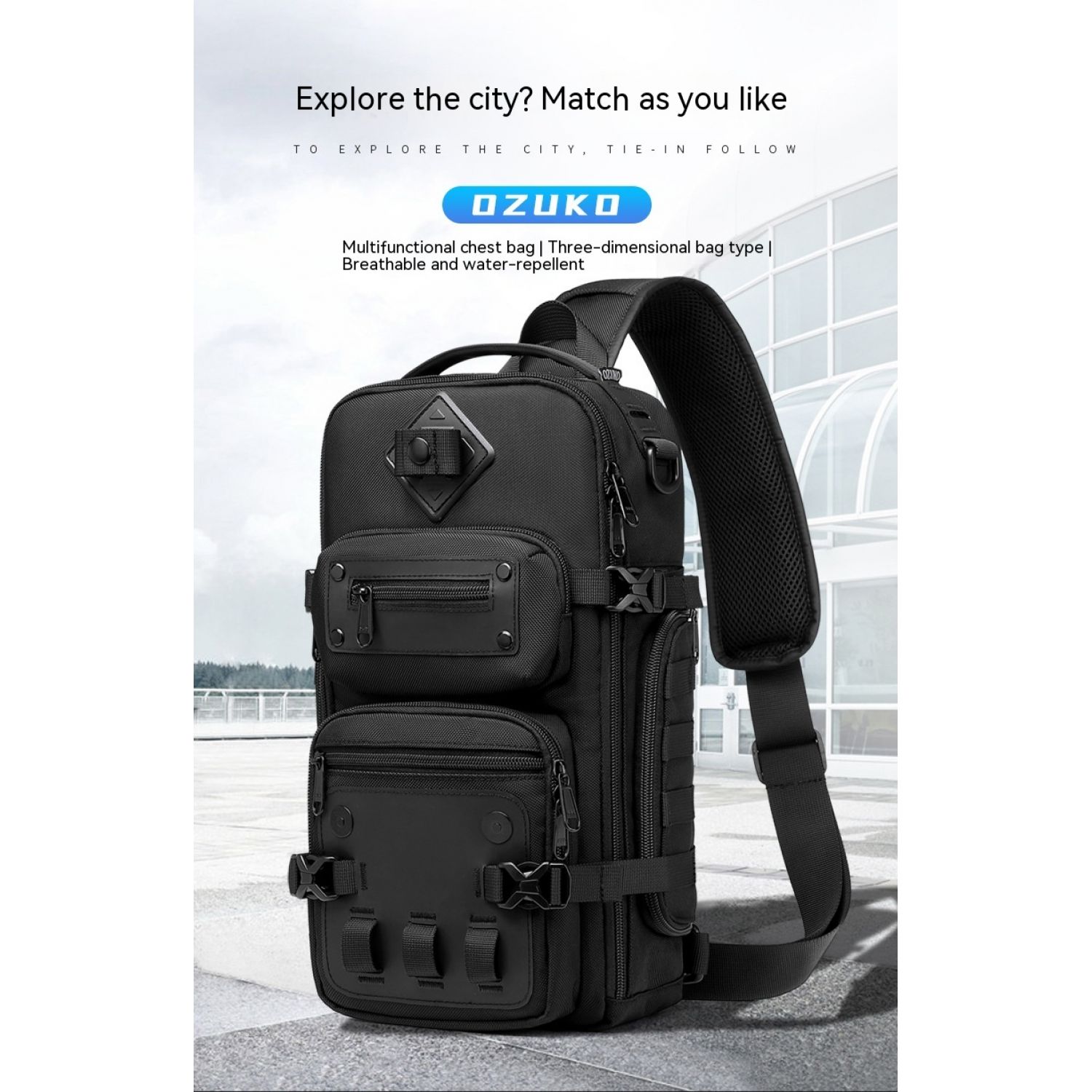 Tactical Chest Outdoor Large Capacity Sports Messenger Bag Black