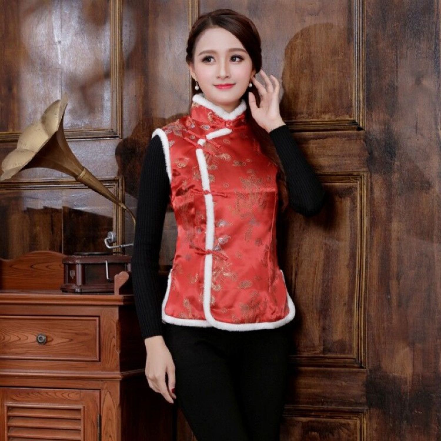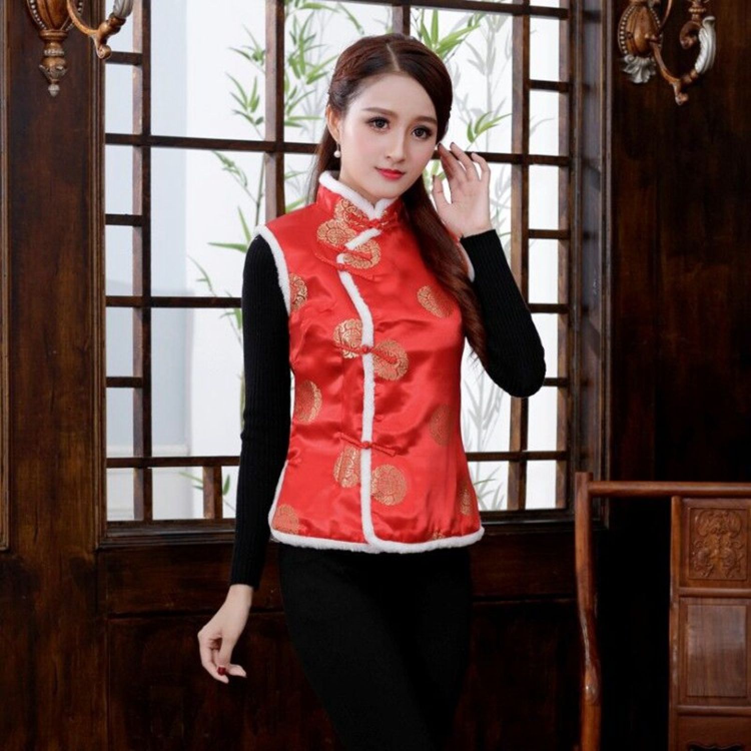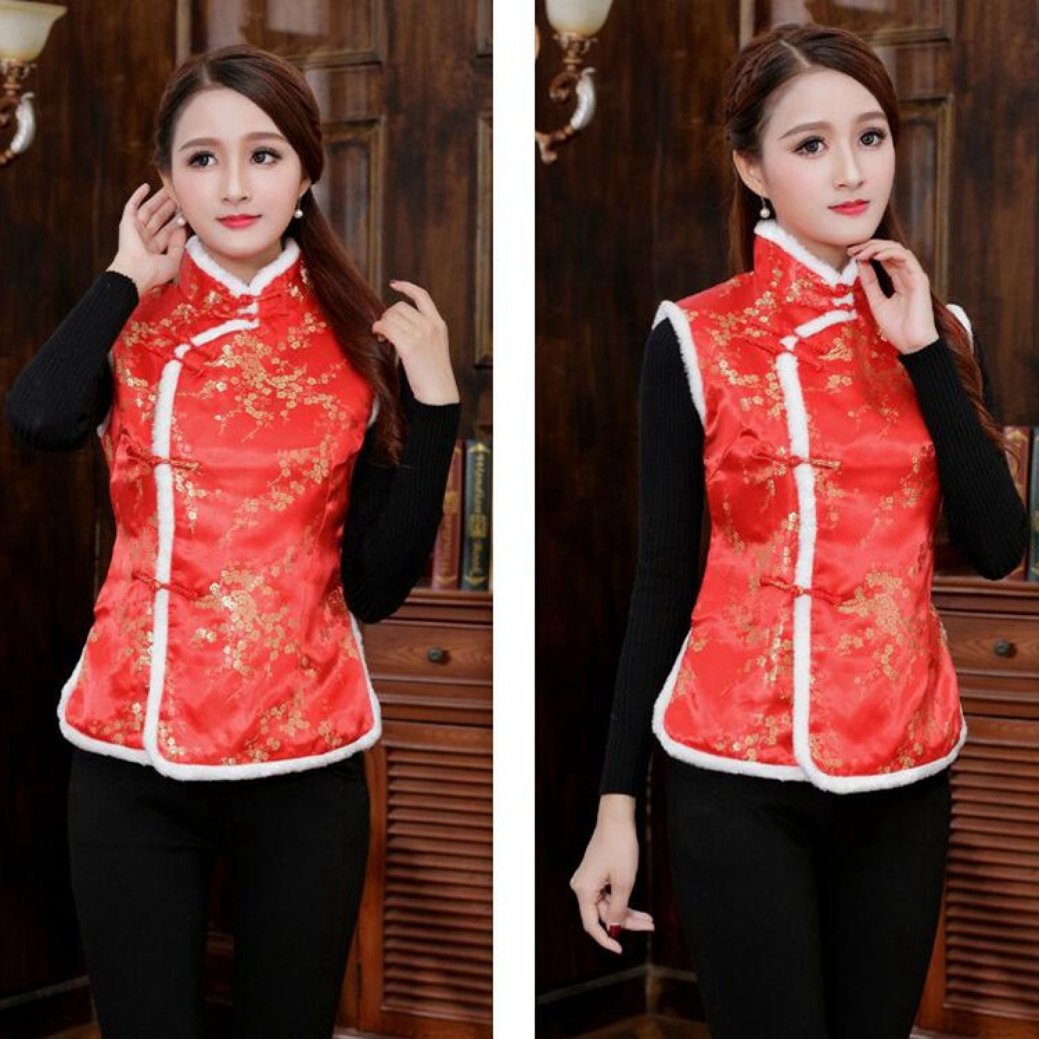 Color: Women's vest gold cake red, women's vest plum blossom red, women's vest Dragon and Phoenix Red, women's vest Phoenix Tail Red, women's vest plum pink, women's vest plum black red, women's vest Plum Blossom Dark Blue