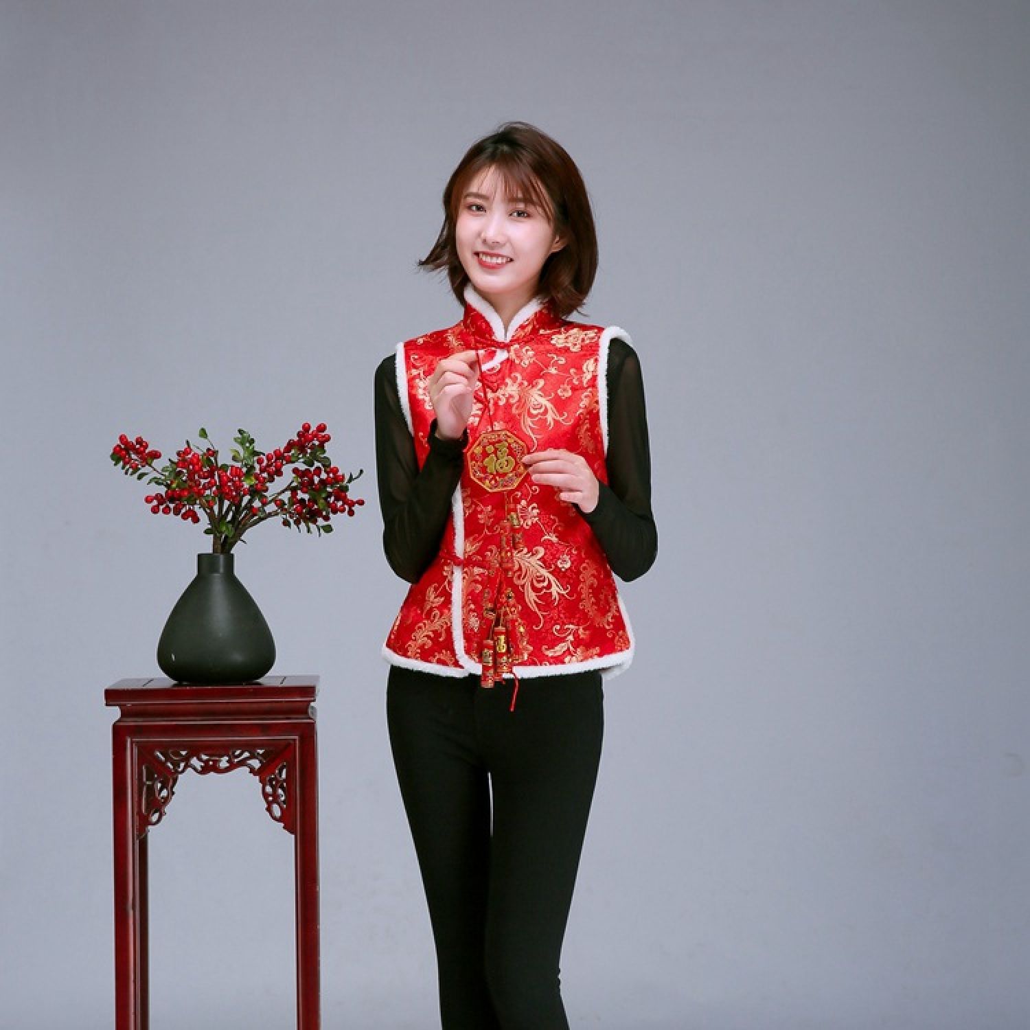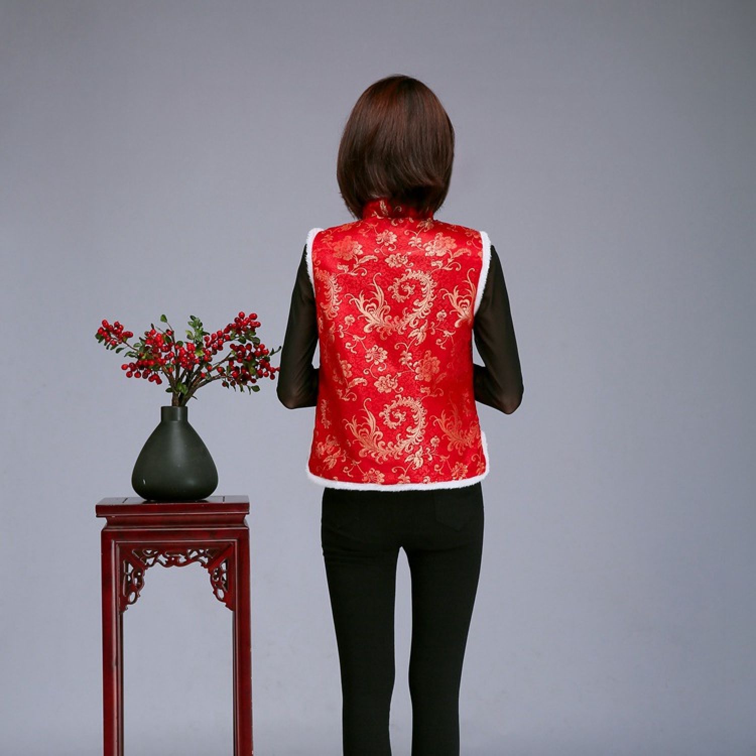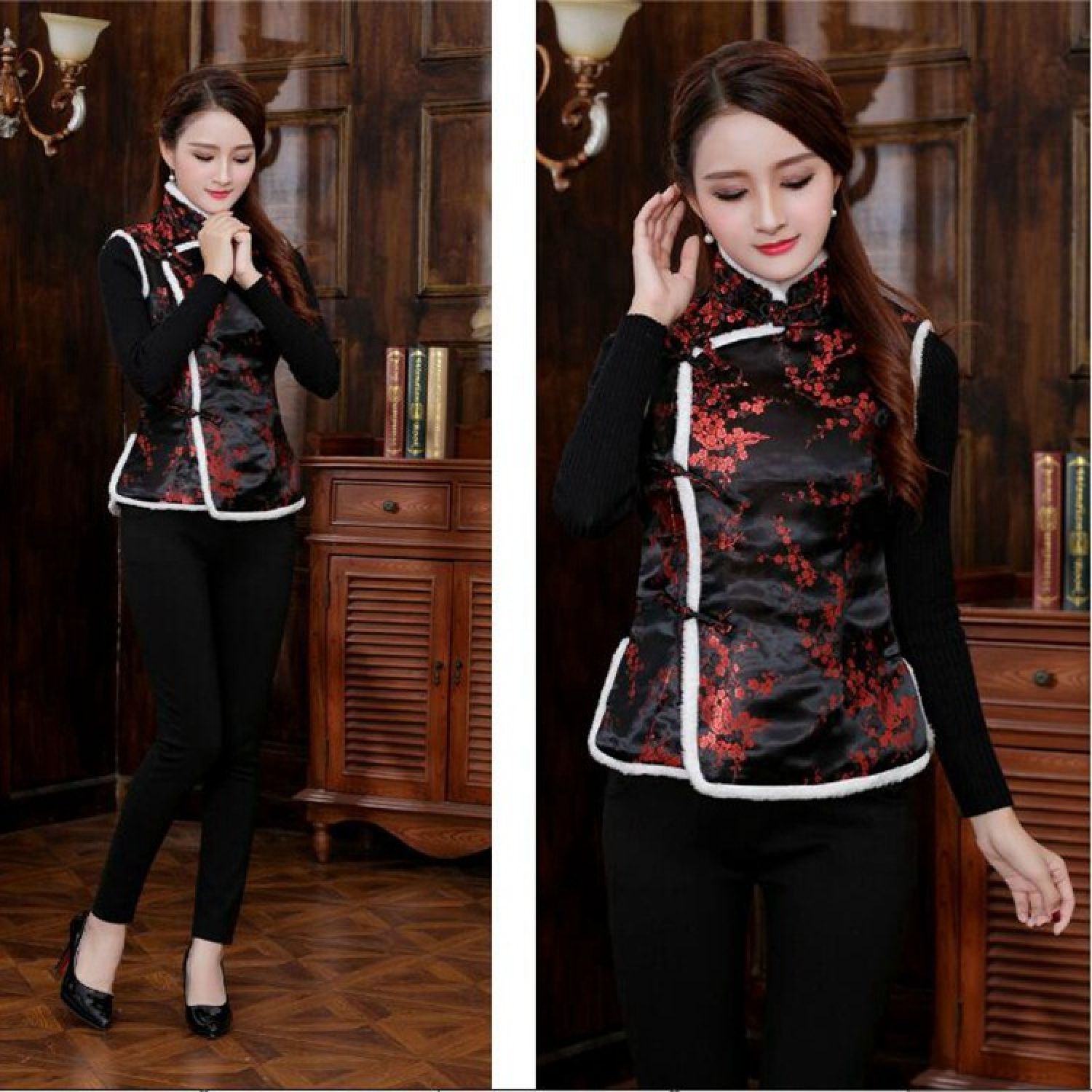 Color: Women's vest gold cake red, women's vest plum blossom red, women's vest Dragon and Phoenix Red, women's vest Phoenix Tail Red, women's vest plum pink, women's vest plum black red, women's vest Plum Blossom Dark Blue