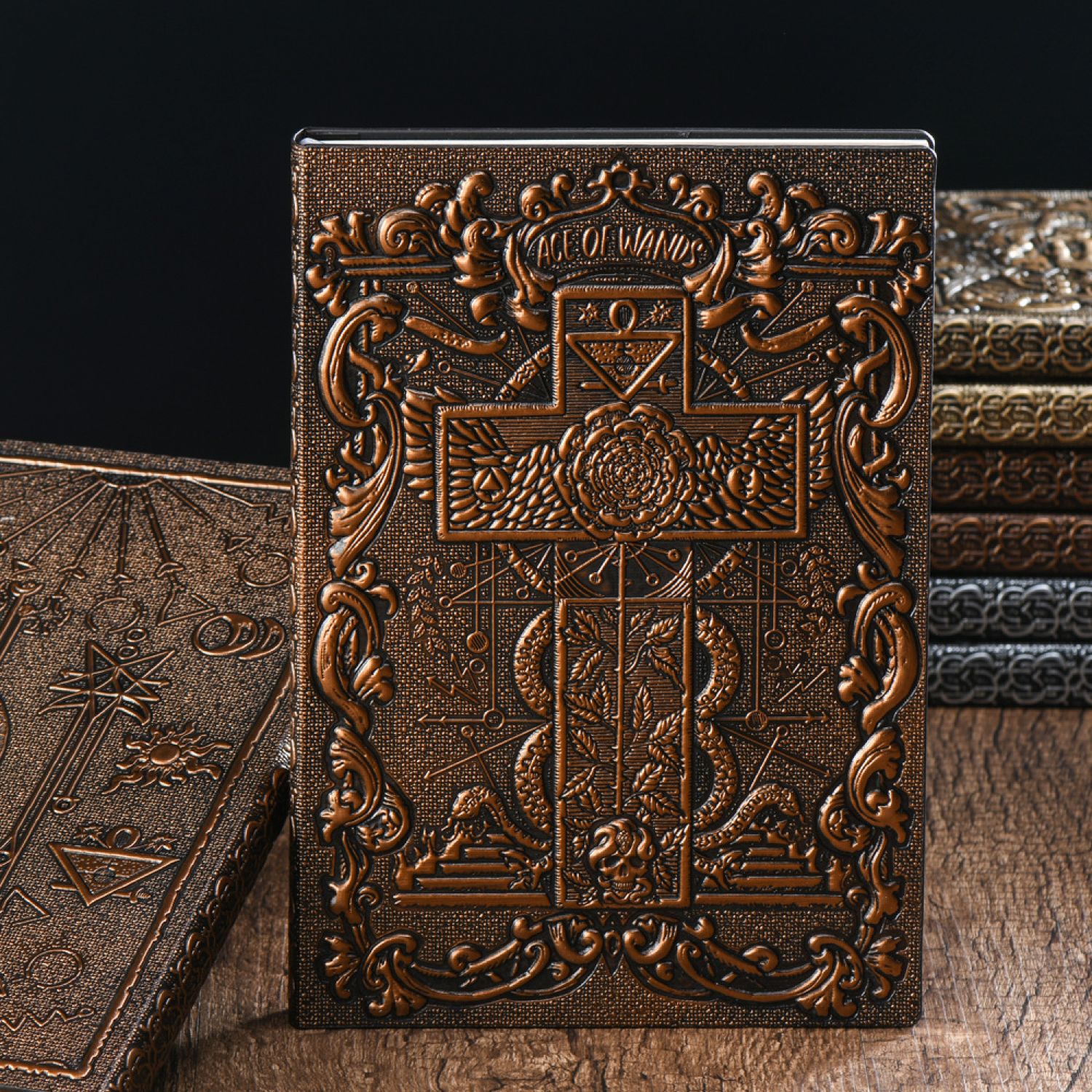 Tarot Card Retro Embossed Notebook PU Bronze Notepad Factory Direct Supply Red bronze A5