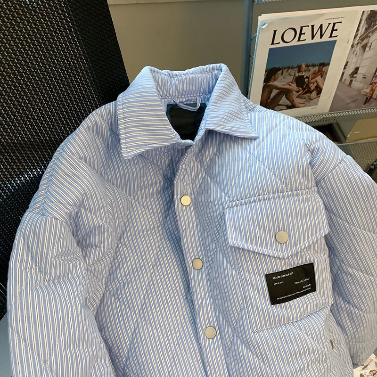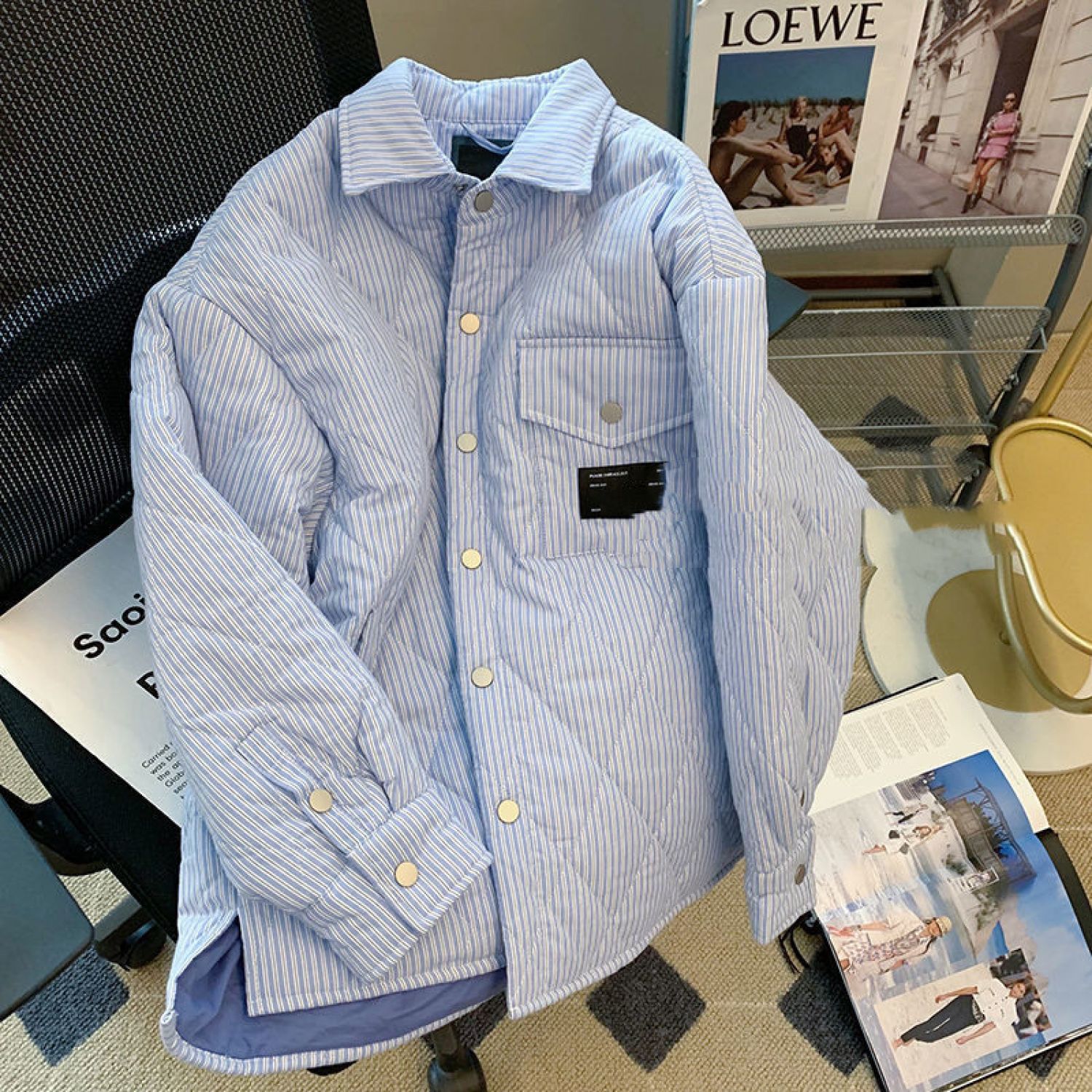 Thickened Cotton Clothing Niche Loose Design Jacket Blue S