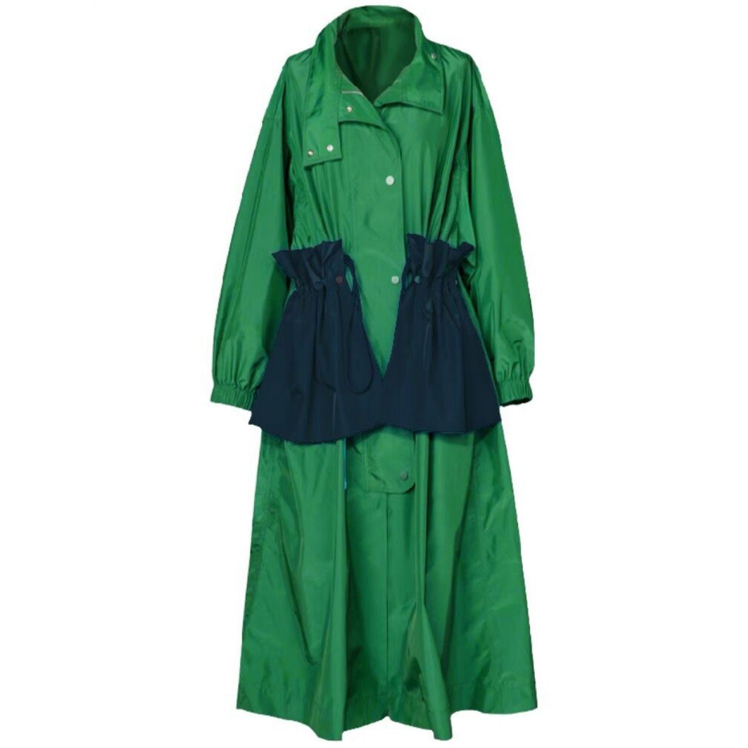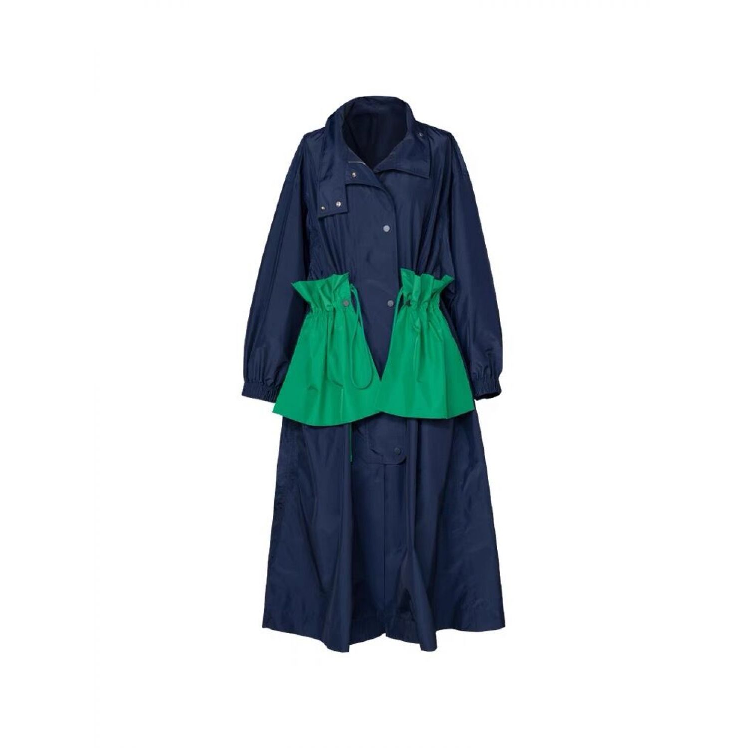 Thin Pocket Decoration Waist Men's And Women's Trench Coat Green XS