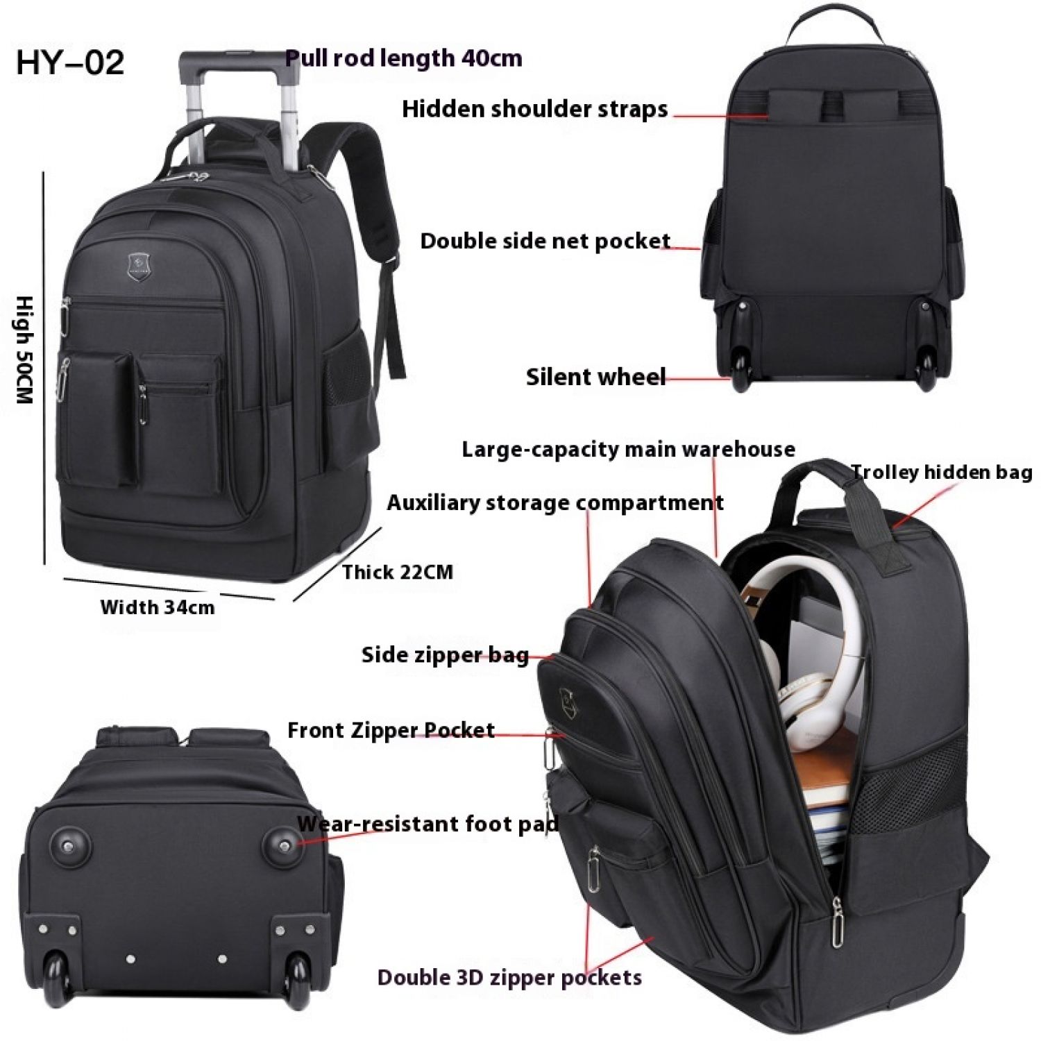 Trolley Backpack Ultra-light Trolley Bag Large Capacity Single-directional Wheel Gray 16inch