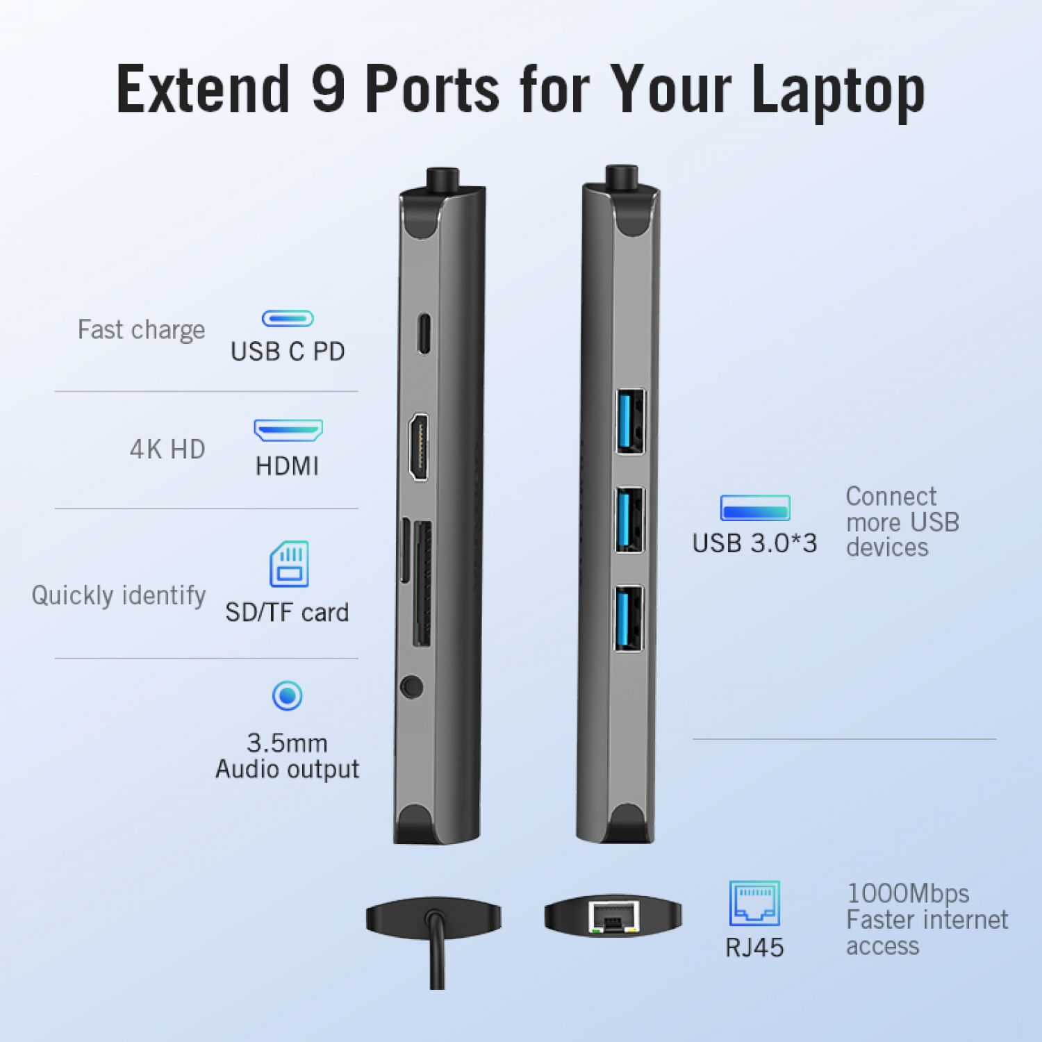 Transmission direction: Type-C to HDMI, USB, RJ45, TF / SD, PD