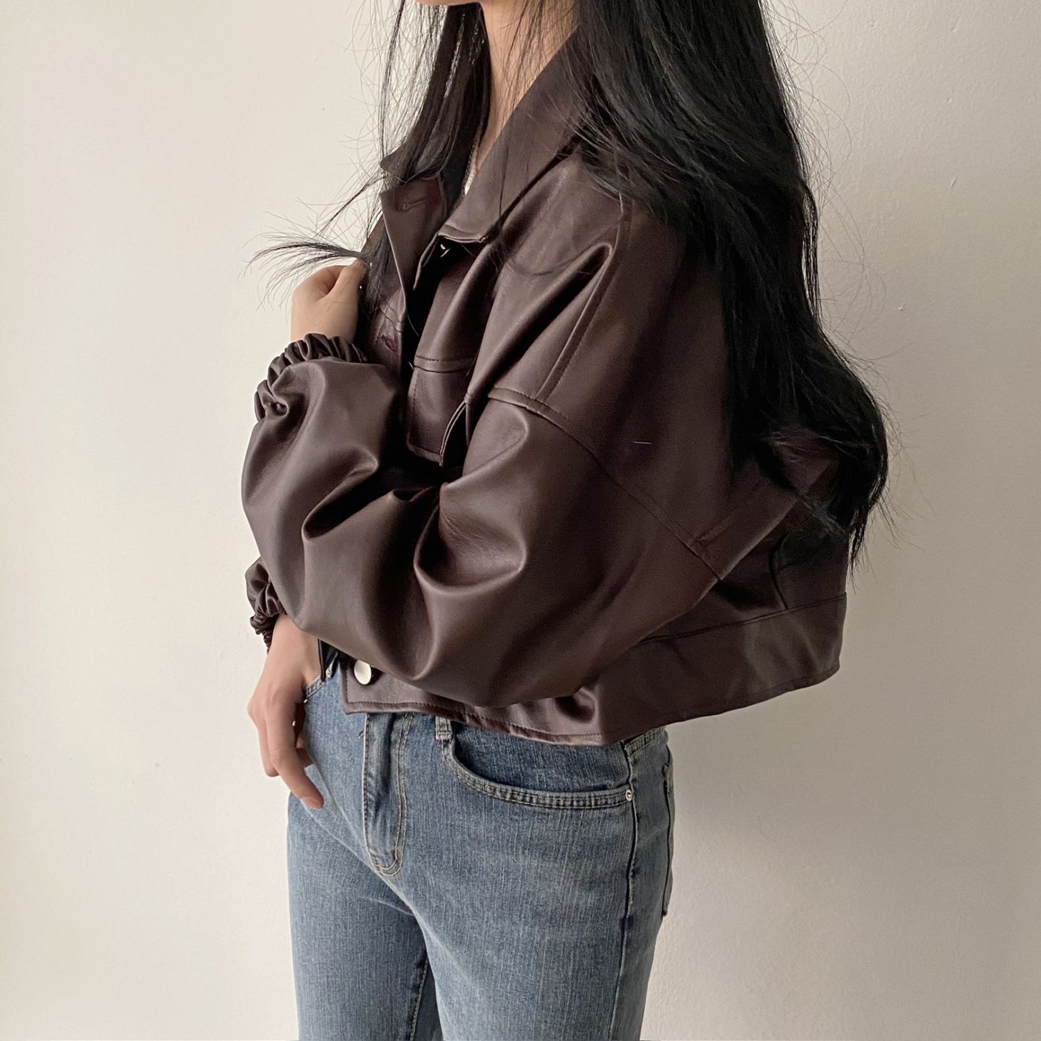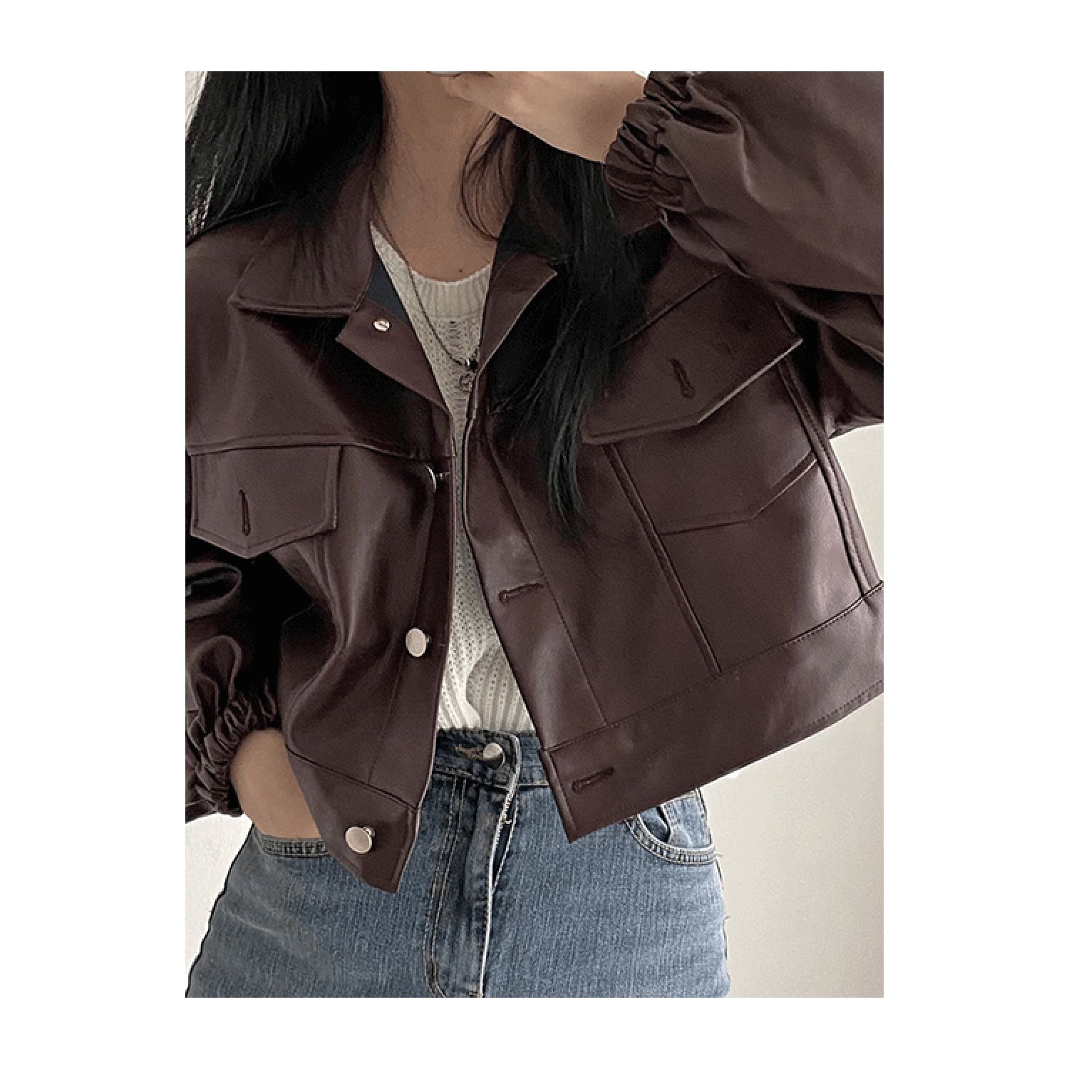 Versatile Short Jacket PU Leather Women Maroon Free Size
