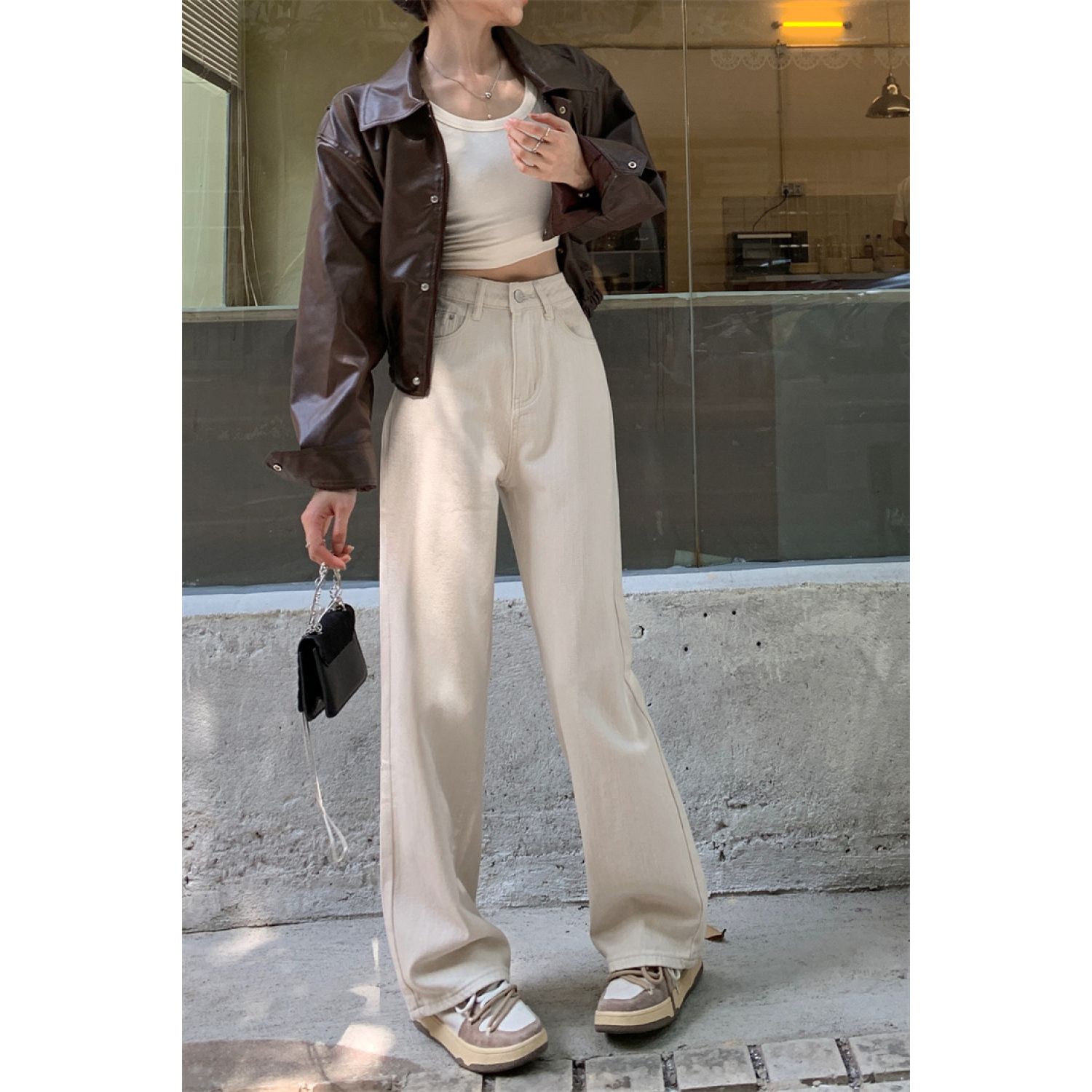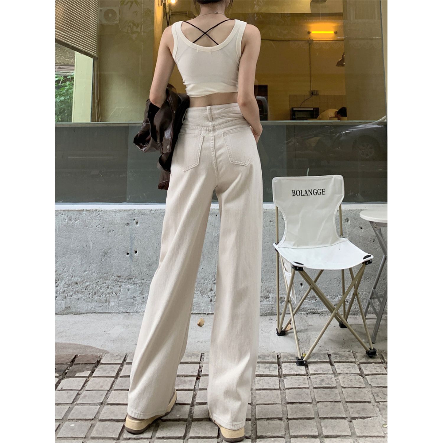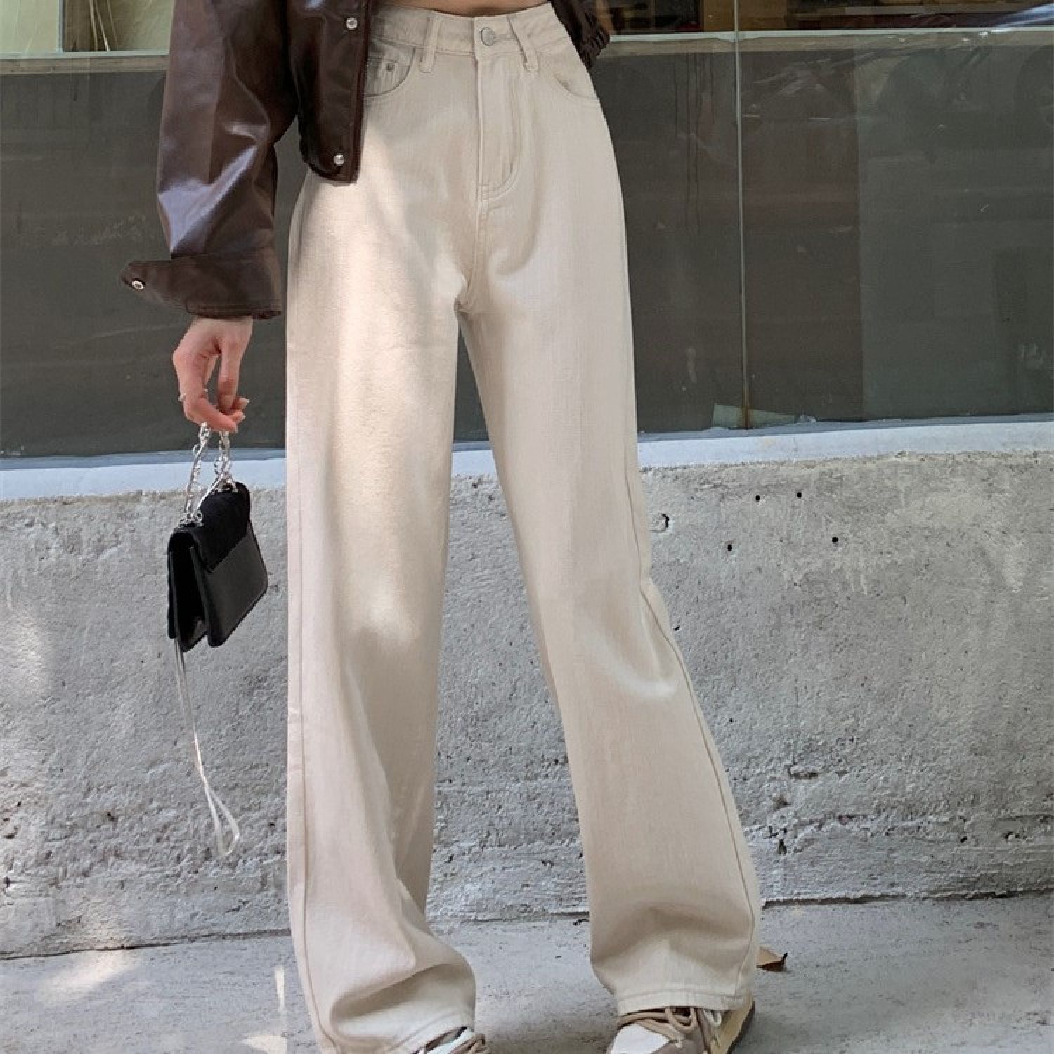 Product information: Fabric name: denim Color: White Elasticity: inelastic Main fabric composition: Cotton Pants length: trousers Waist type: high waist Size: XS,S,M,L,XL Pants type: straight-leg pants