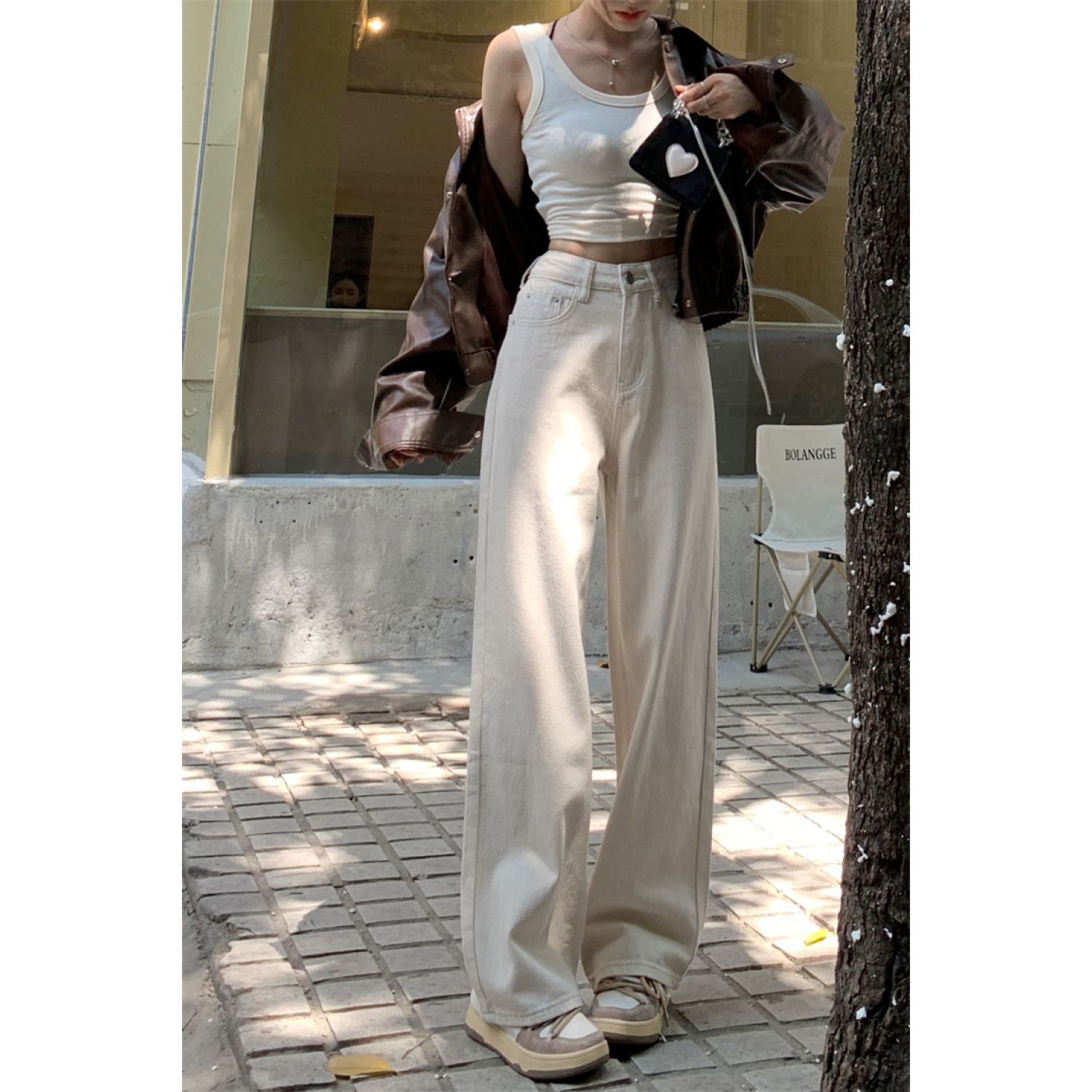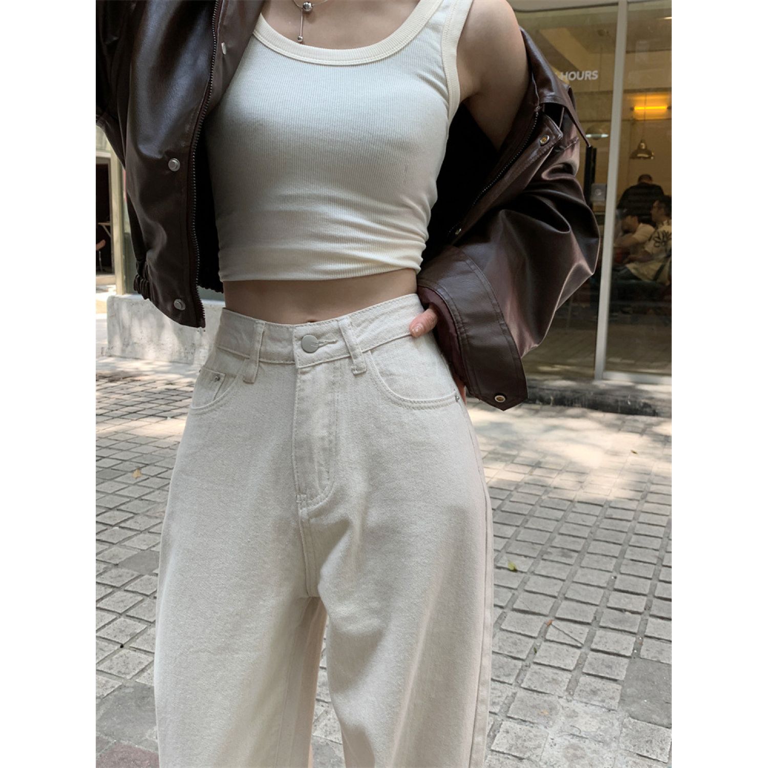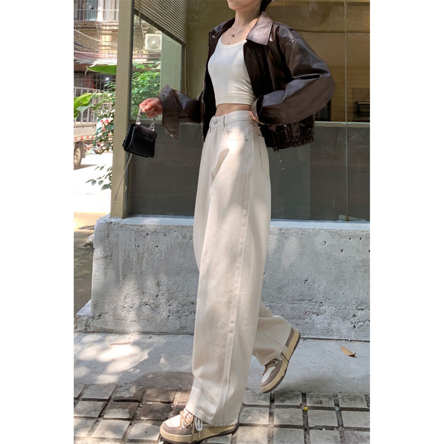 Product information: Fabric name: denim Color: White Elasticity: inelastic Main fabric composition: Cotton Pants length: trousers Waist type: high waist Size: XS,S,M,L,XL Pants type: straight-leg pants