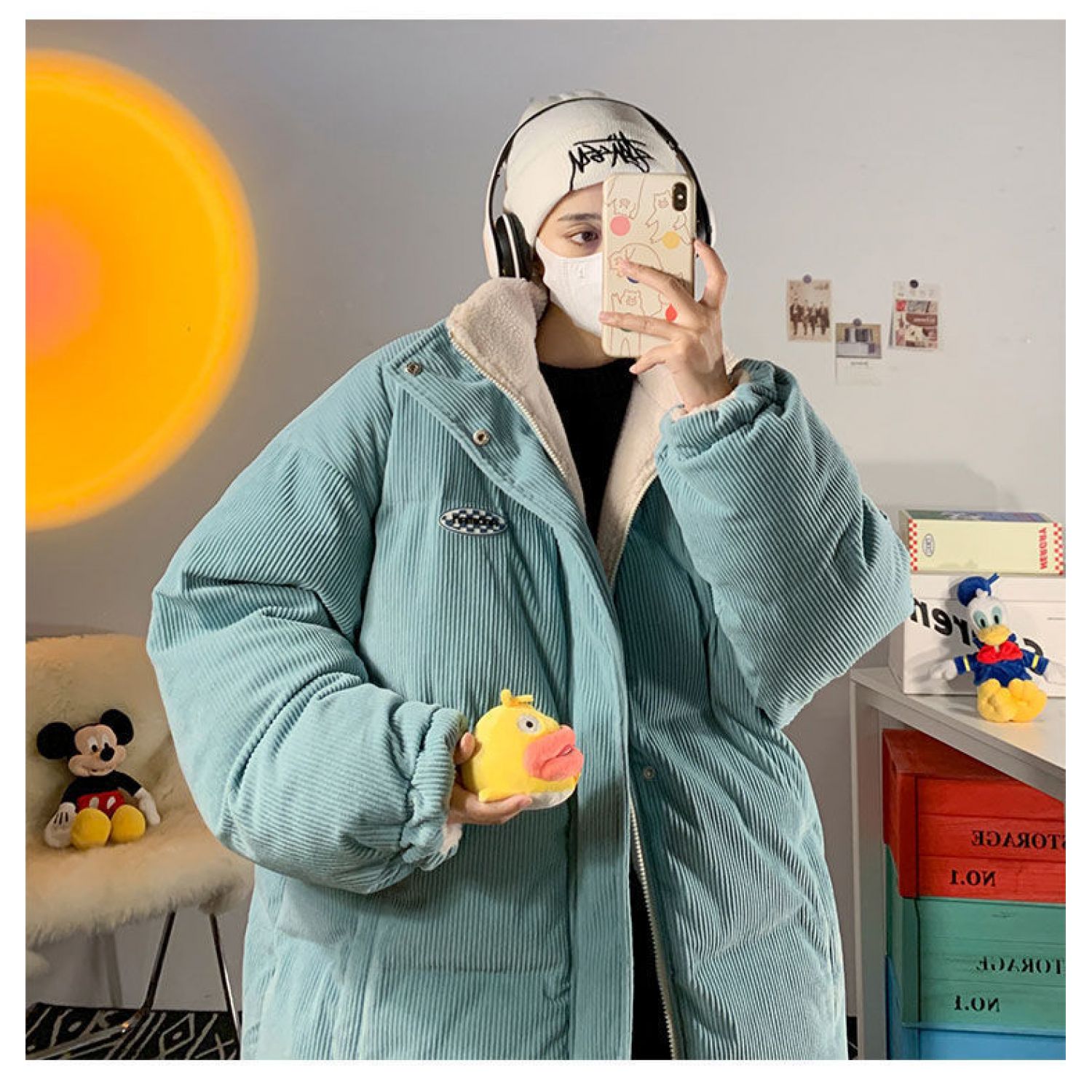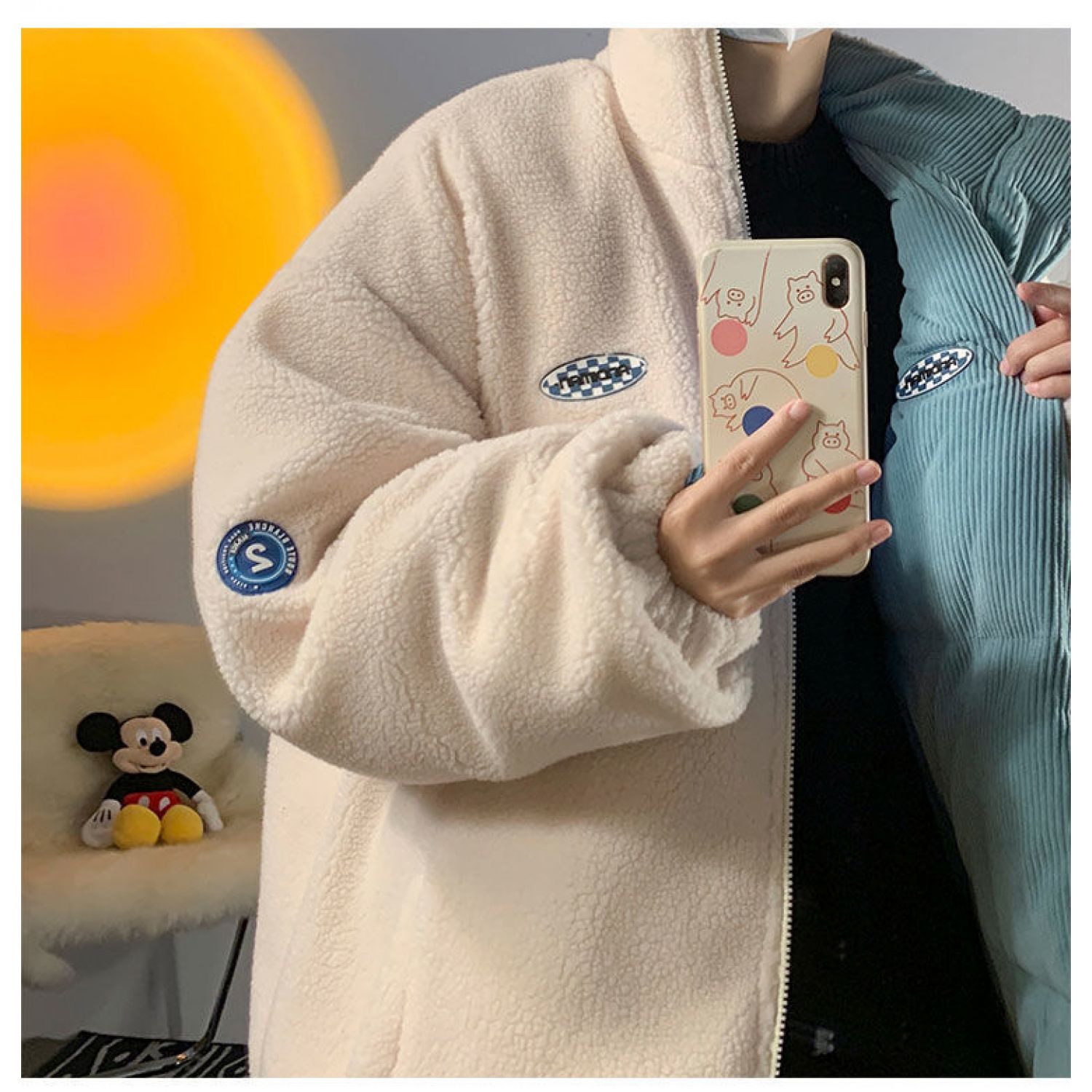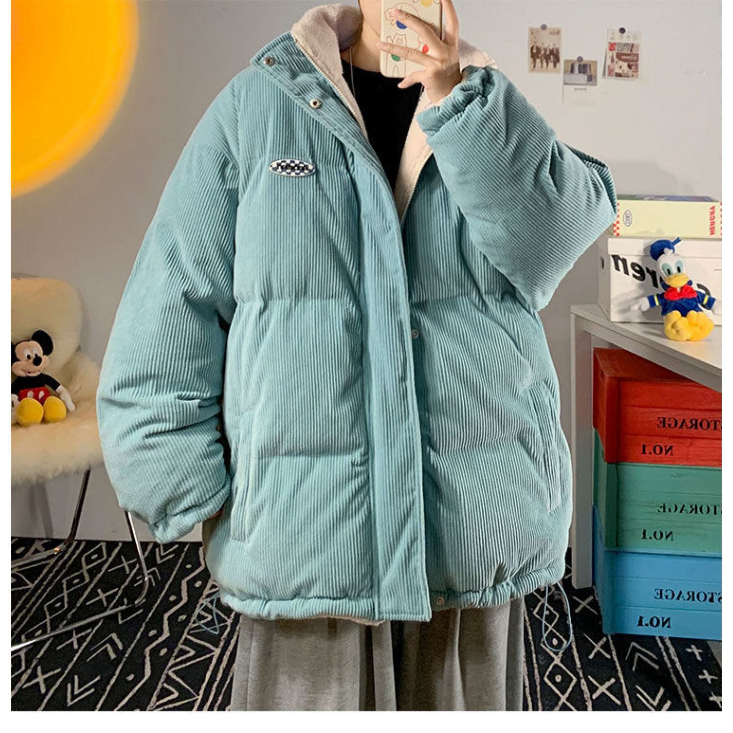 Color: blue wear on both sides (corduroy and lamb wool), creamy-white wear on both sides (corduroy and lamb wool)