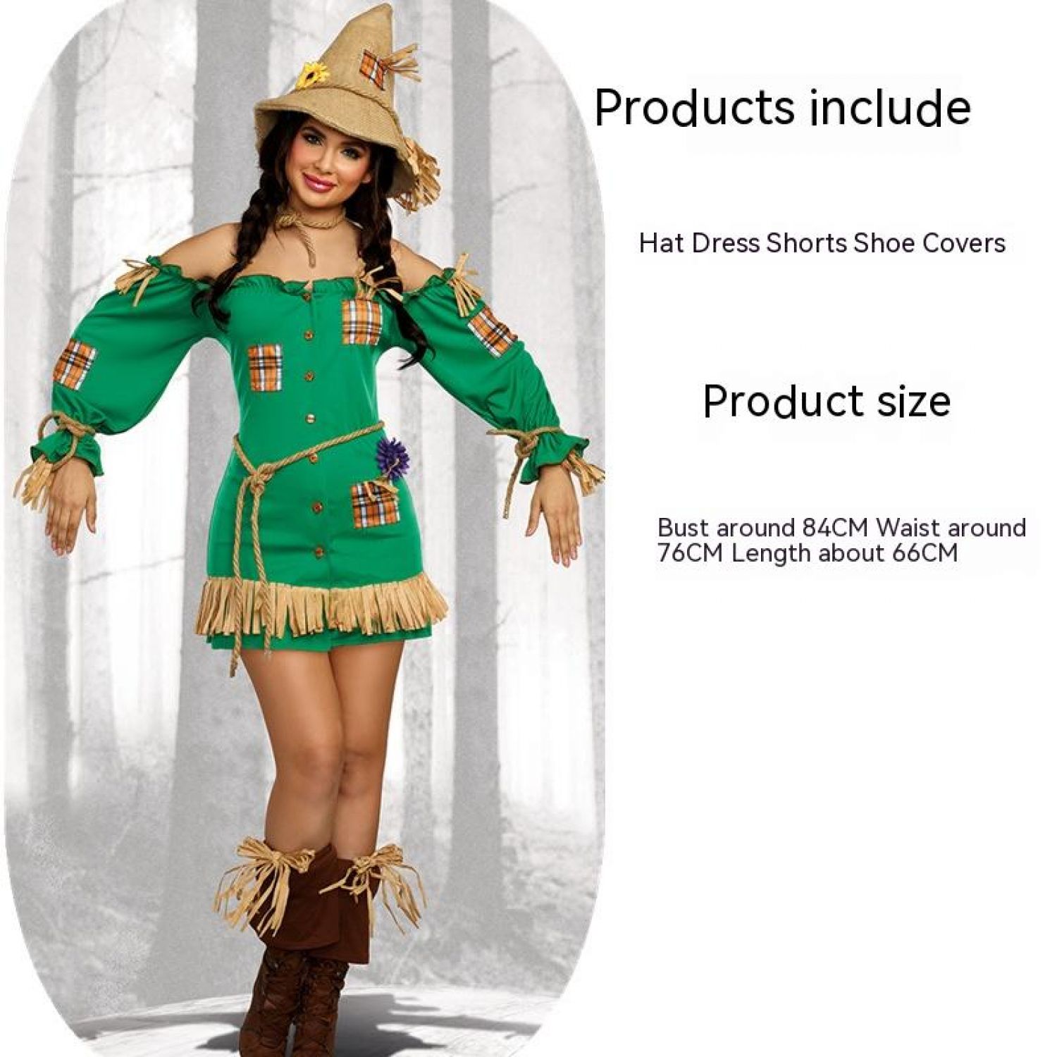 Wizard Of Oz Scarecrow Drama Stage Costume 9030 Green Average Size
