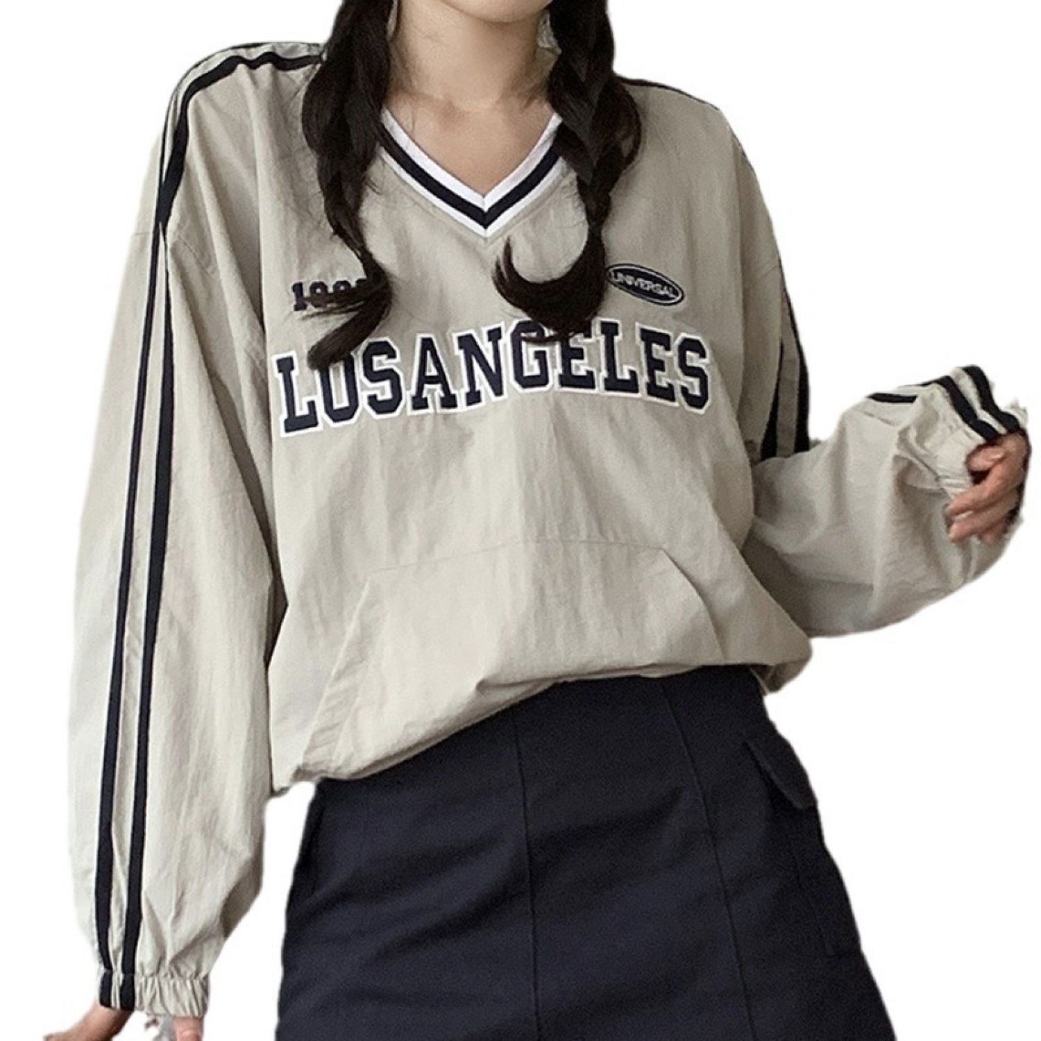 Women's All-match Long Sleeve Sweatshirt Tops Light Khaki Free Size