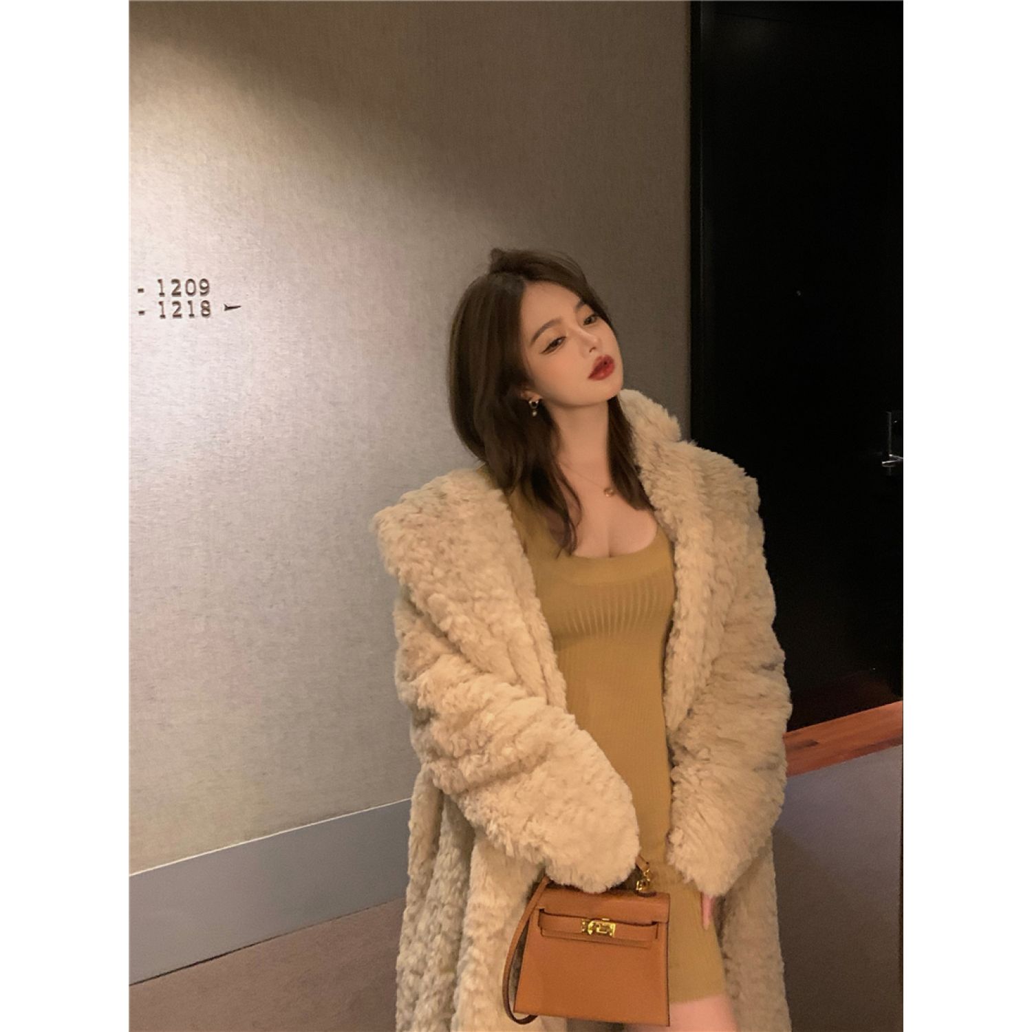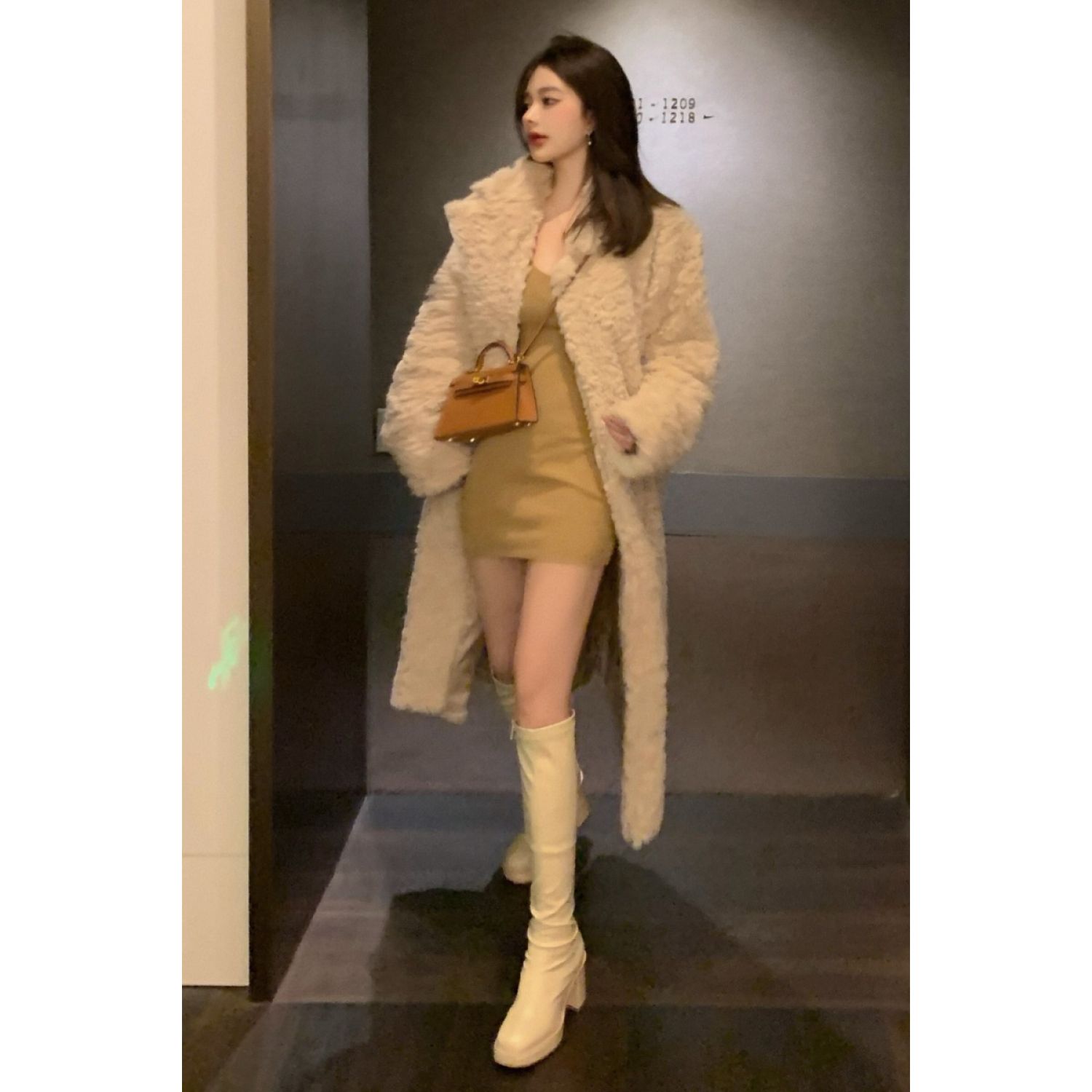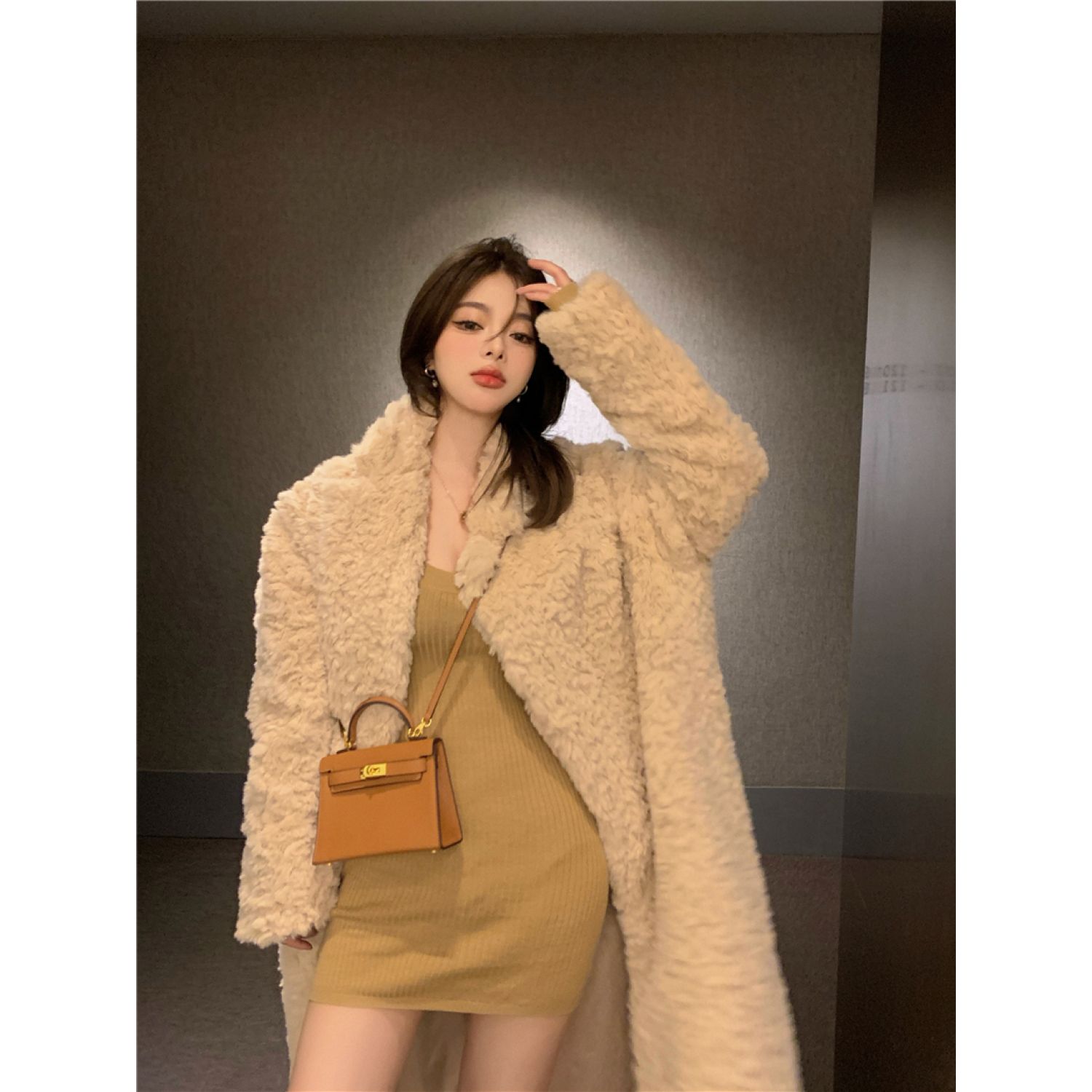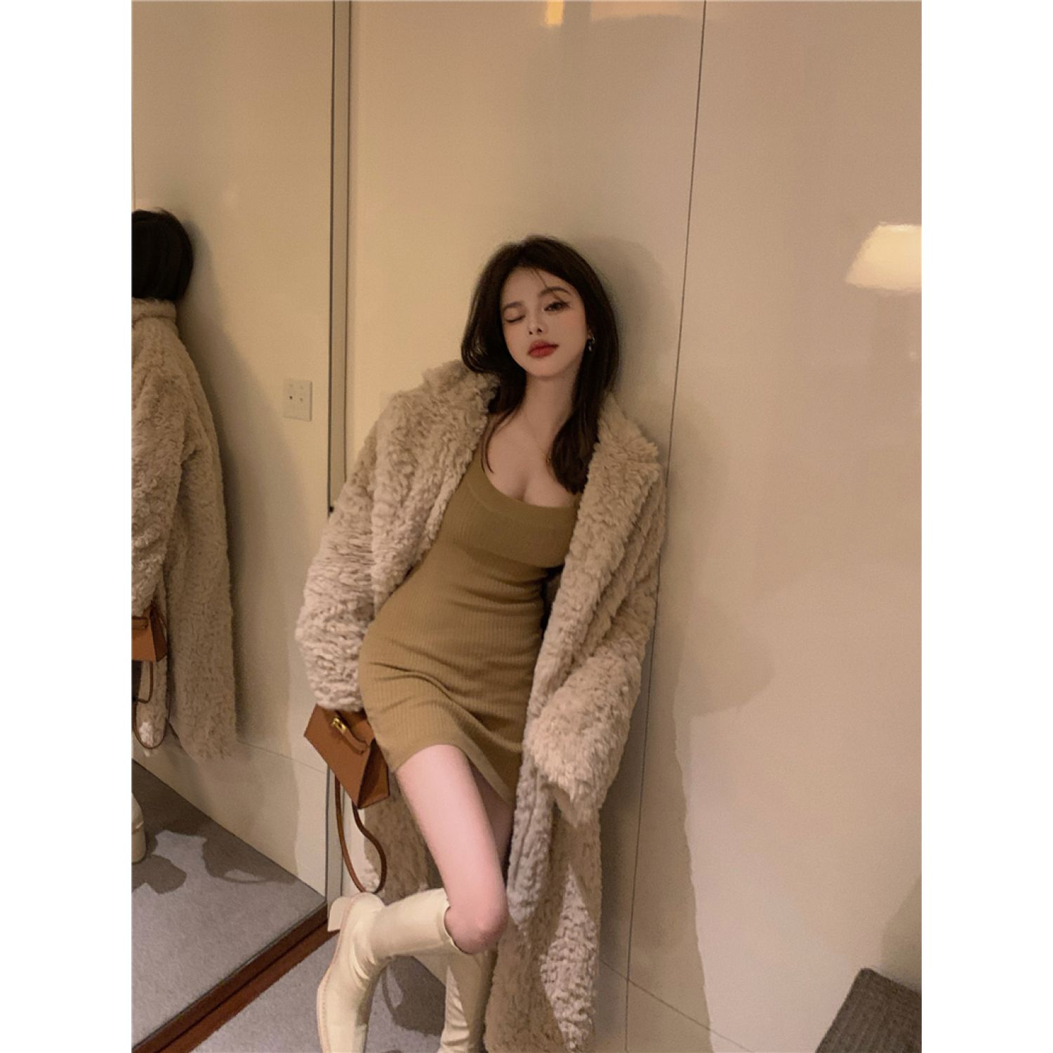 Color classification: Knitted bottoming skirt, fur coat