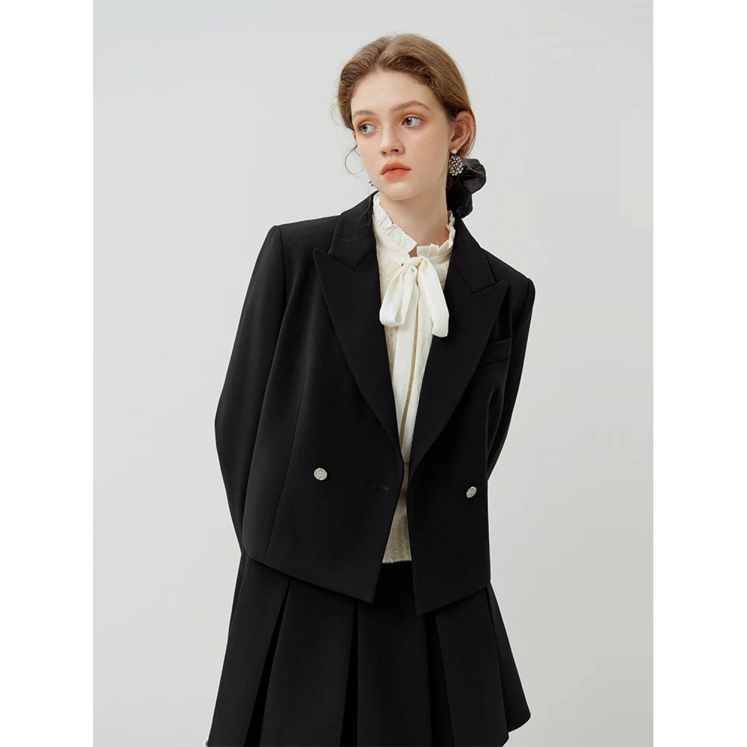 Women's Casual College Style Short Suit Coat Black L