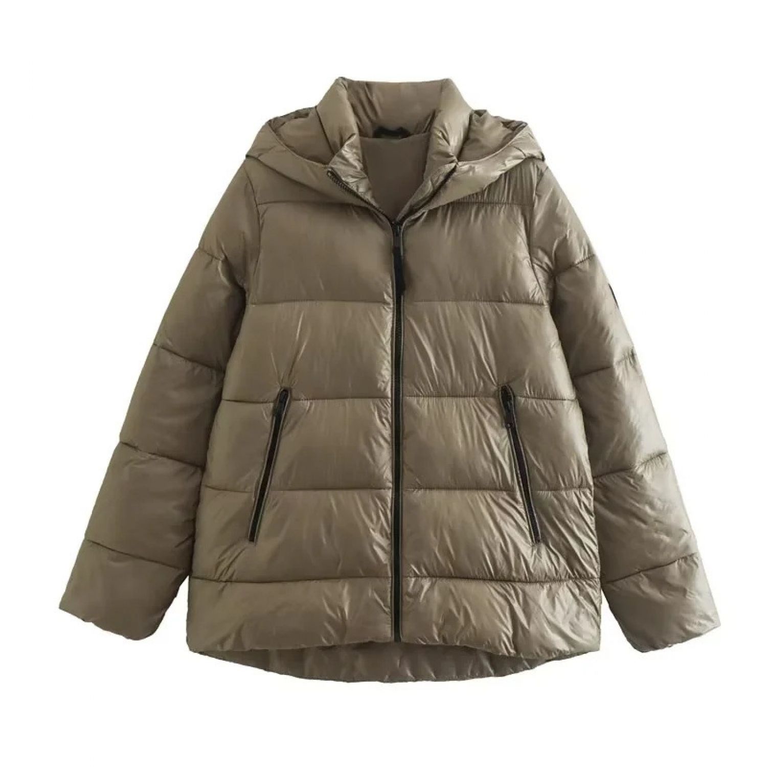 Features: no fur collar, hooded, A-shaped