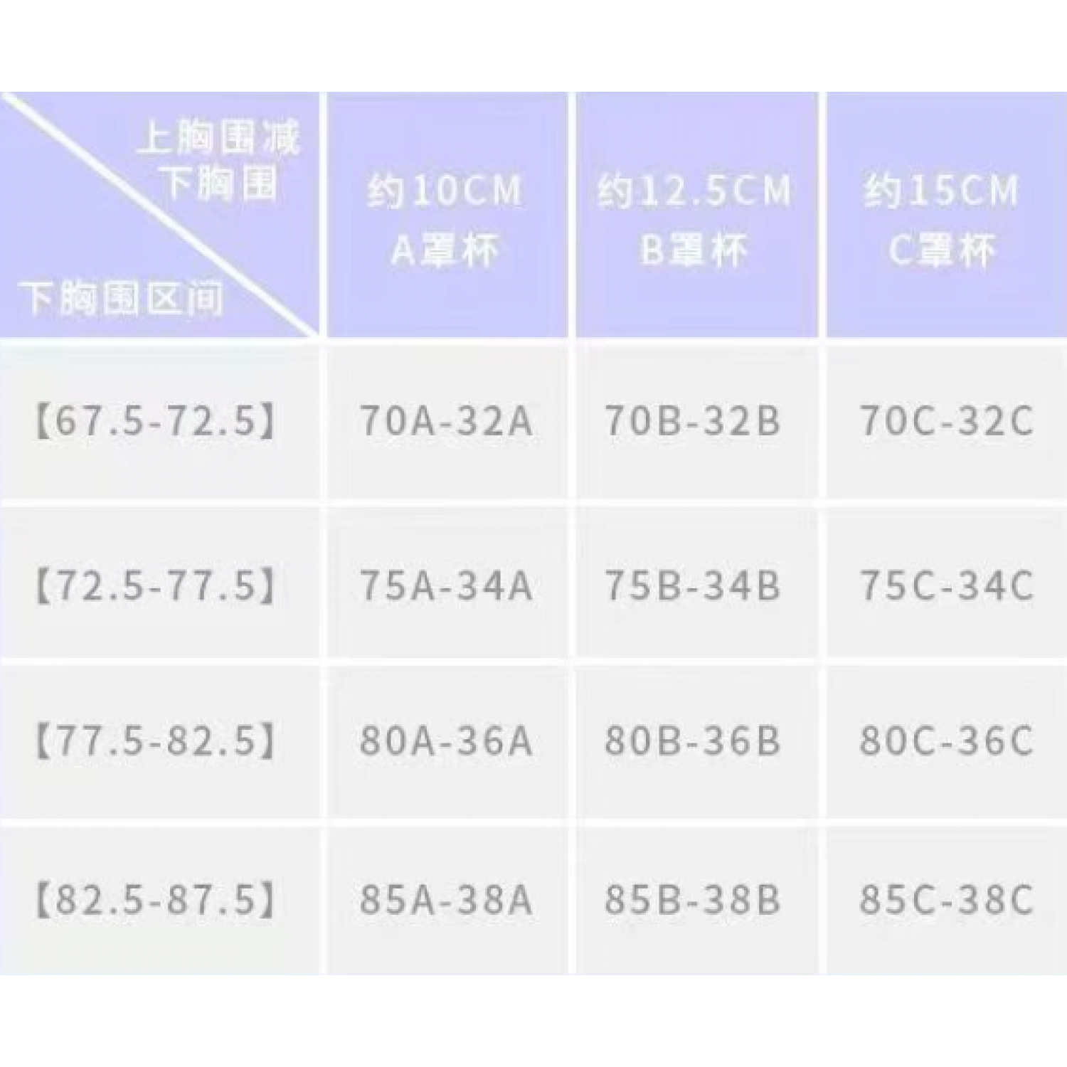 Size: S size (for 32/70ABC),M size (for 34/75ABC),L size (for 36/80ABC),XL size (for 38/85ABC)