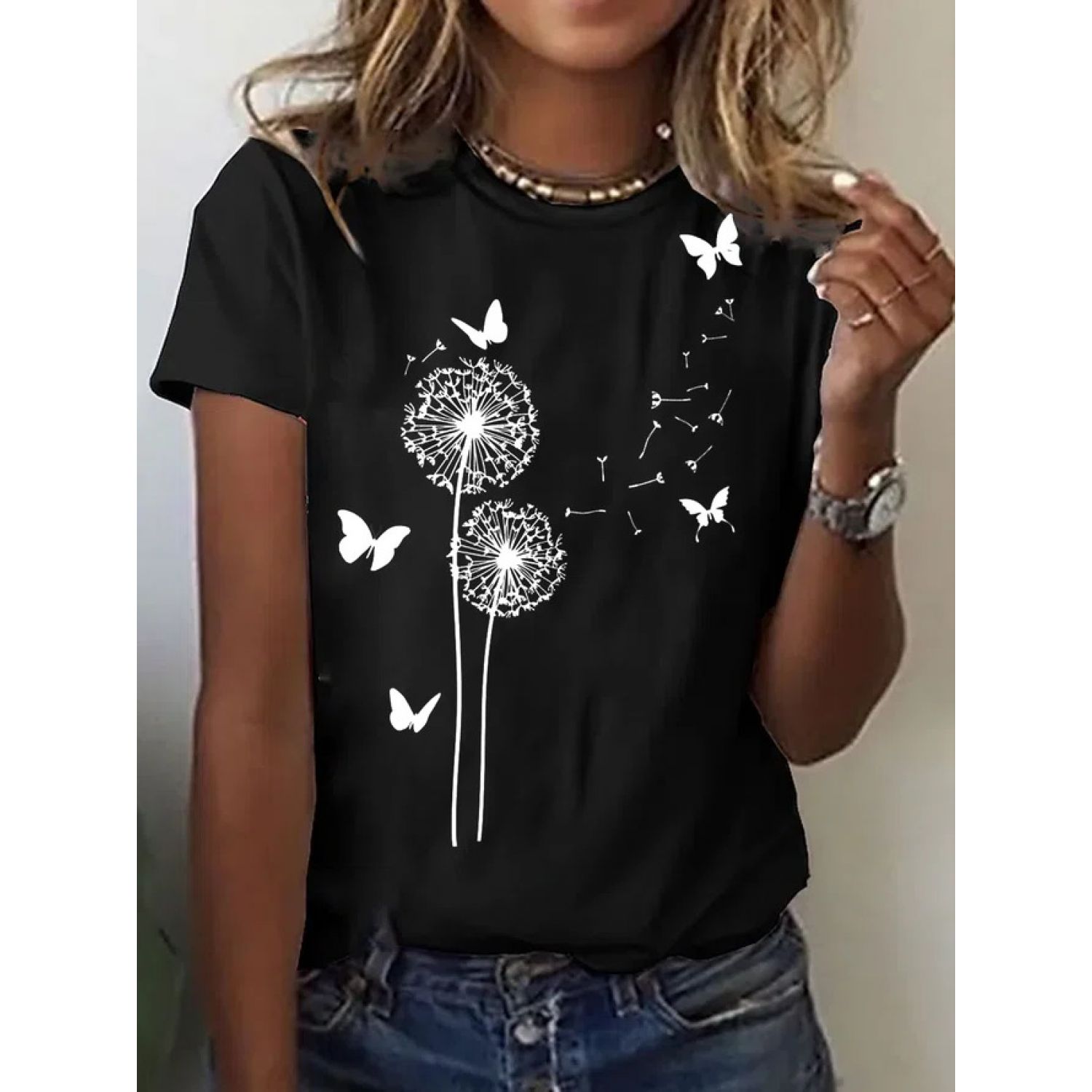 Women's Fashion Casual Round Neck Loose T-shirt 02 Style S
