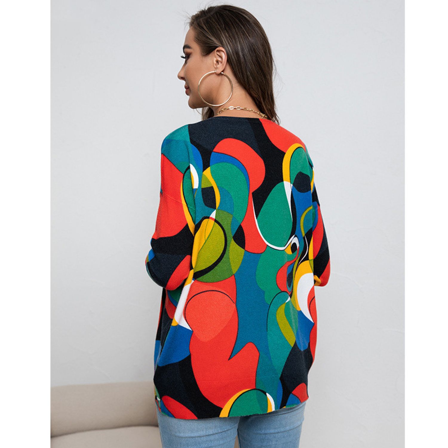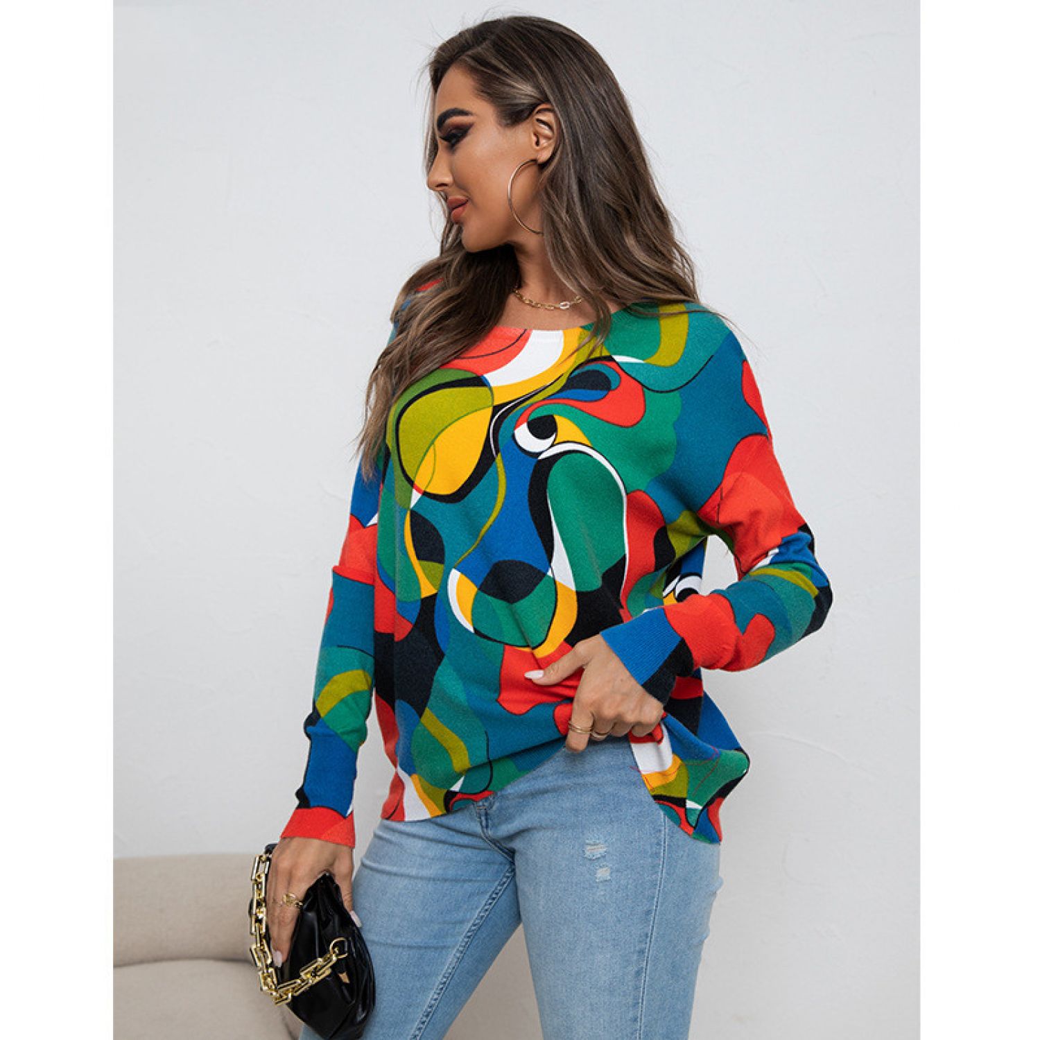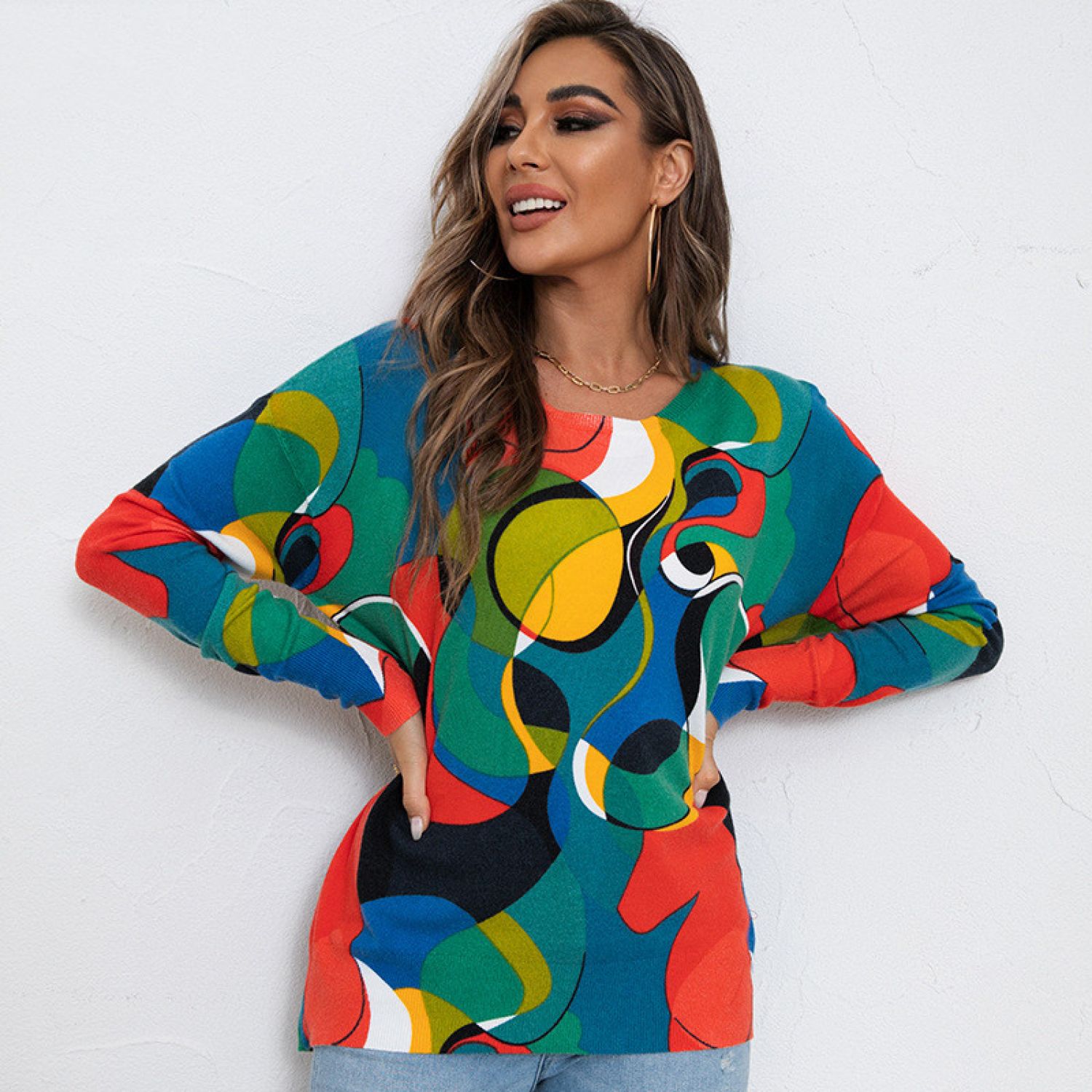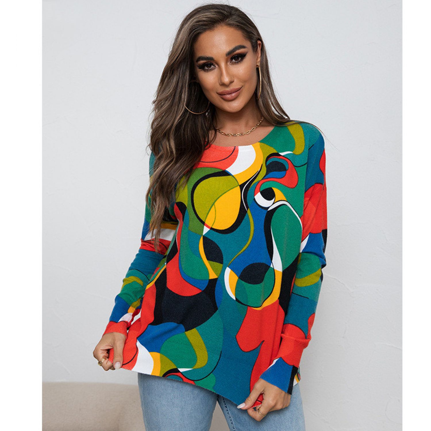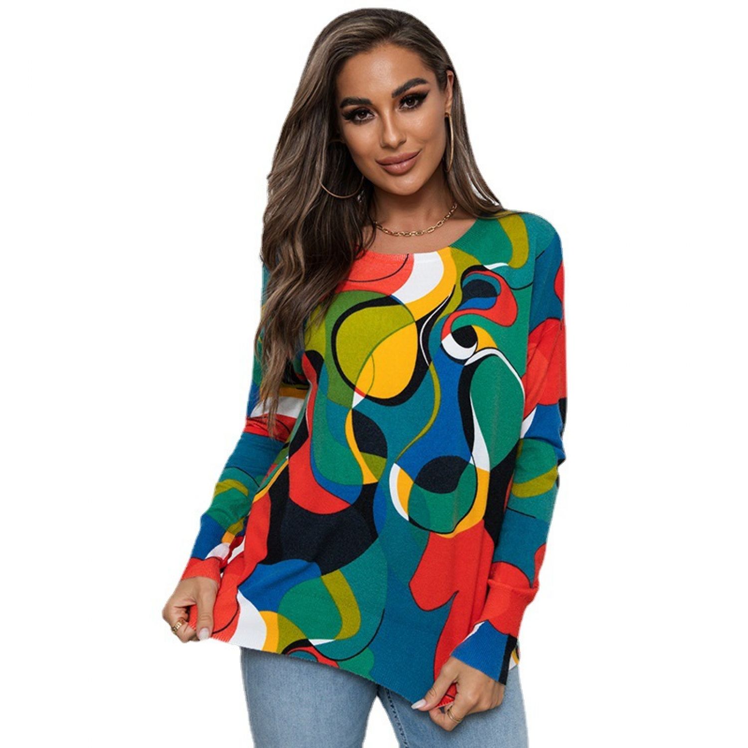 Product information: Pattern: Abstract Color: Picture color Size: S,M,L,XL Popular elements: contrast color Fabric name: Core-spun yarn Style: European and American style