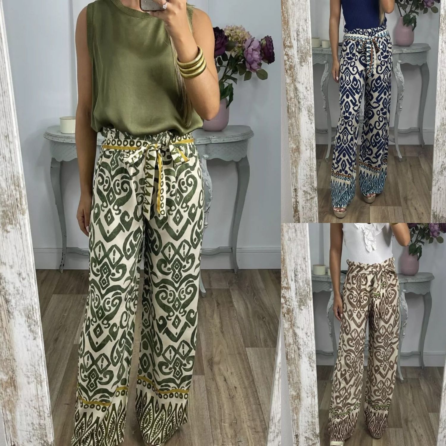 Color: navy blue, green, apricot