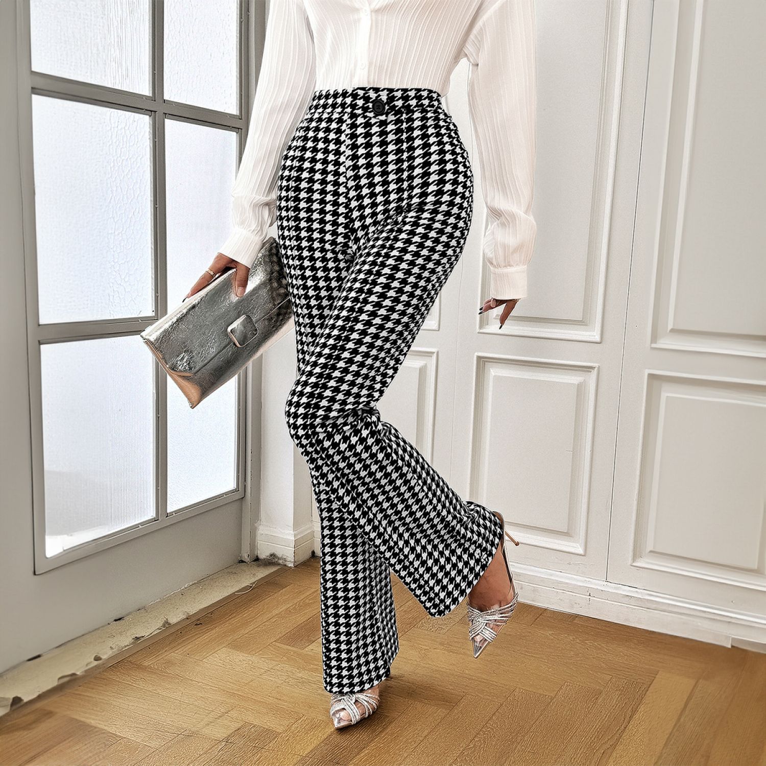 Fabric name: knitted contrast color houndstooth printing