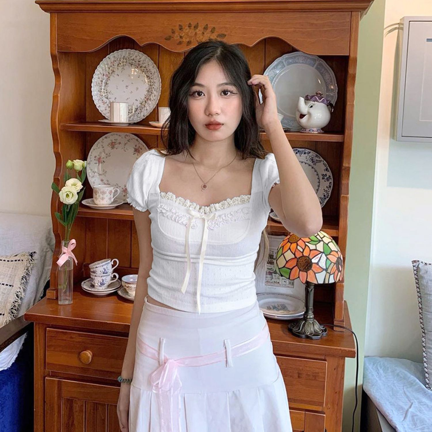 Popular elements: pleated lace slit